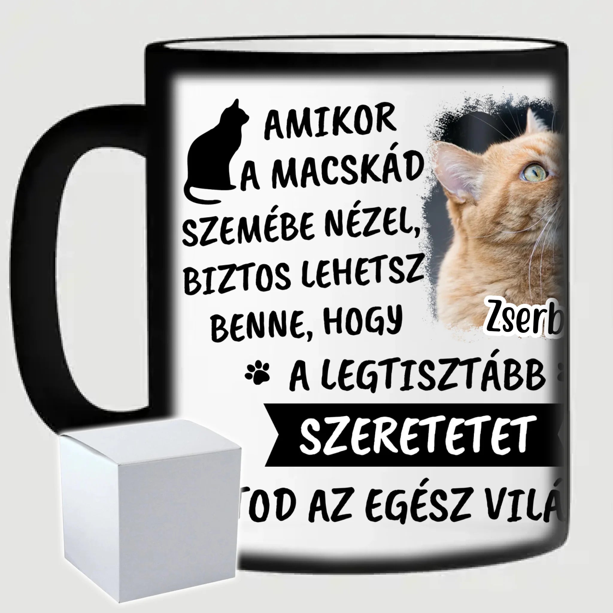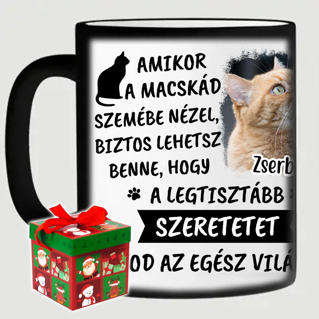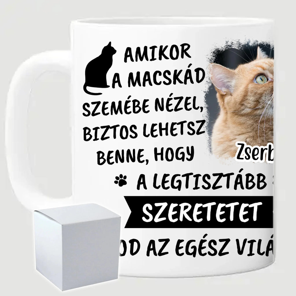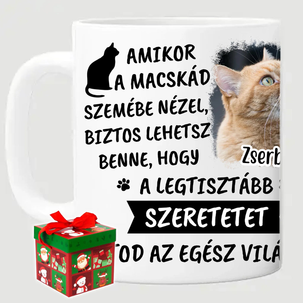 Egyedi fényképes bögre macska gazdiknak személyre szabható felirattal