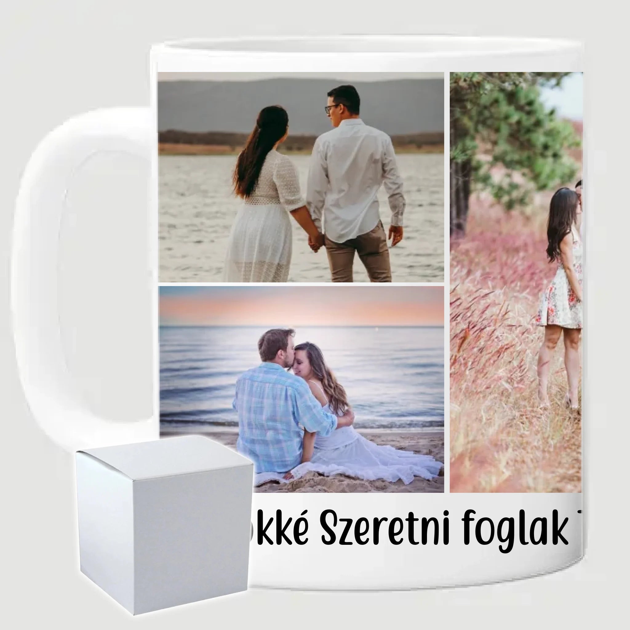 Egyedi fényképes bögre a saját fotóddal. Az egyedi fényképes bögre remek ajándék Valentin napra és évfordulóra. Az egyedi bögre nyomtatása nagyon magas hőfokon történik, ezáltal az anyag szerkezetébe sütjük bele, így a nyomat rendkívül tartós lesz és nem kopik, nem fakul ki. A fényképes bögréhez bármilyen fotót választhatsz, illetve feliratot is adhatsz hozzá.