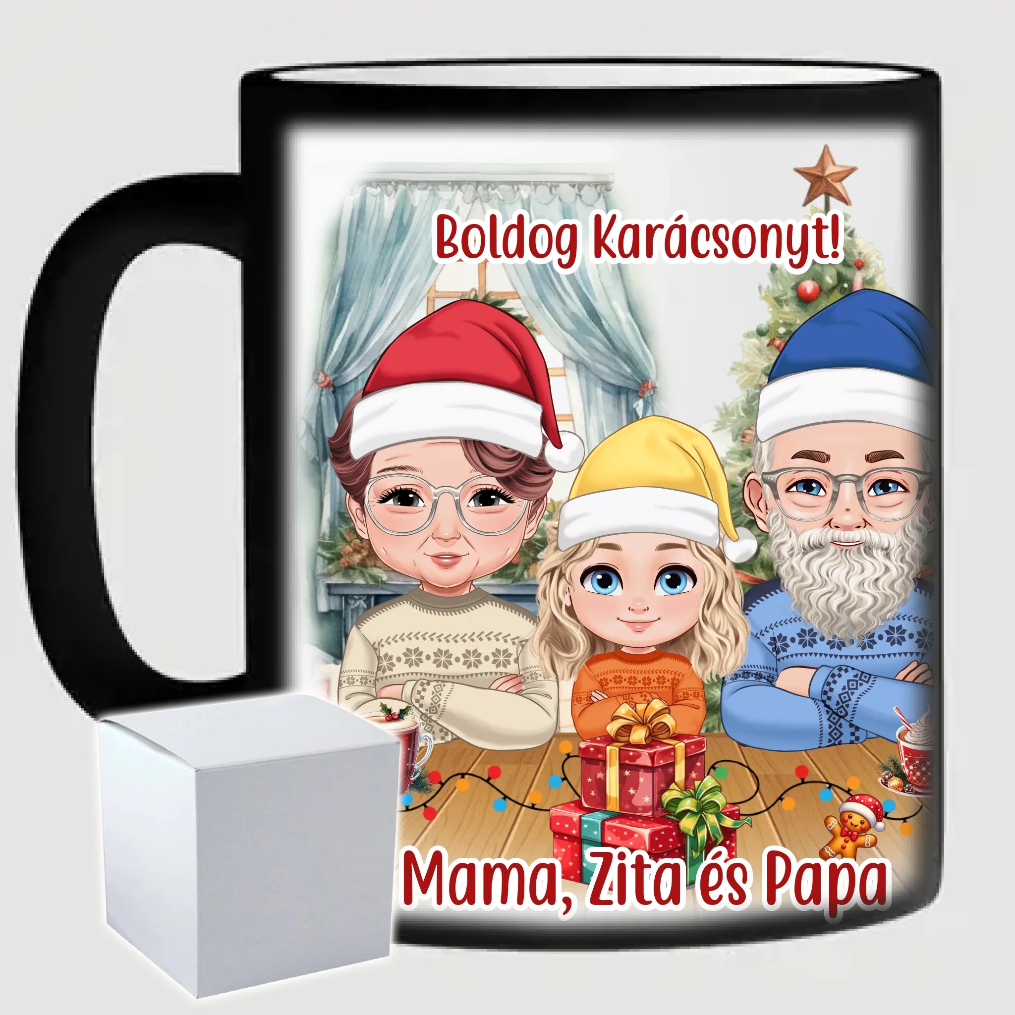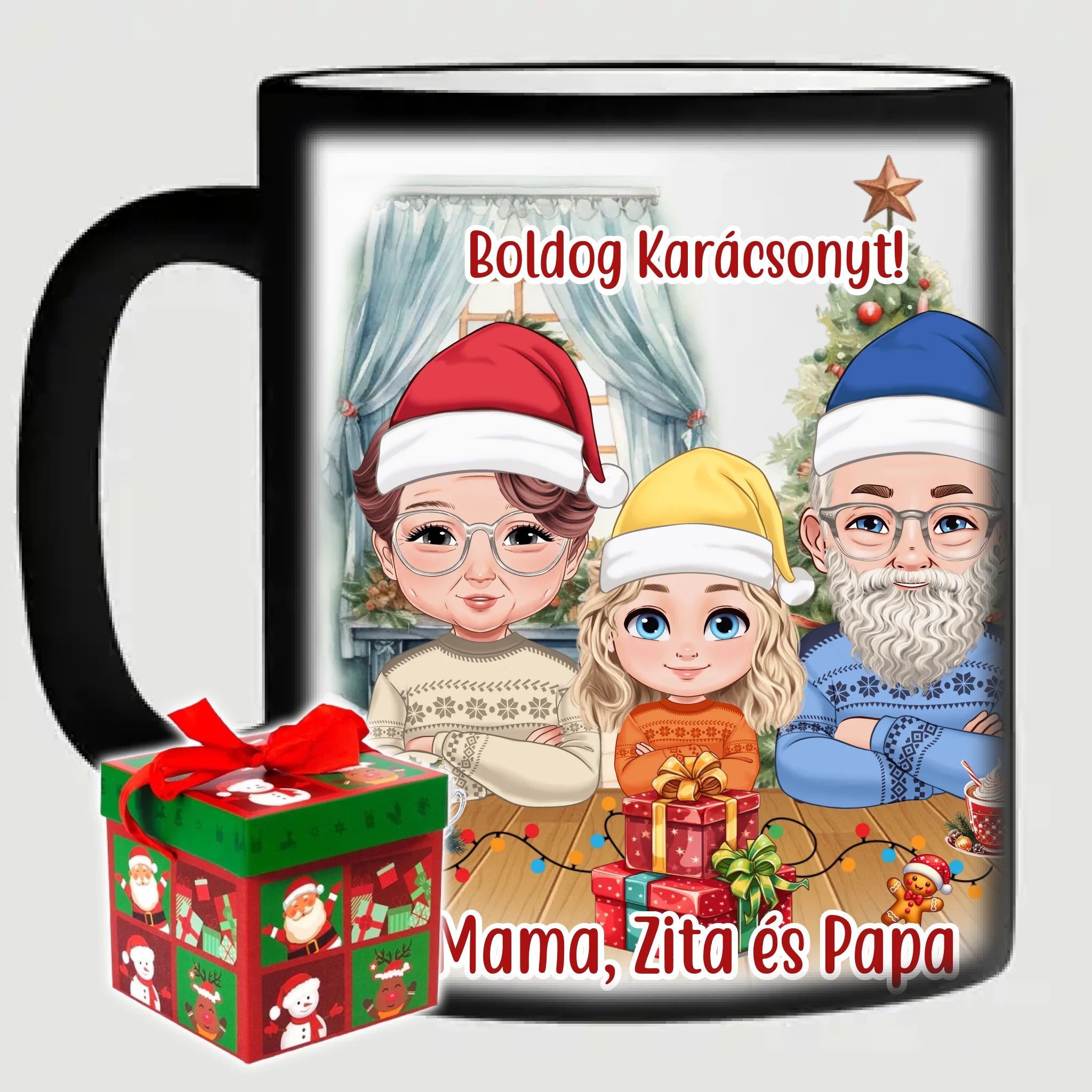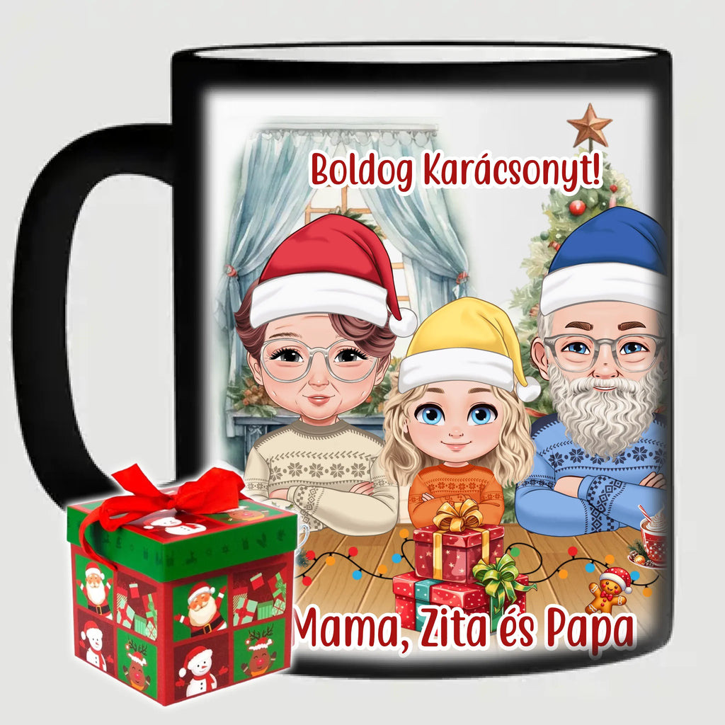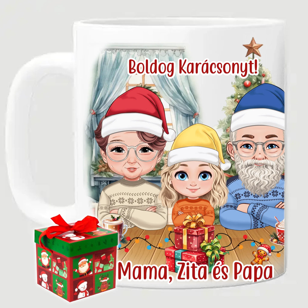 🎅 Egyedi karakteres karácsonyi bögre nagyszülők és gyerekek mintával