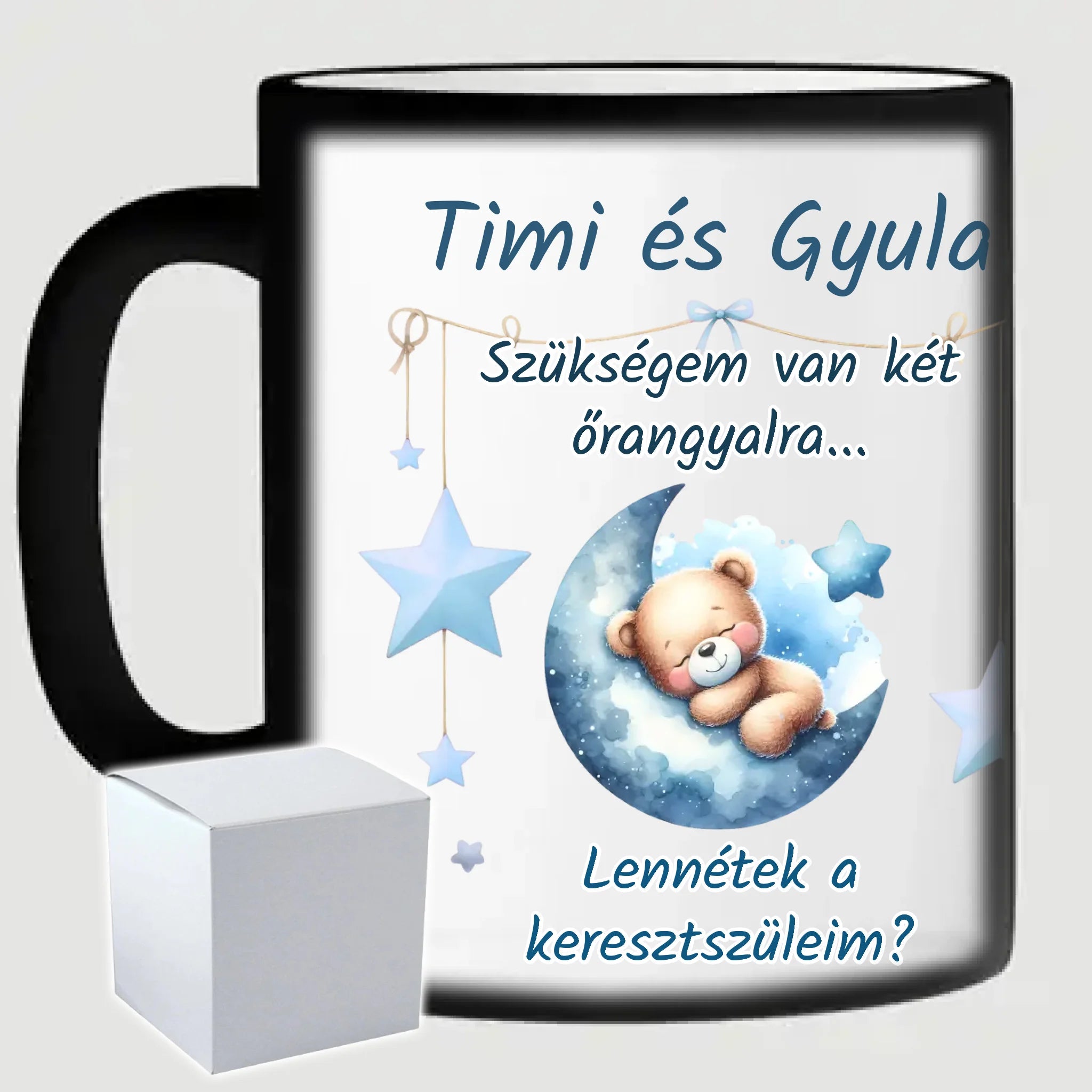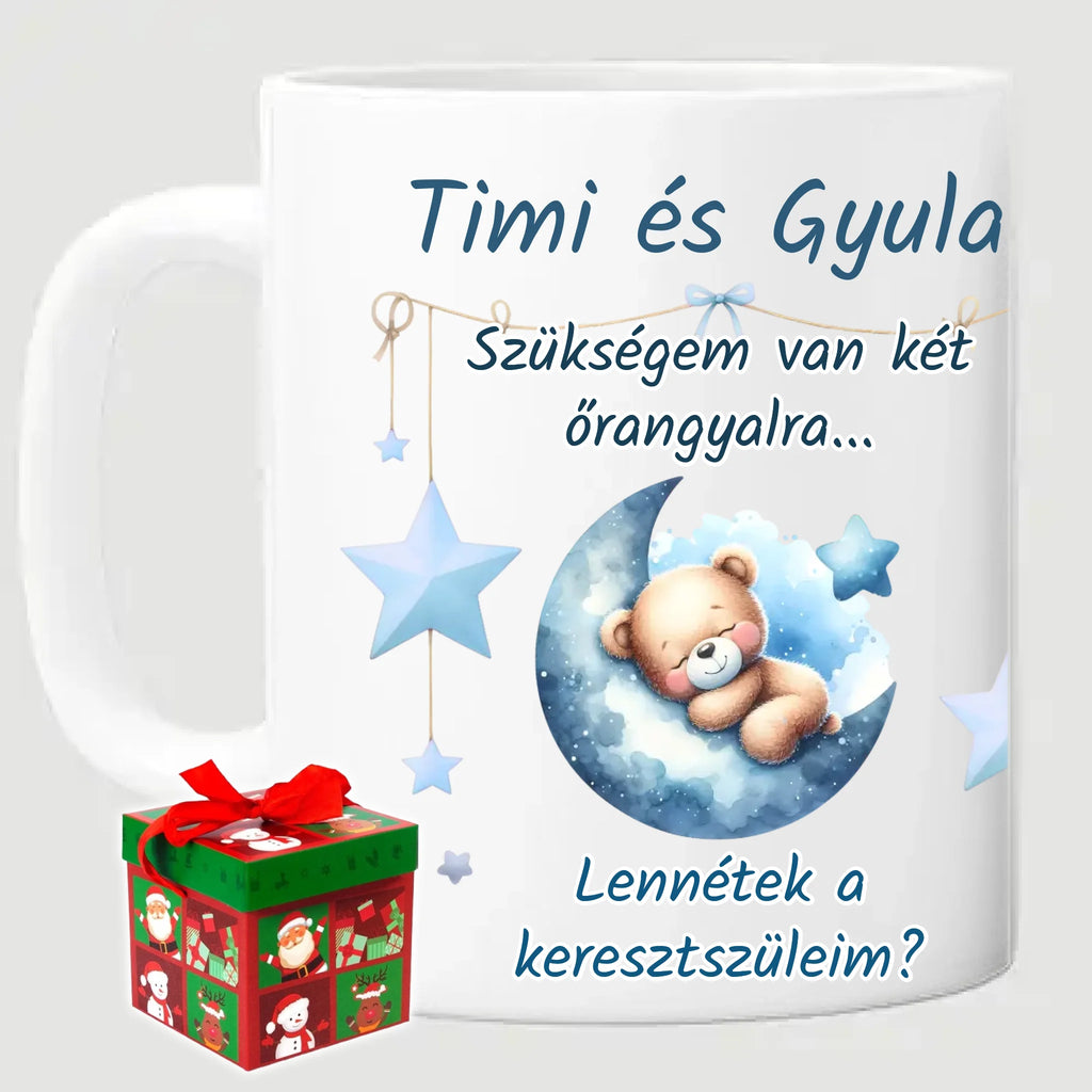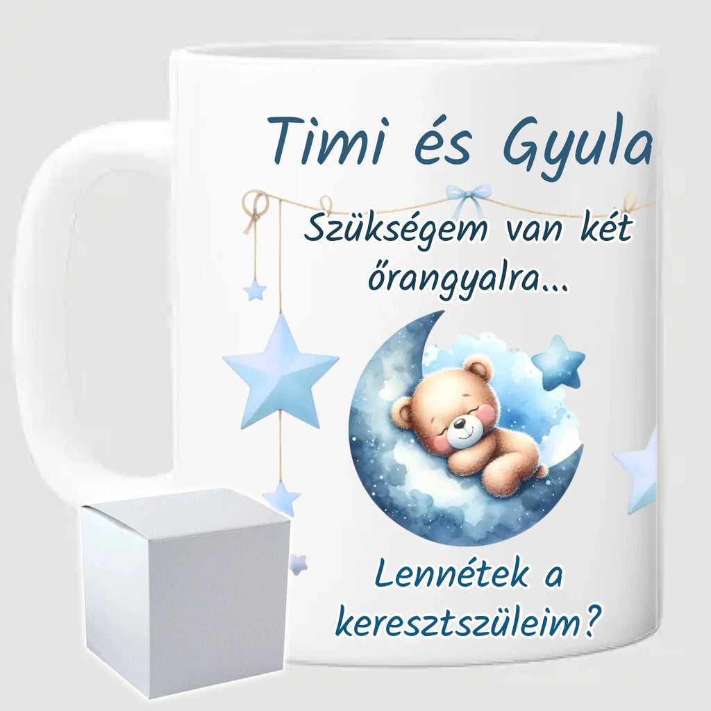 Egyedi keresztszülő felkérő bögre - saját felirattal és képpel - fiús mintával