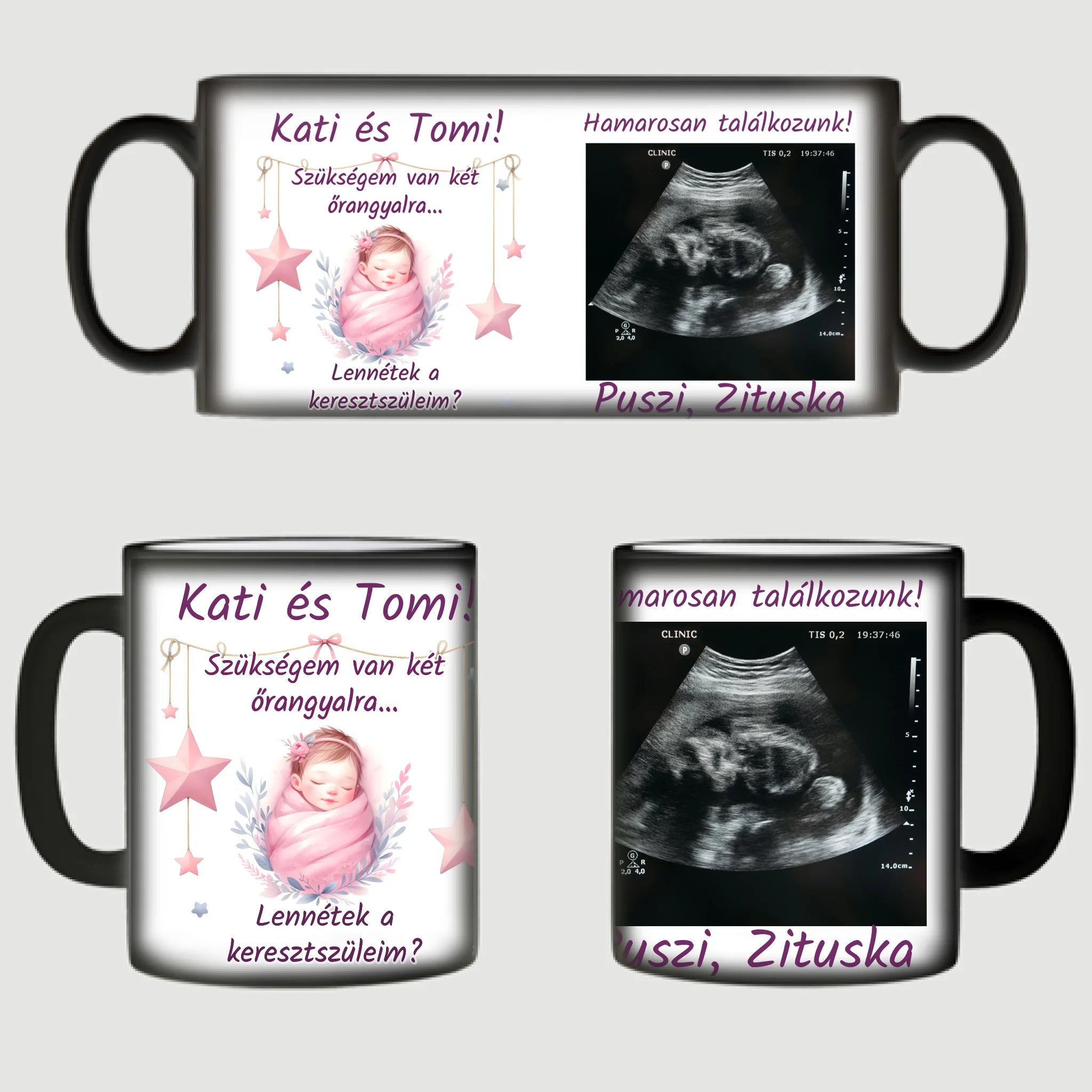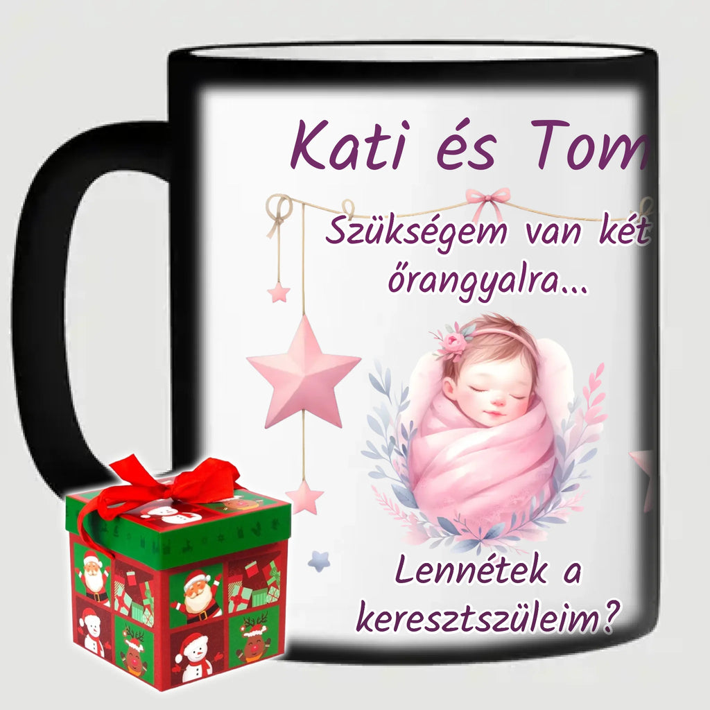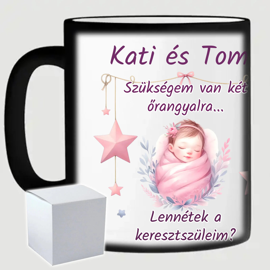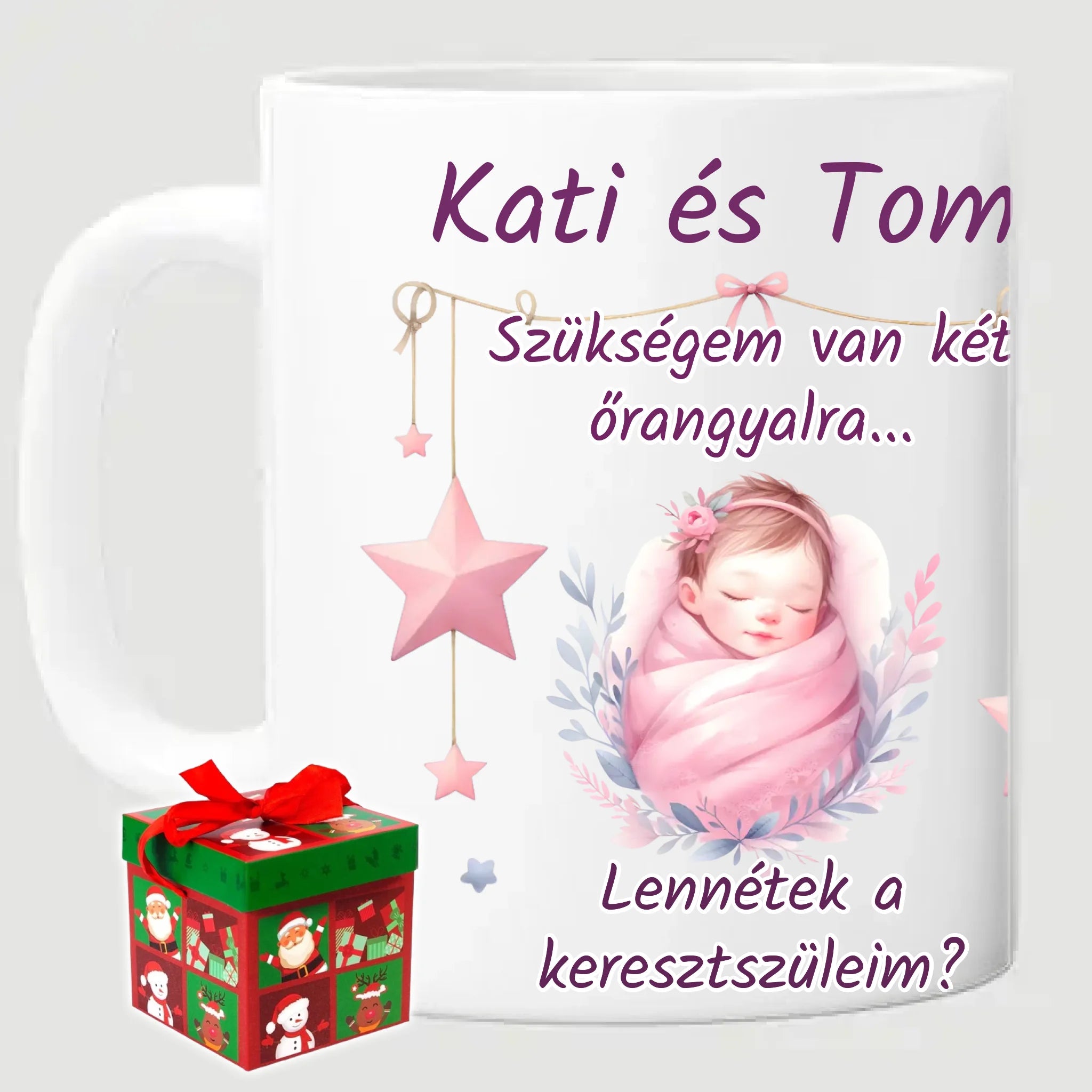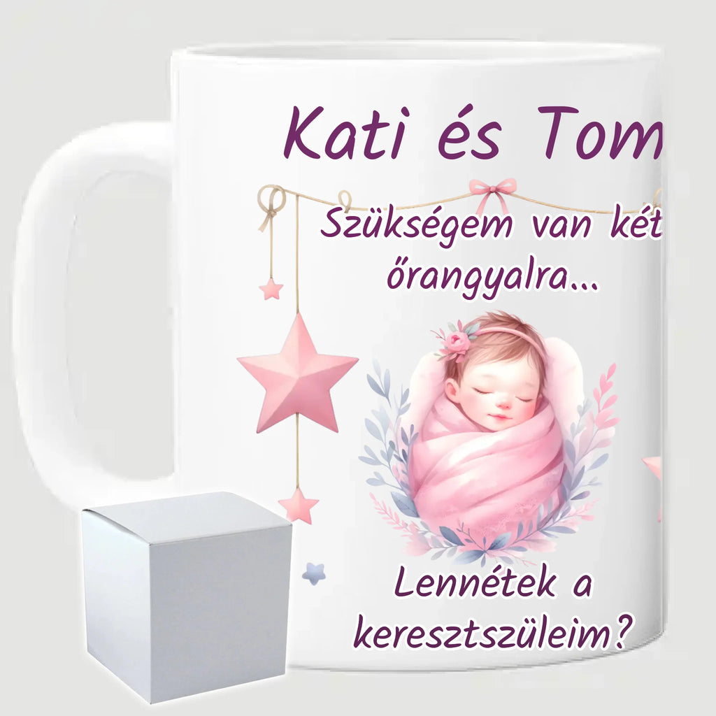 Egyedi keresztszülő felkérő bögre - saját felirattal és képpel - lányos mintával