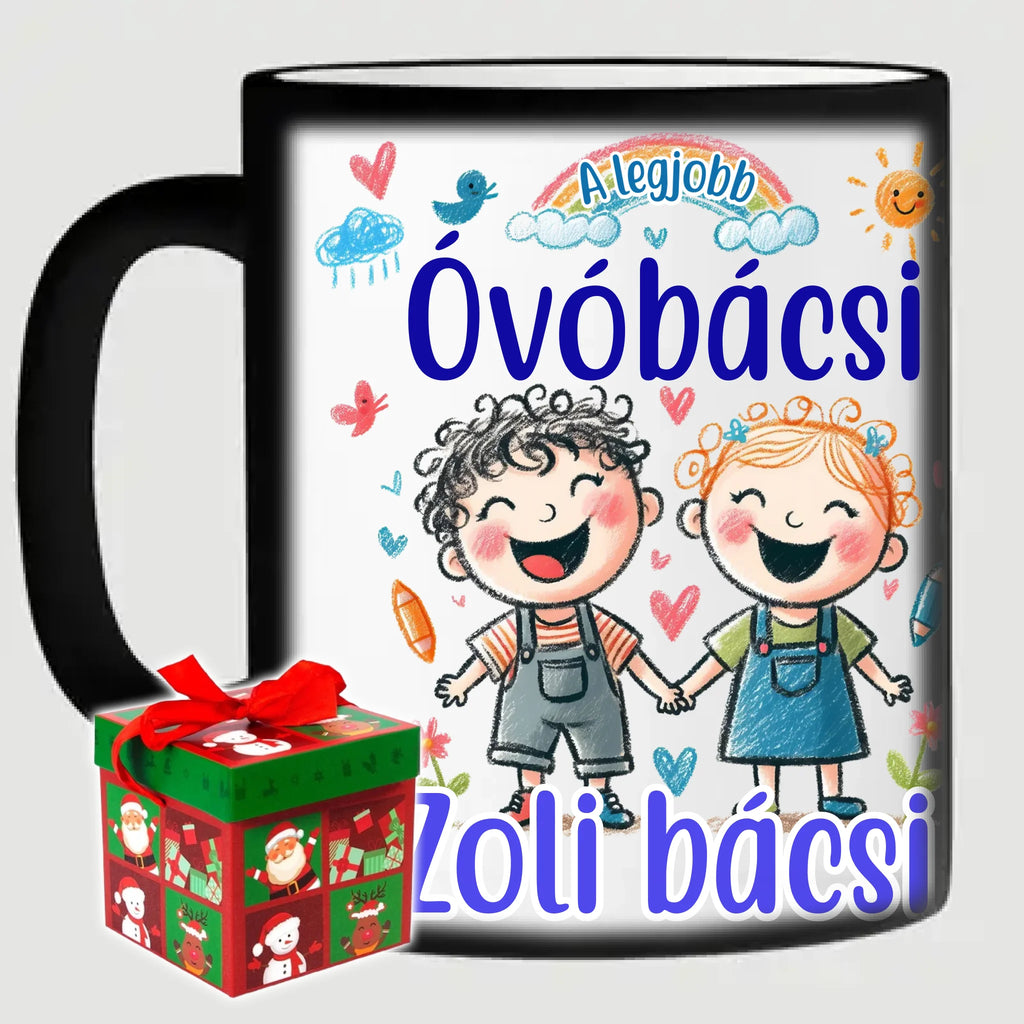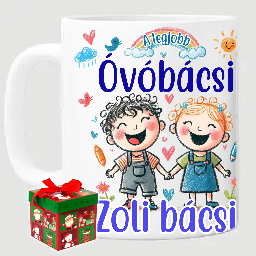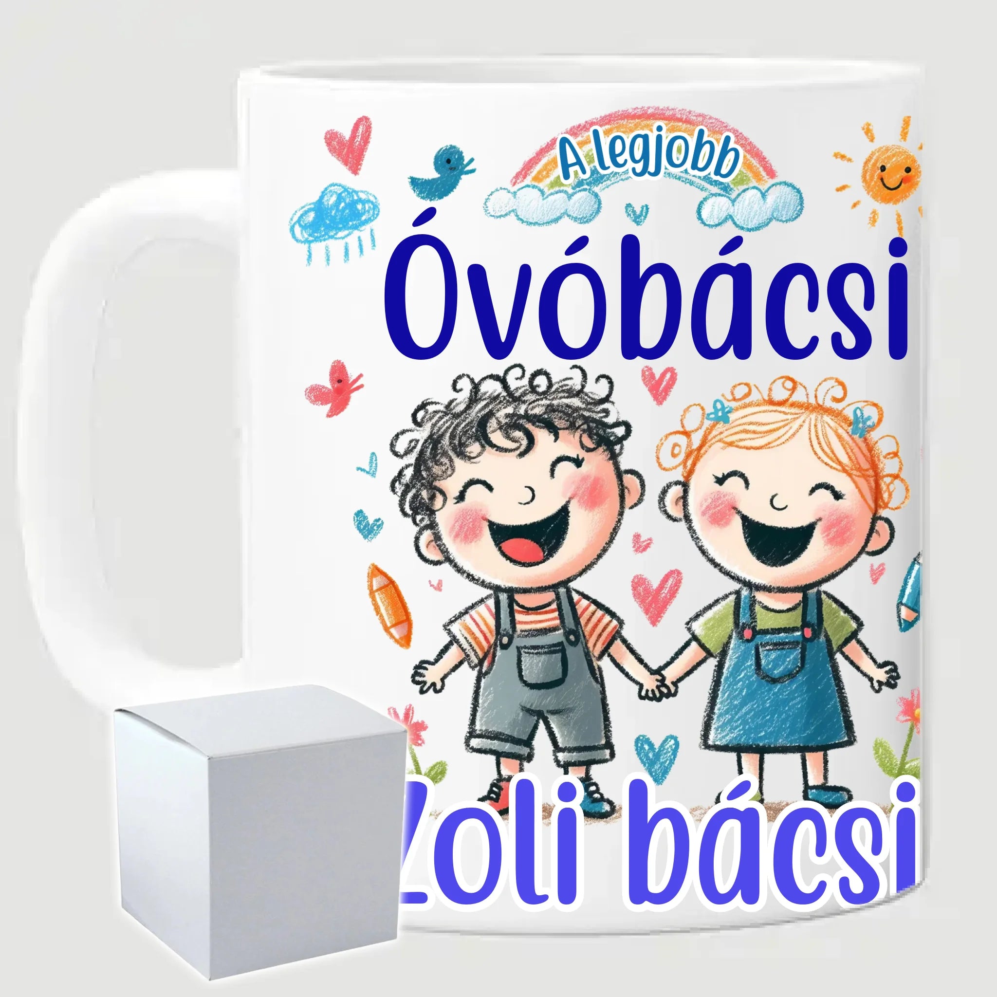 Egyedi neves és feliratos bögre pedagógusnapra óvónéninek, óvóbácsinak vagy dadusnak