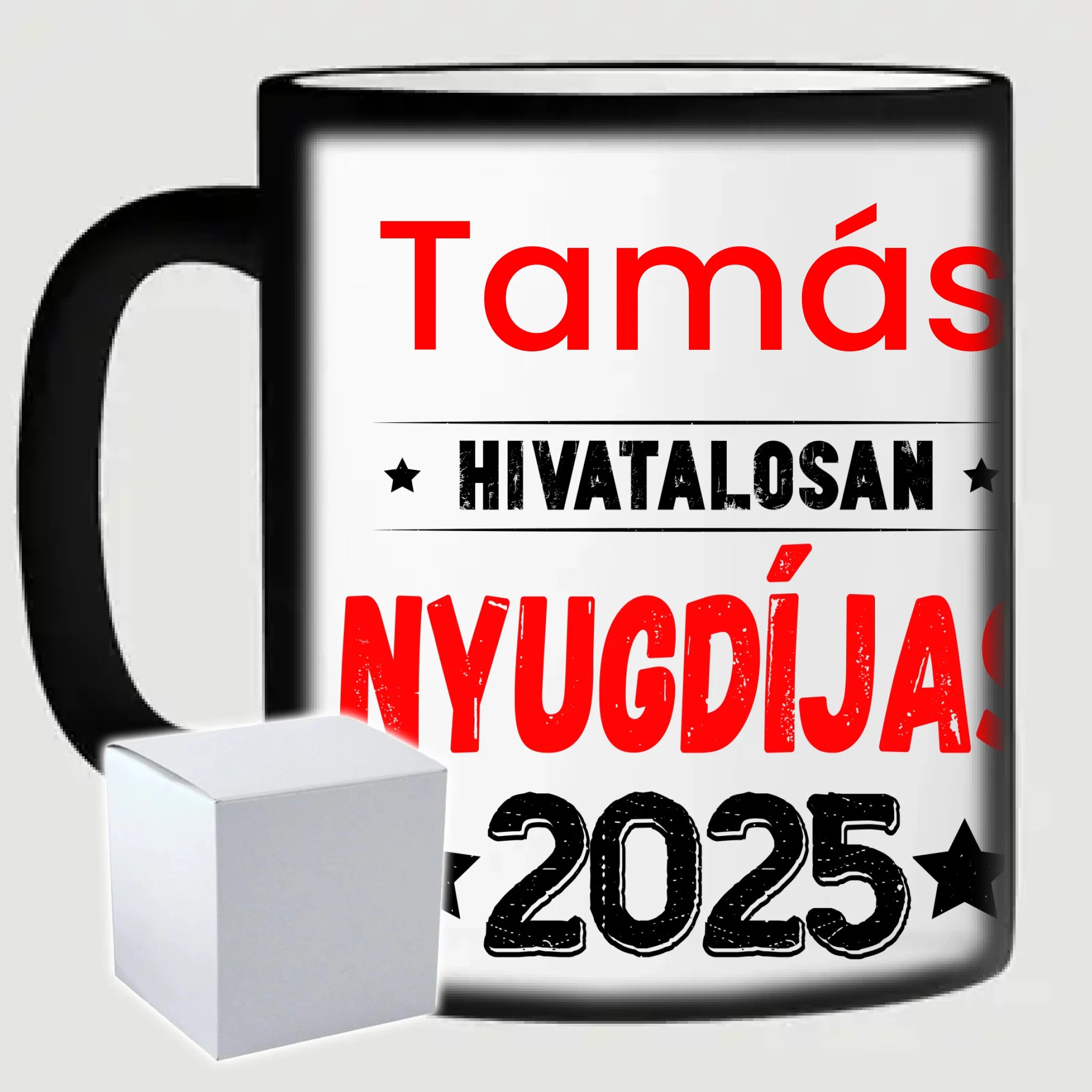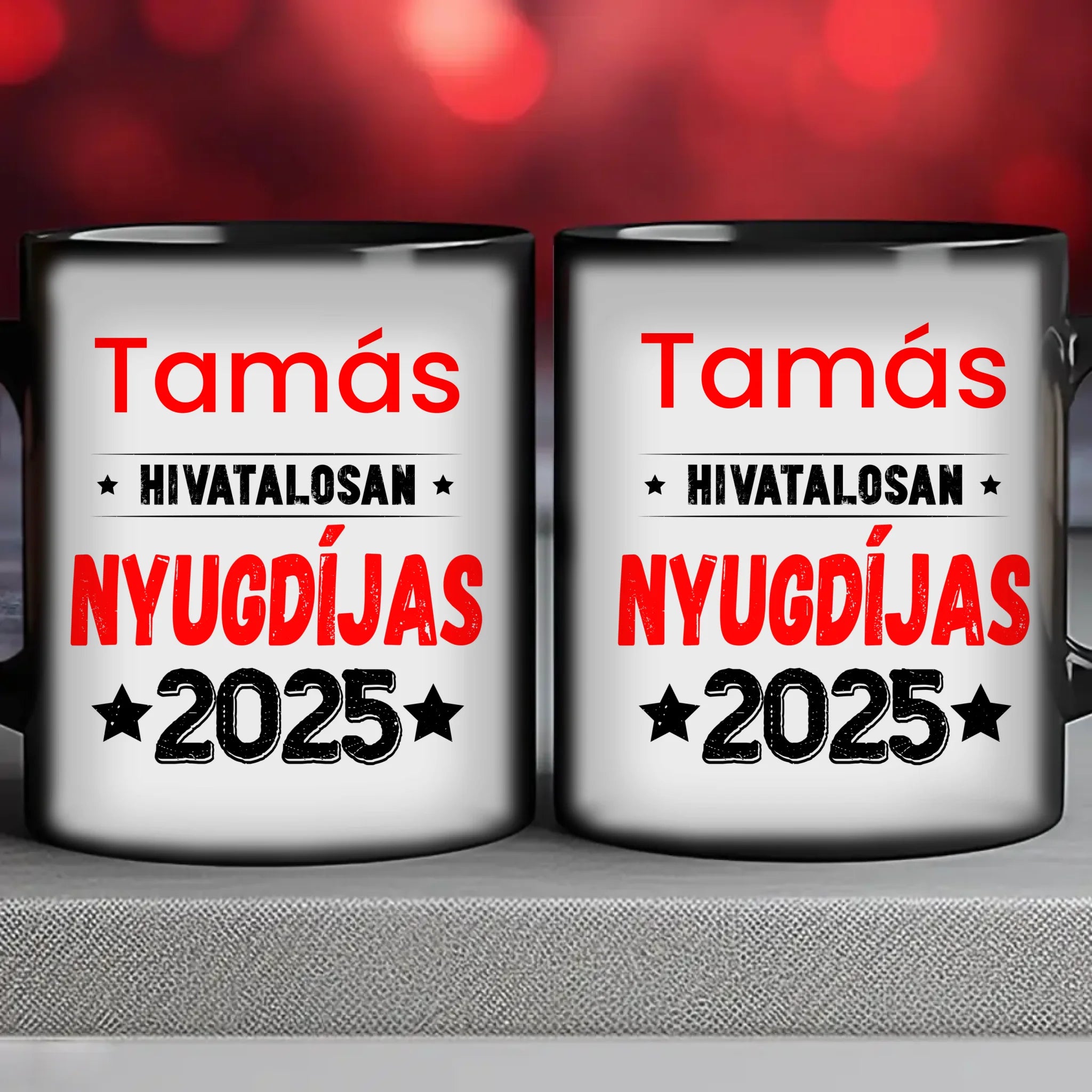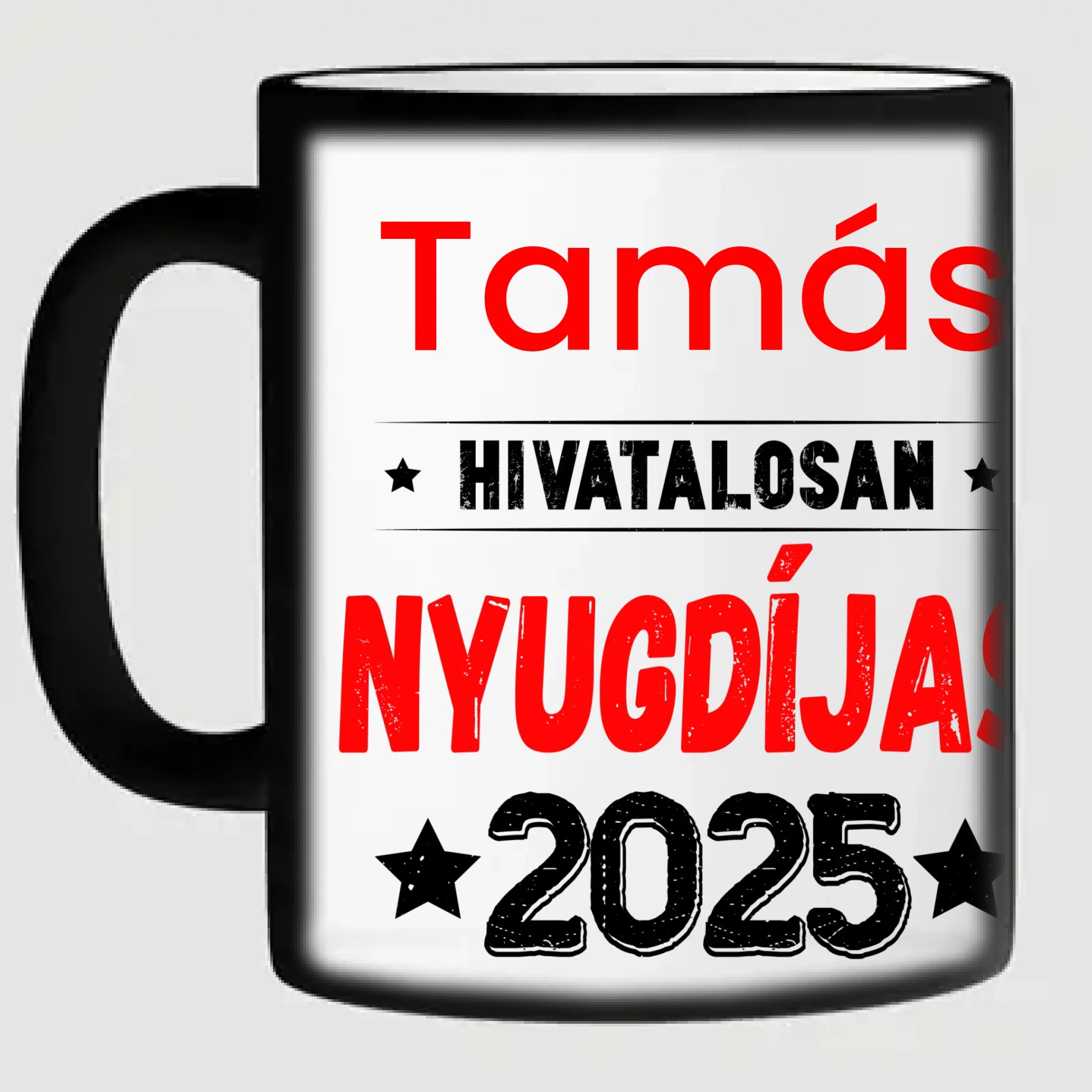 Hivatalosan nyugdíjas bögre névvel - nyugdíjas búcsúztató ajándék