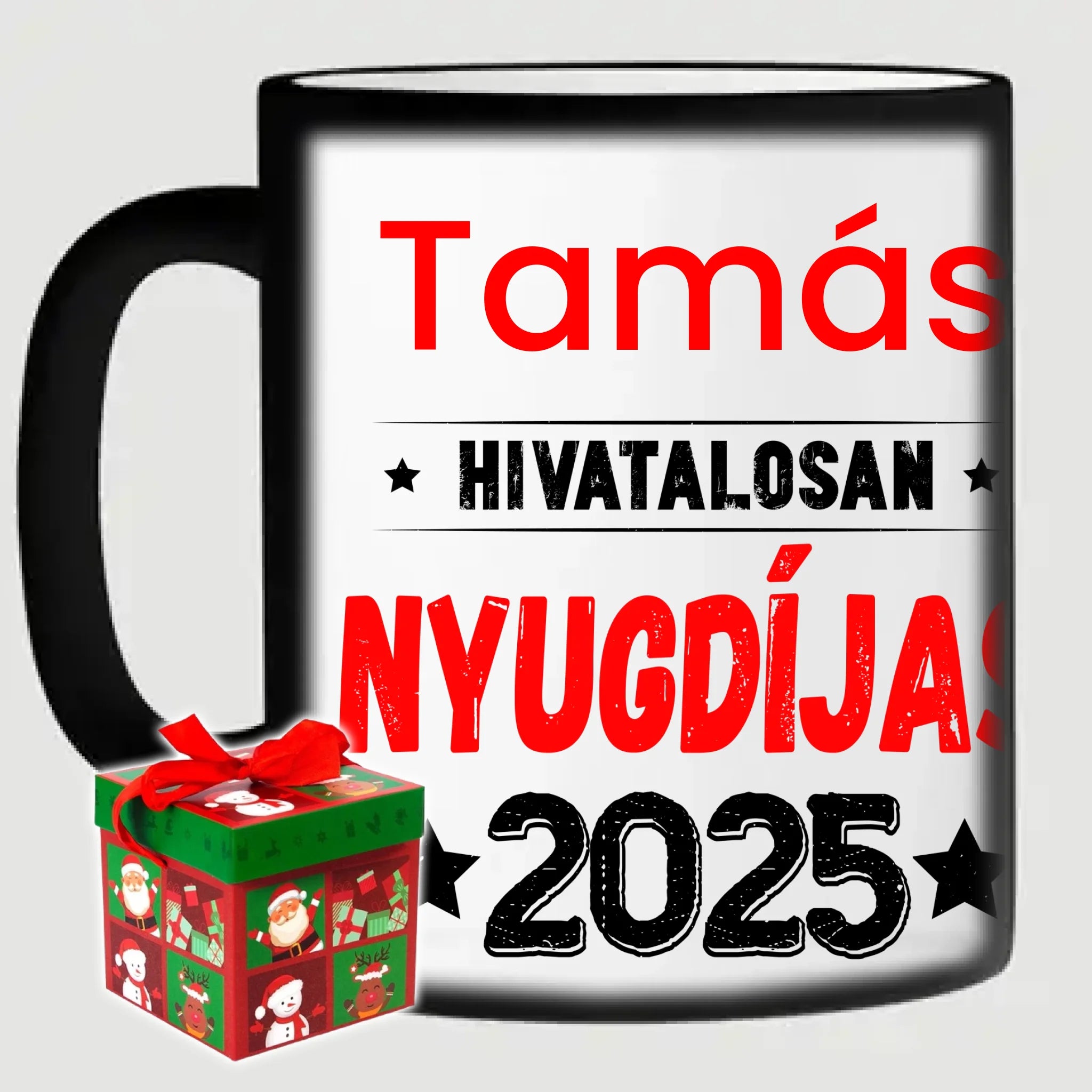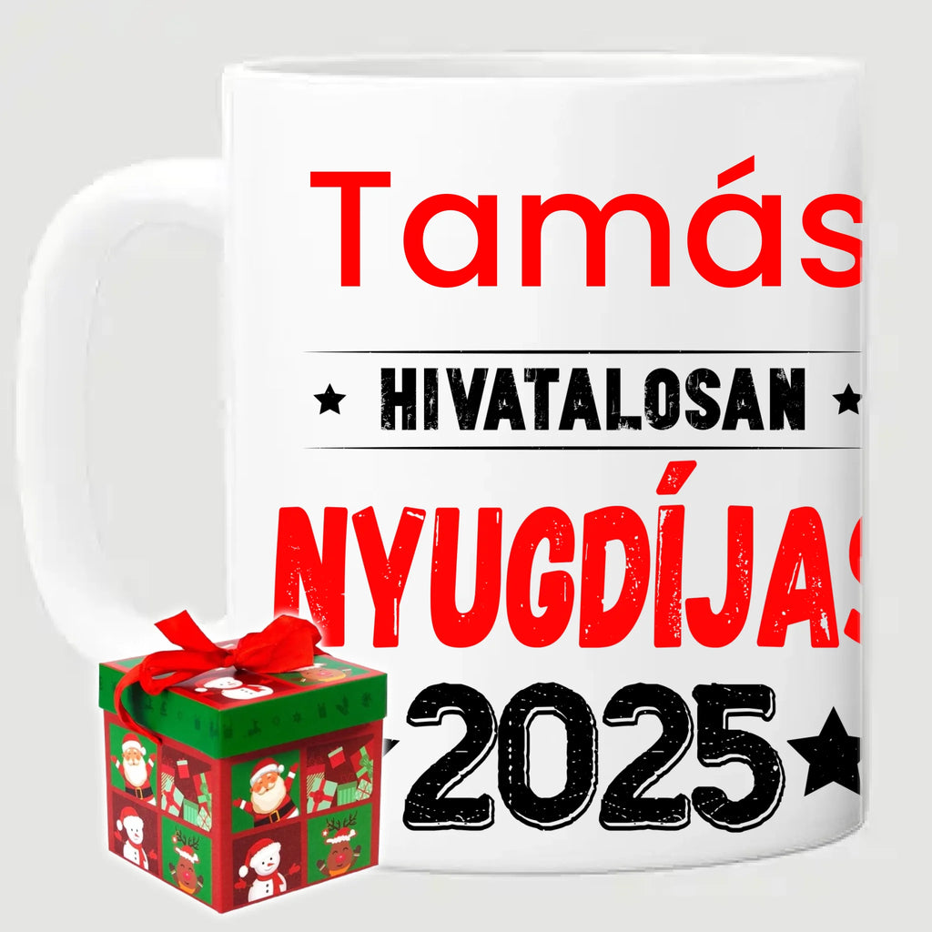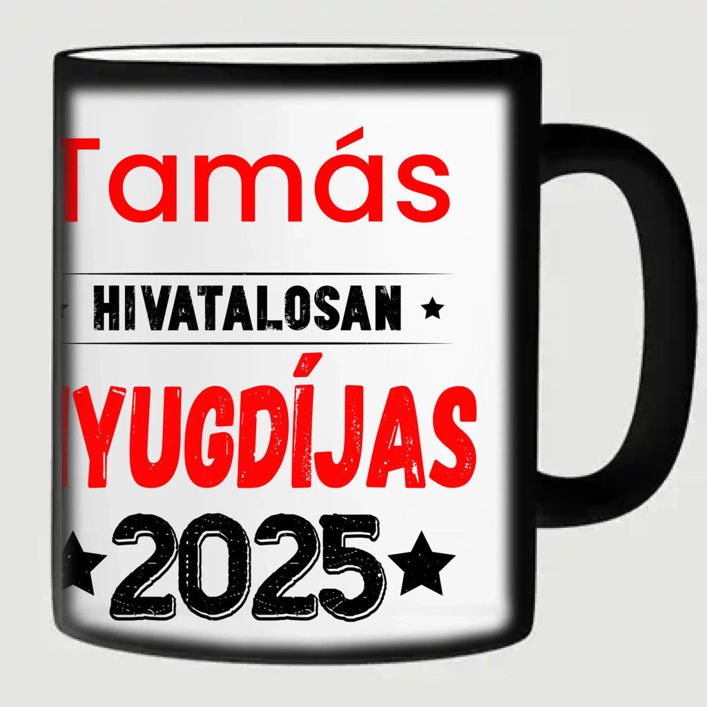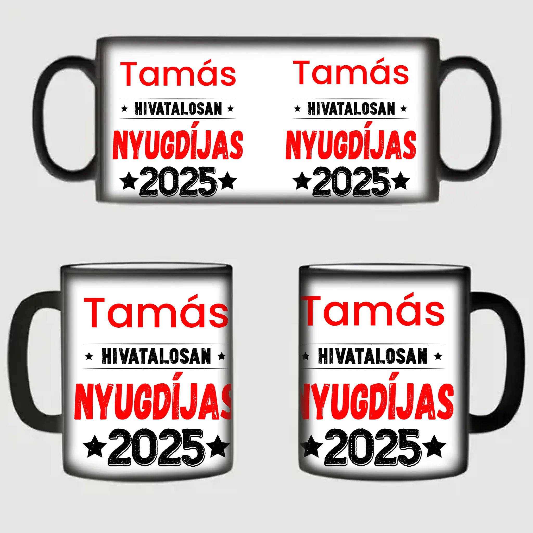Hivatalosan nyugdíjas bögre névvel - nyugdíjas búcsúztató ajándék