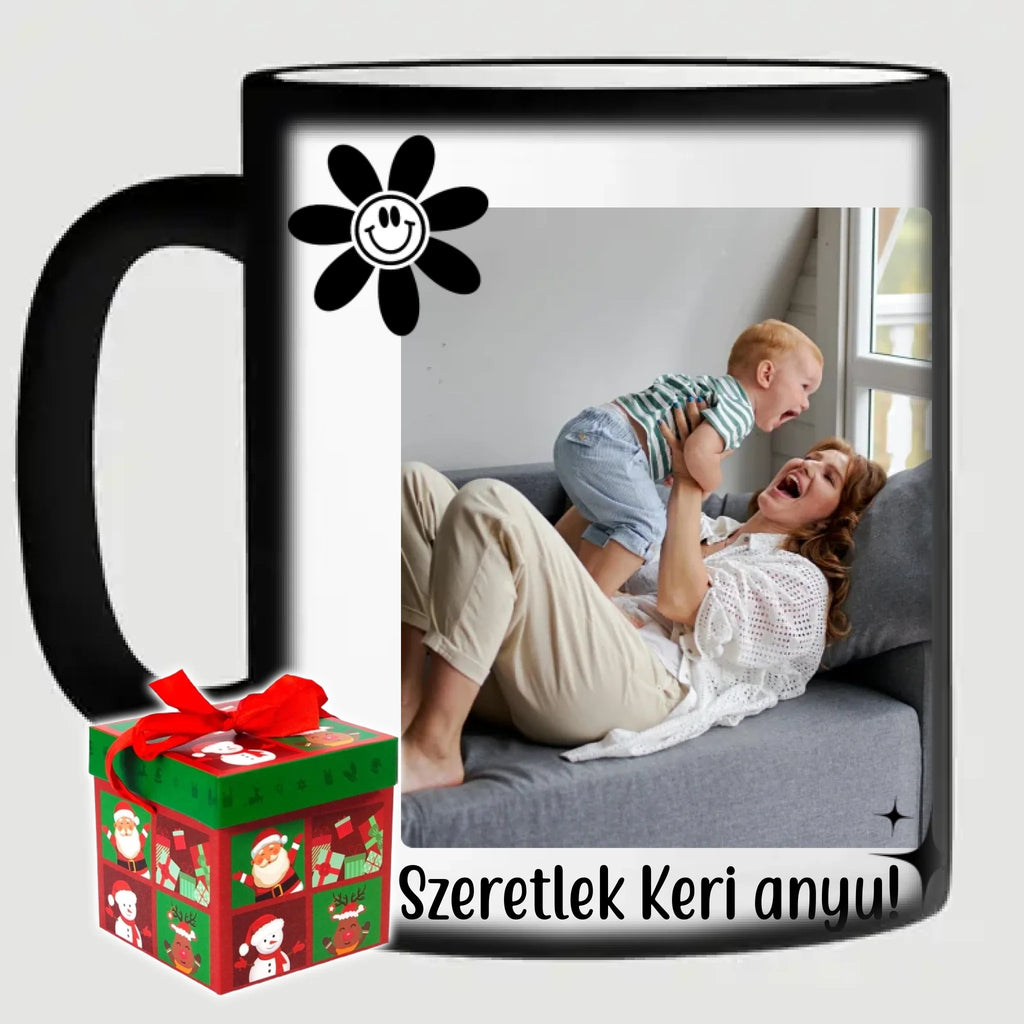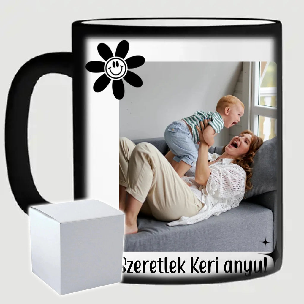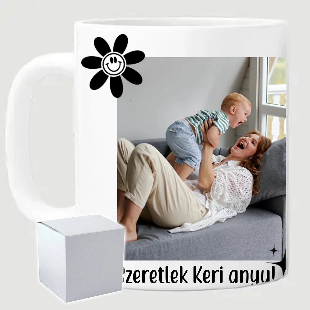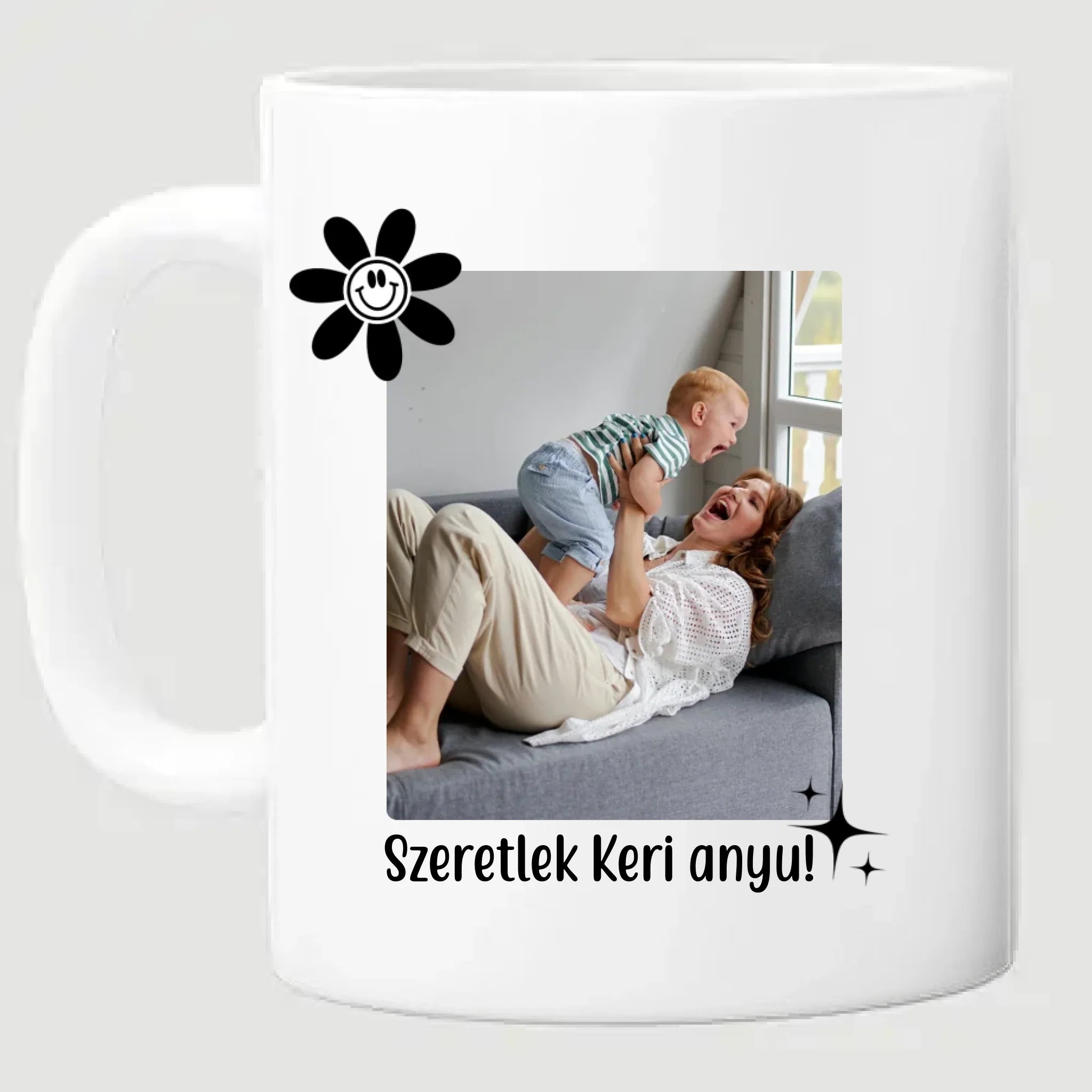 Egyedi anyák napi fényképes bögre a saját fotóddal. Az egyedi fényképes bögre remek ajándék Anyák napjára és születésnapra is. Az egyedi bögre nyomtatása nagyon magas hőfokon történik, ezáltal az anyag szerkezetébe sütjük bele, így a nyomat rendkívül tartós lesz és nem kopik, nem fakul ki. A fényképes bögréhez bármilyen fotót választhatsz, illetve feliratot is adhatsz hozzá.