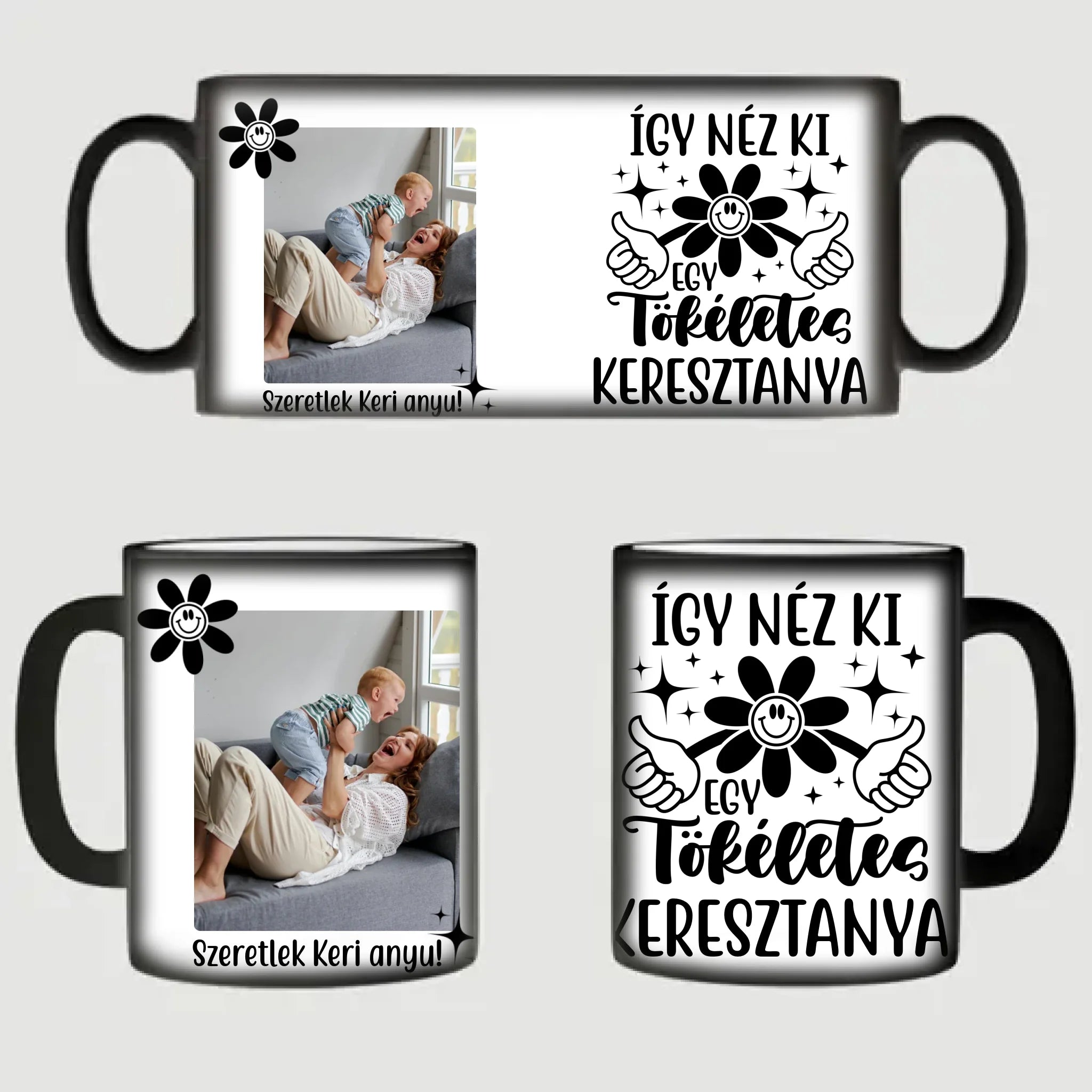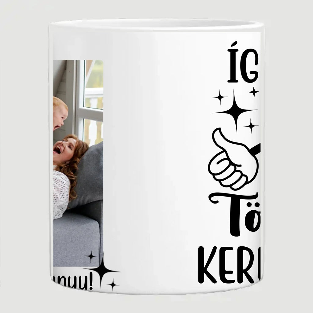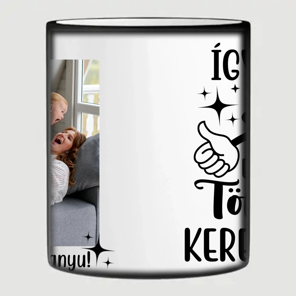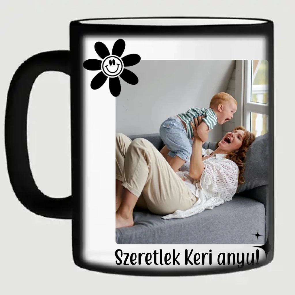 Egyedi anyák napi fényképes bögre a saját fotóddal. Az egyedi fényképes bögre remek ajándék Anyák napjára és születésnapra is. Az egyedi bögre nyomtatása nagyon magas hőfokon történik, ezáltal az anyag szerkezetébe sütjük bele, így a nyomat rendkívül tartós lesz és nem kopik, nem fakul ki. A fényképes bögréhez bármilyen fotót választhatsz, illetve feliratot is adhatsz hozzá.