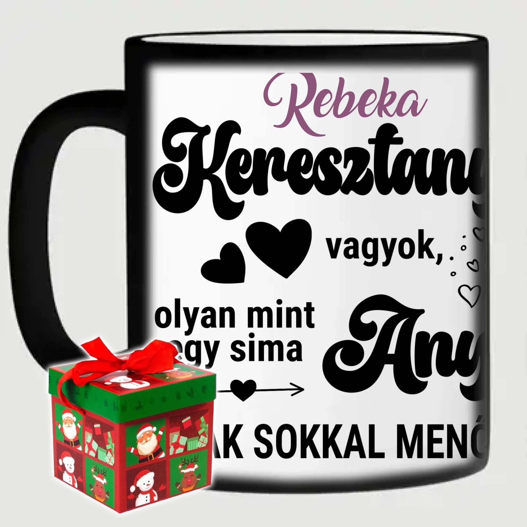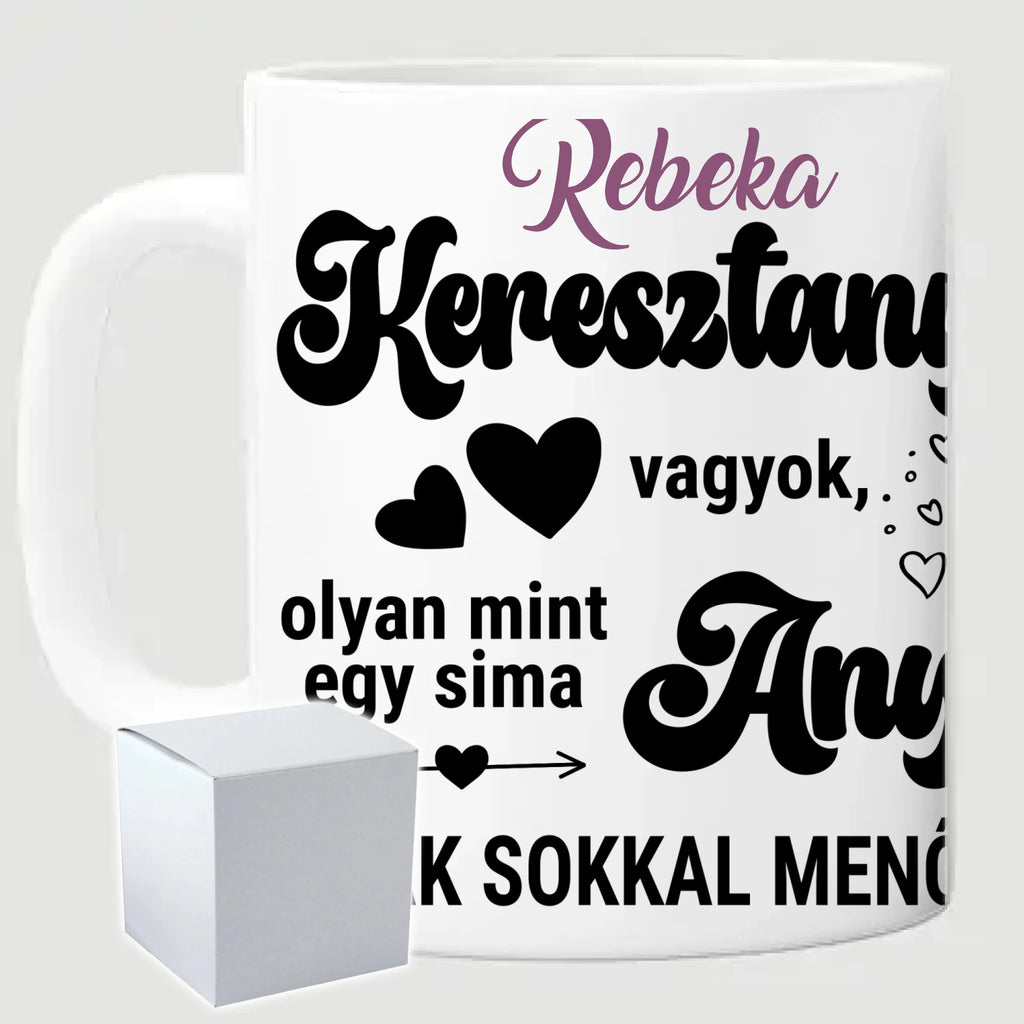 Ez a keresztanyás fényképes bögre szívből jövő és humoros ajándék egyszerre! Kérd saját fotóval és felirattal, és kész is a személyre szabott ajándék a világ legmenőbb keresztanyjának. A nyomat tartós, nem kopik, így örök emlék marad.