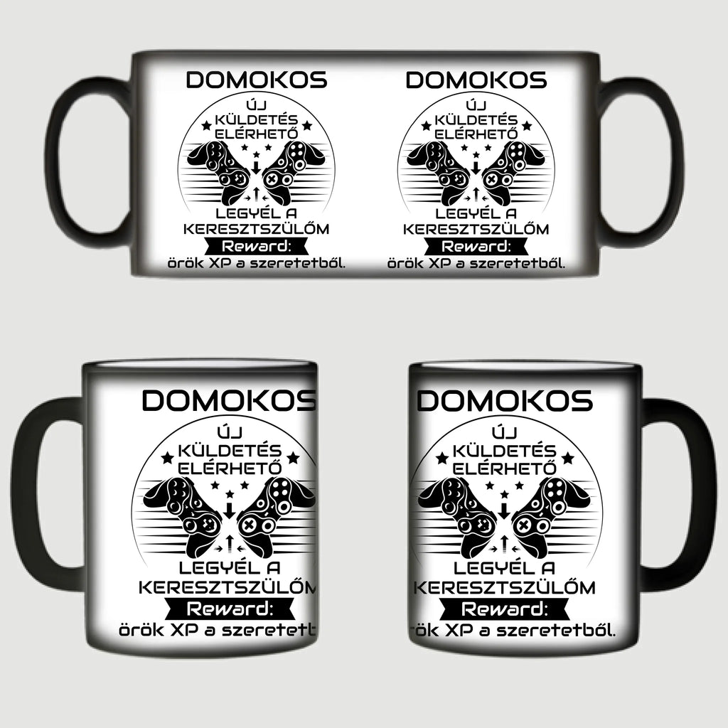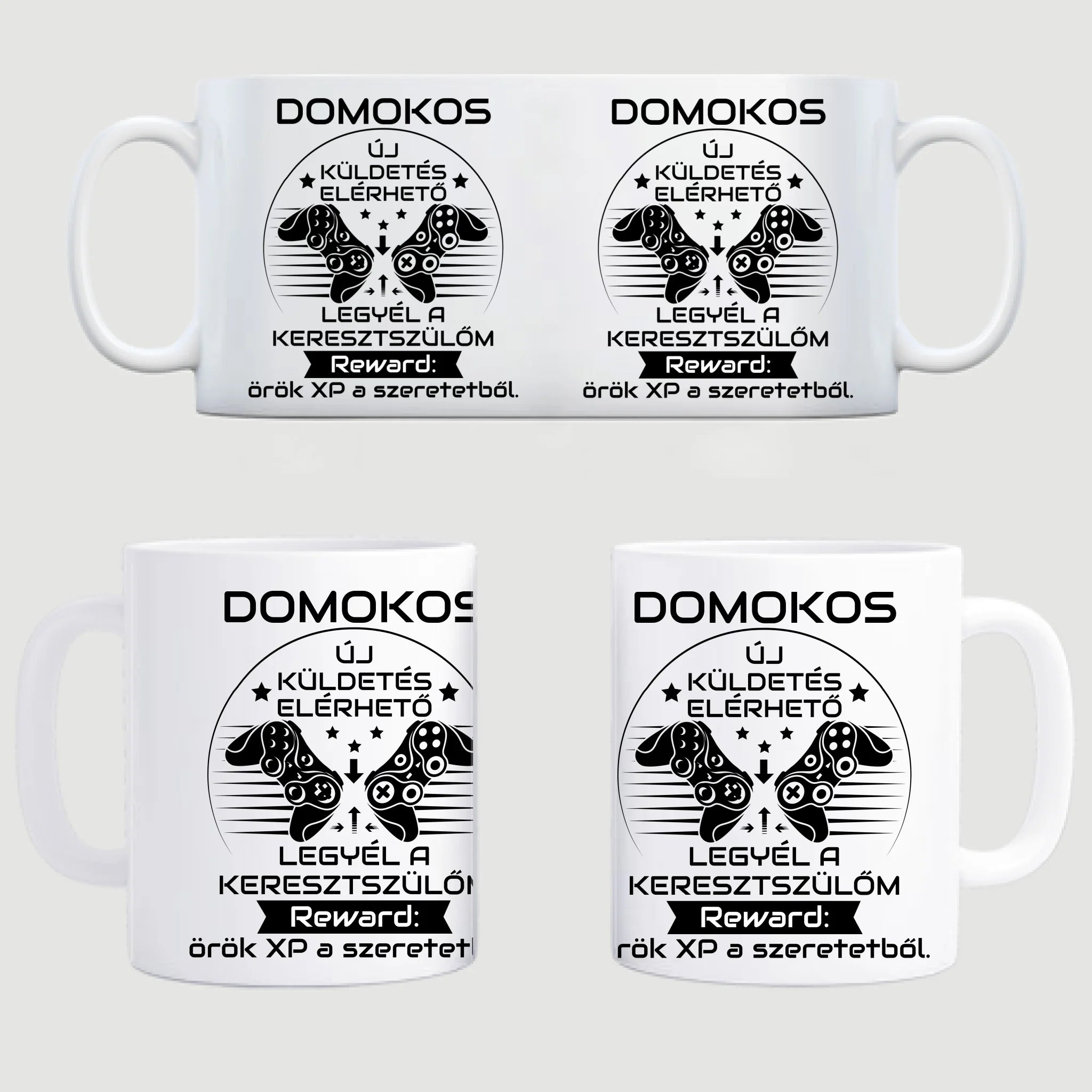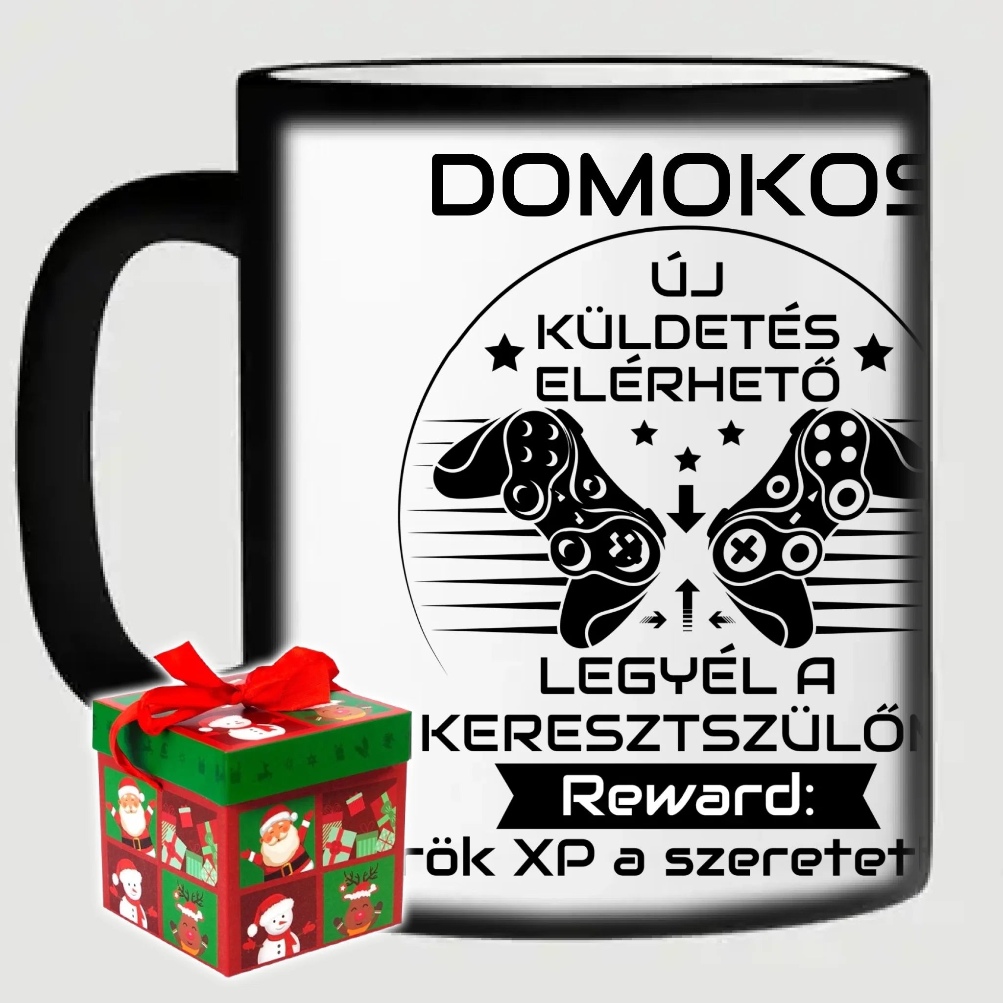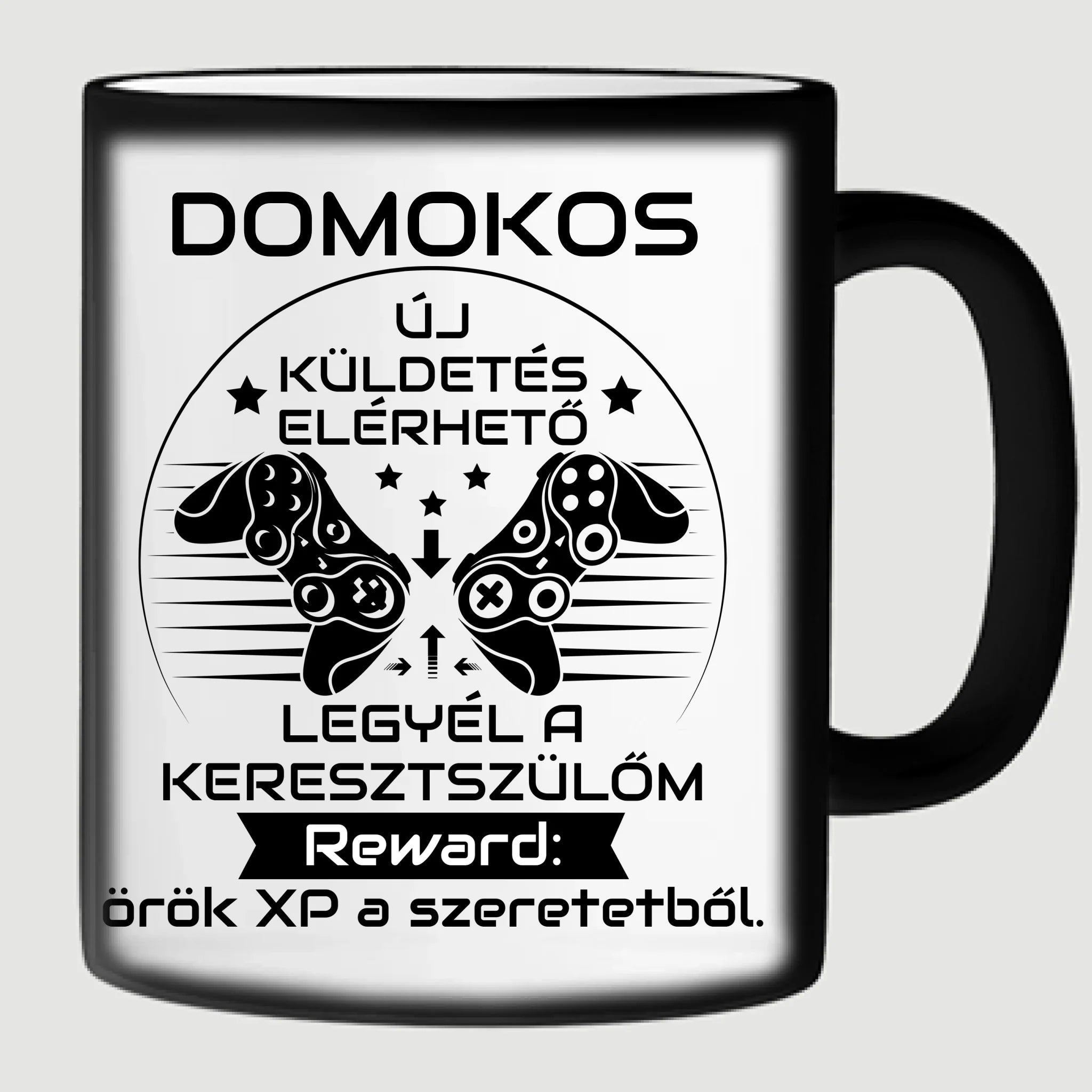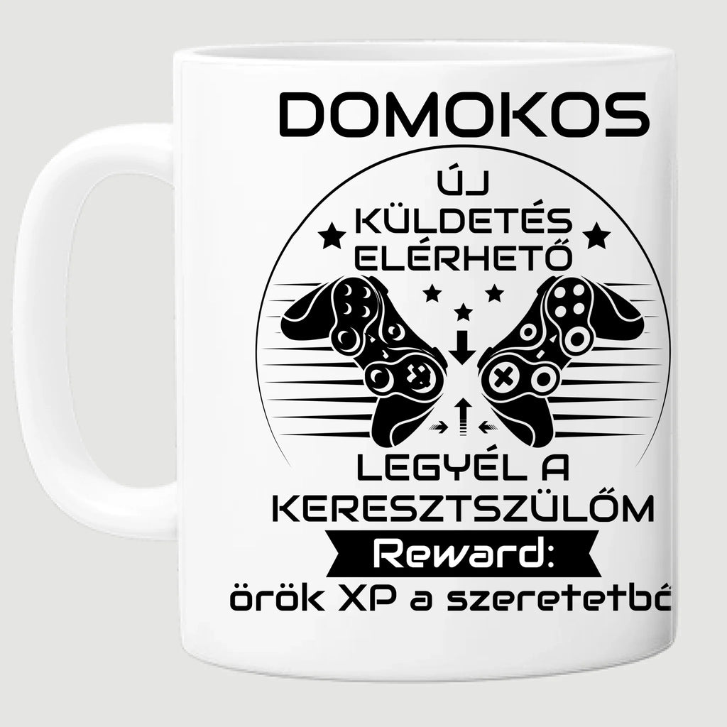Keresztszülő felkérő bögre – gamer stílus, egyedi névvel