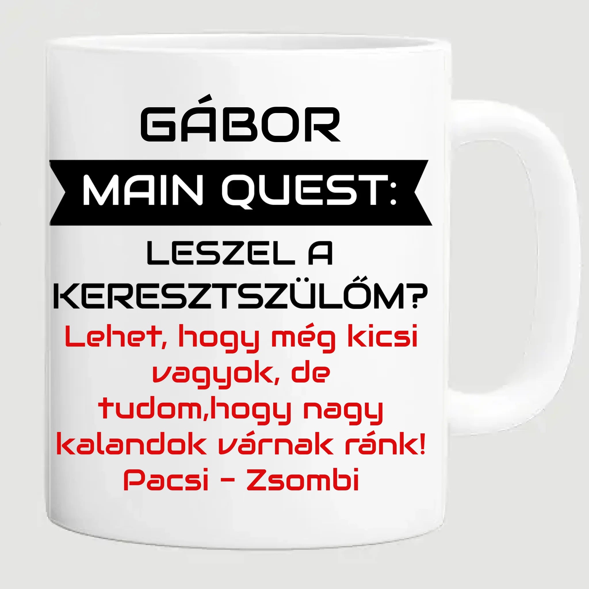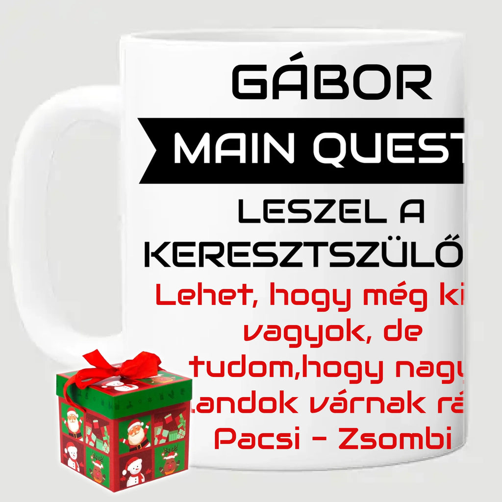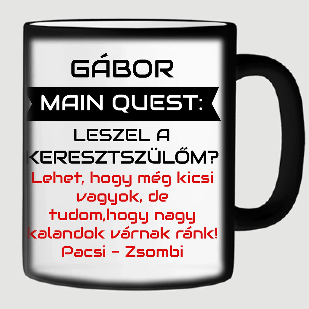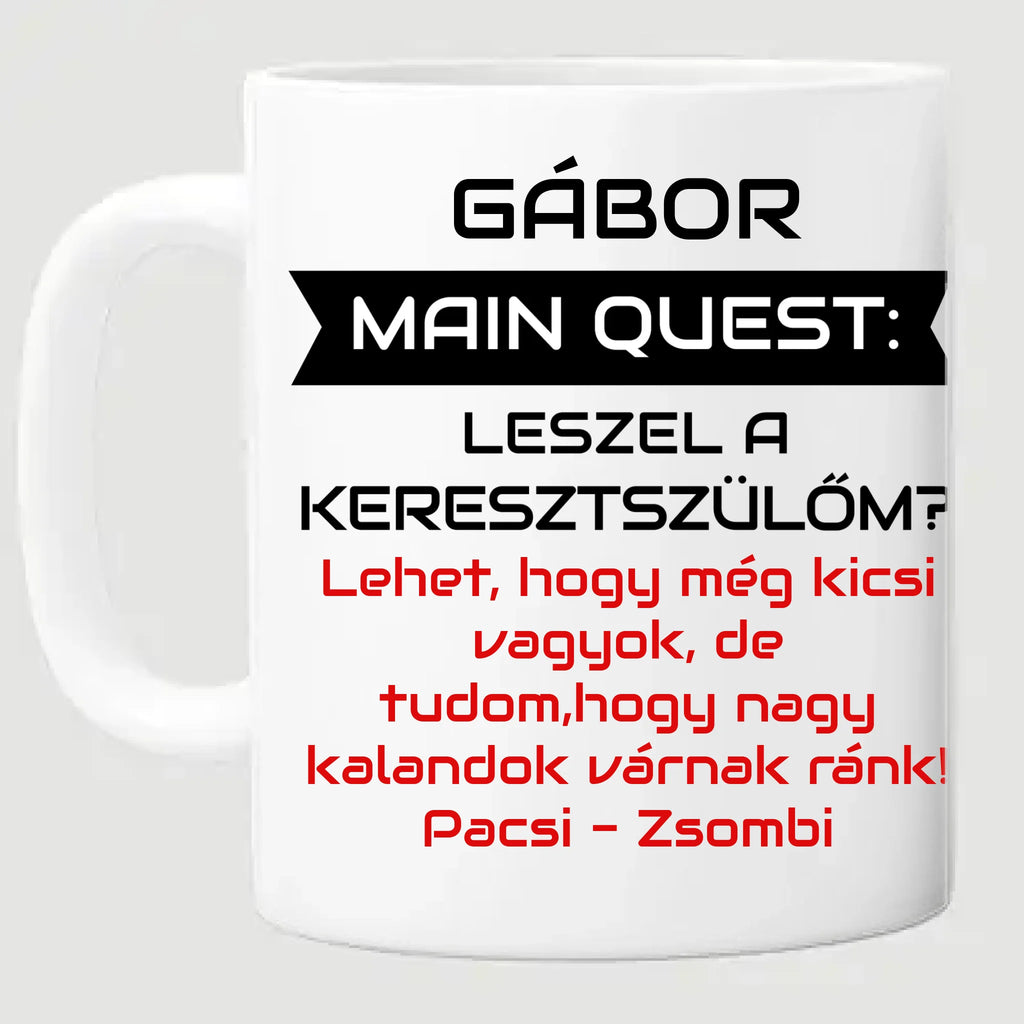 Main Quest: Leszel a keresztszülőm? – gamer bögre egyedi névvel
