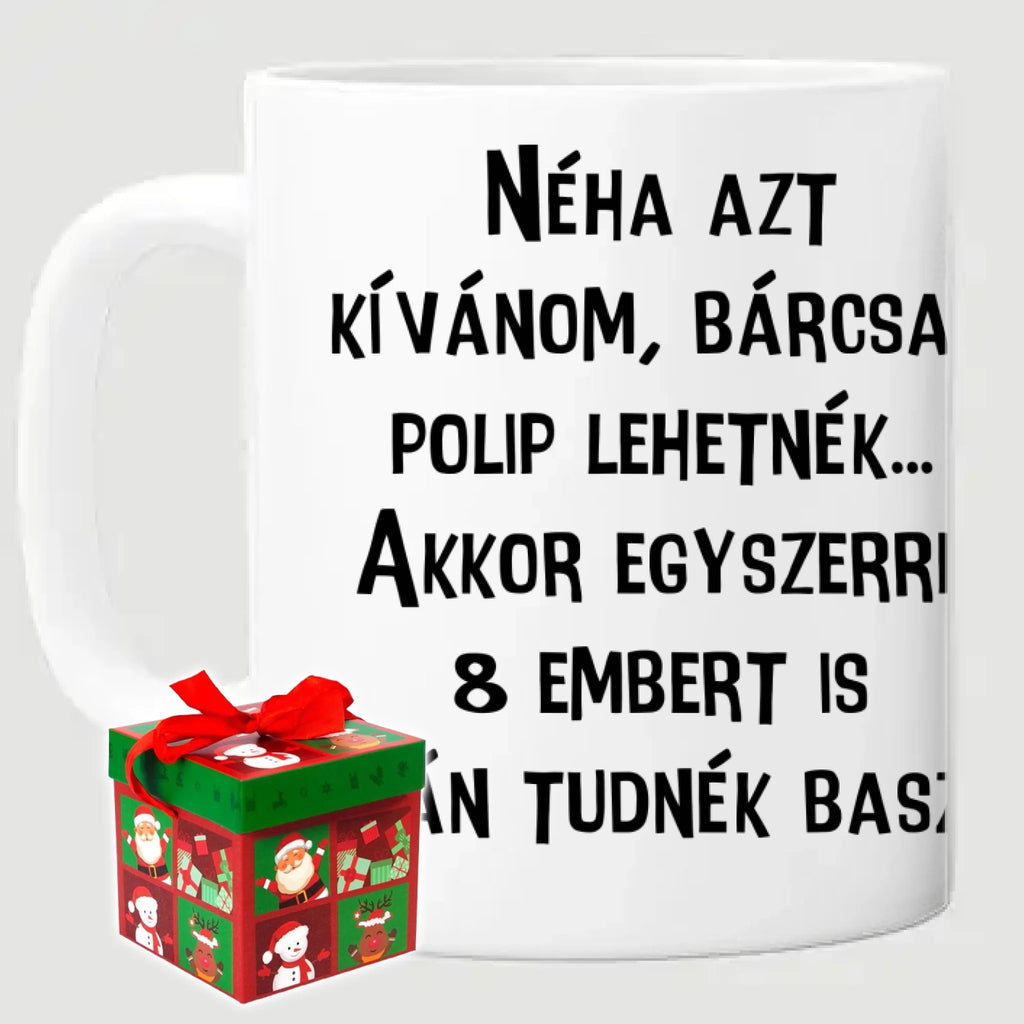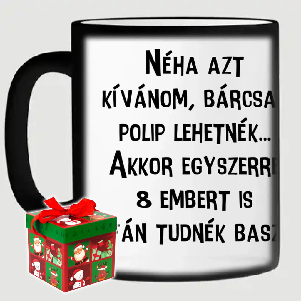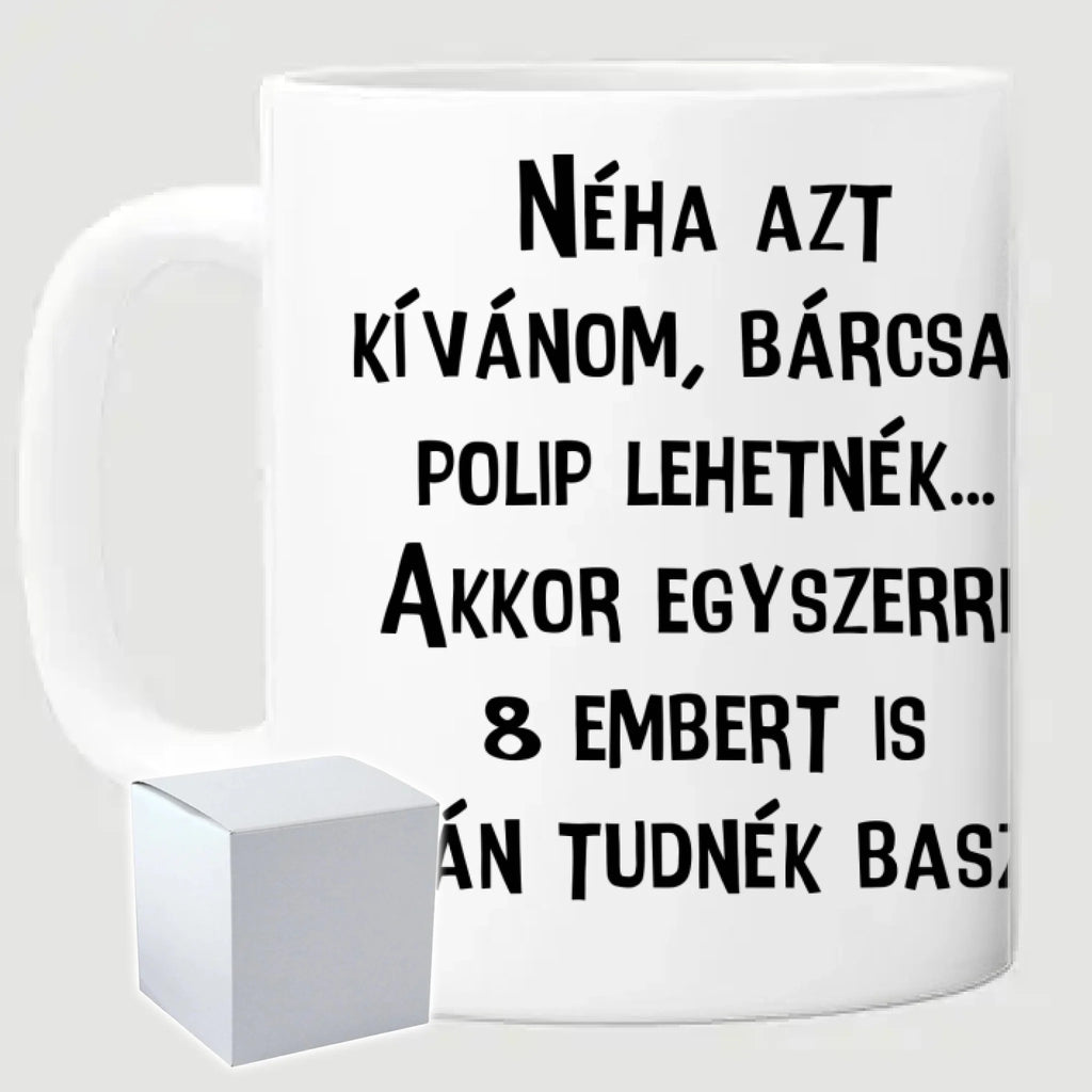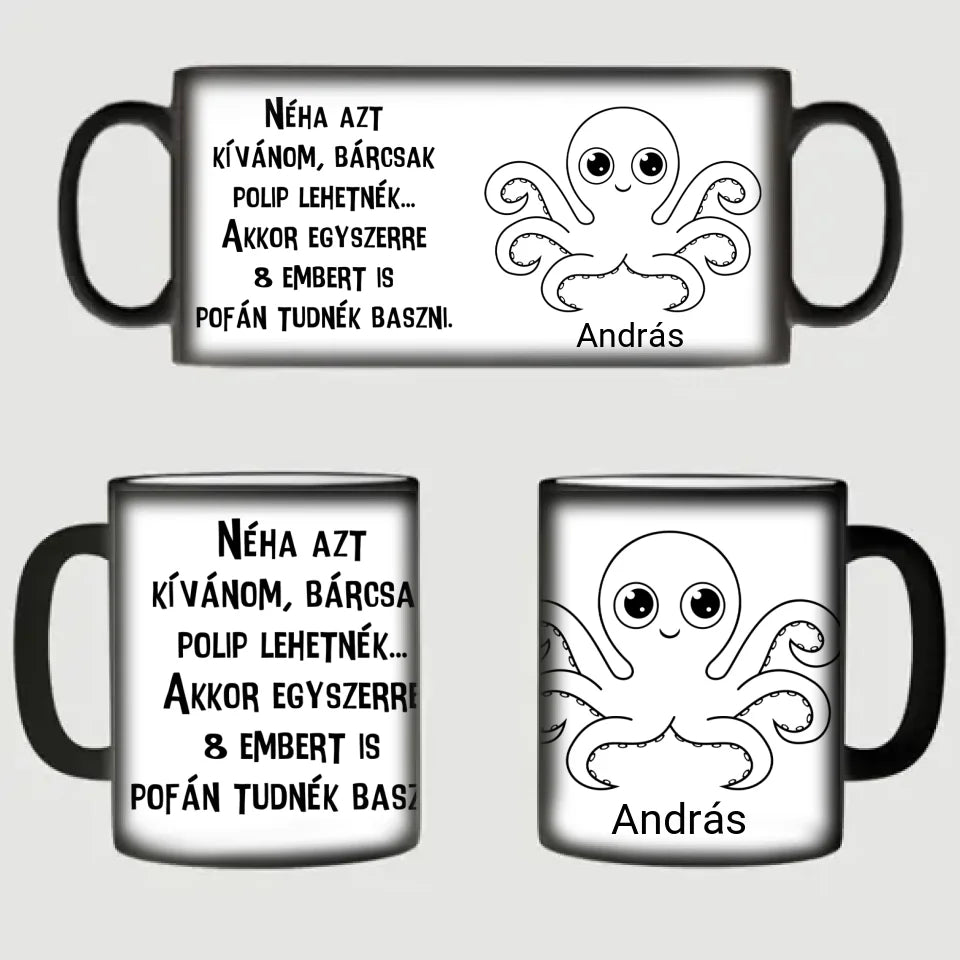 Néha azt kívánom, bárcsak polip lehetnék... Akkor egyszerre 8 embert is pofán tudnék baszni - vicces bögre egyedi névvel