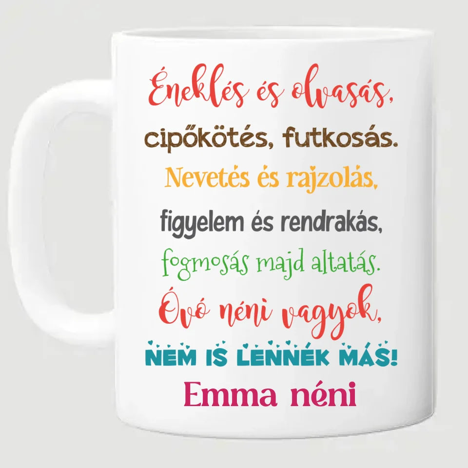 Óvó néni vagyok, nem is lennék más - egyedi bögre óvó néninek