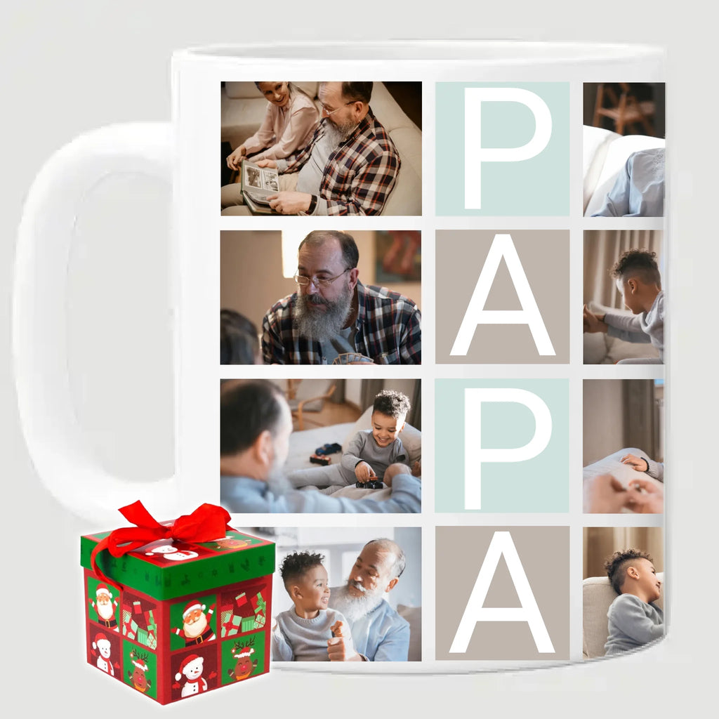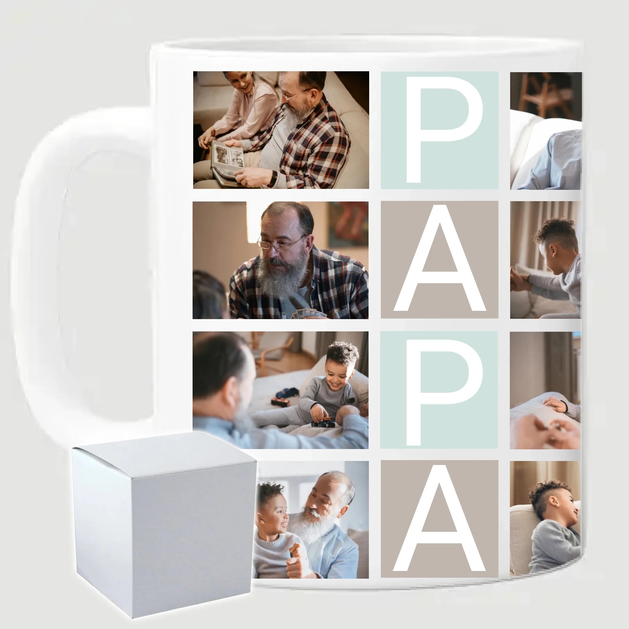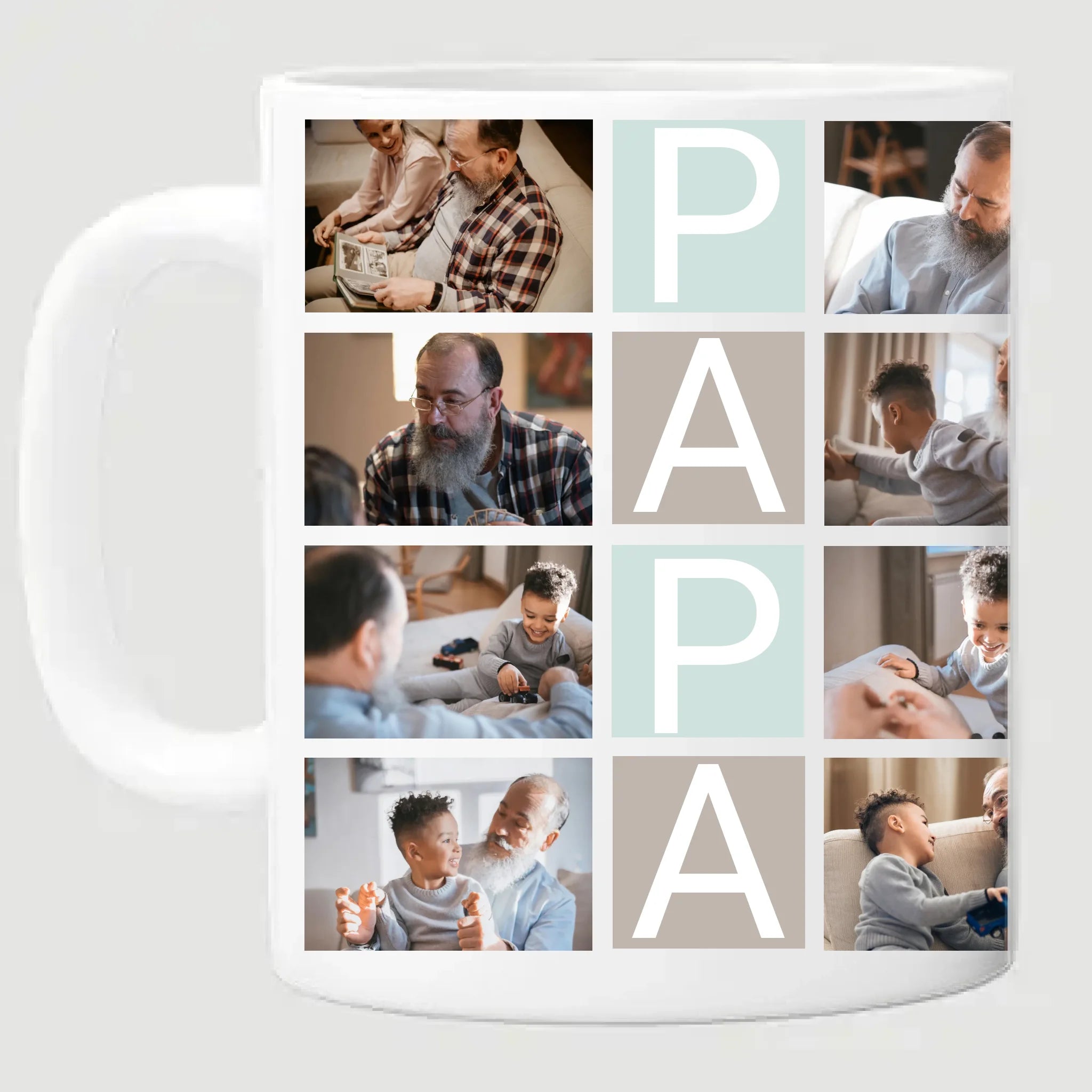 Papa feliratos egyedi 8 fényképes bögre választható felirattal