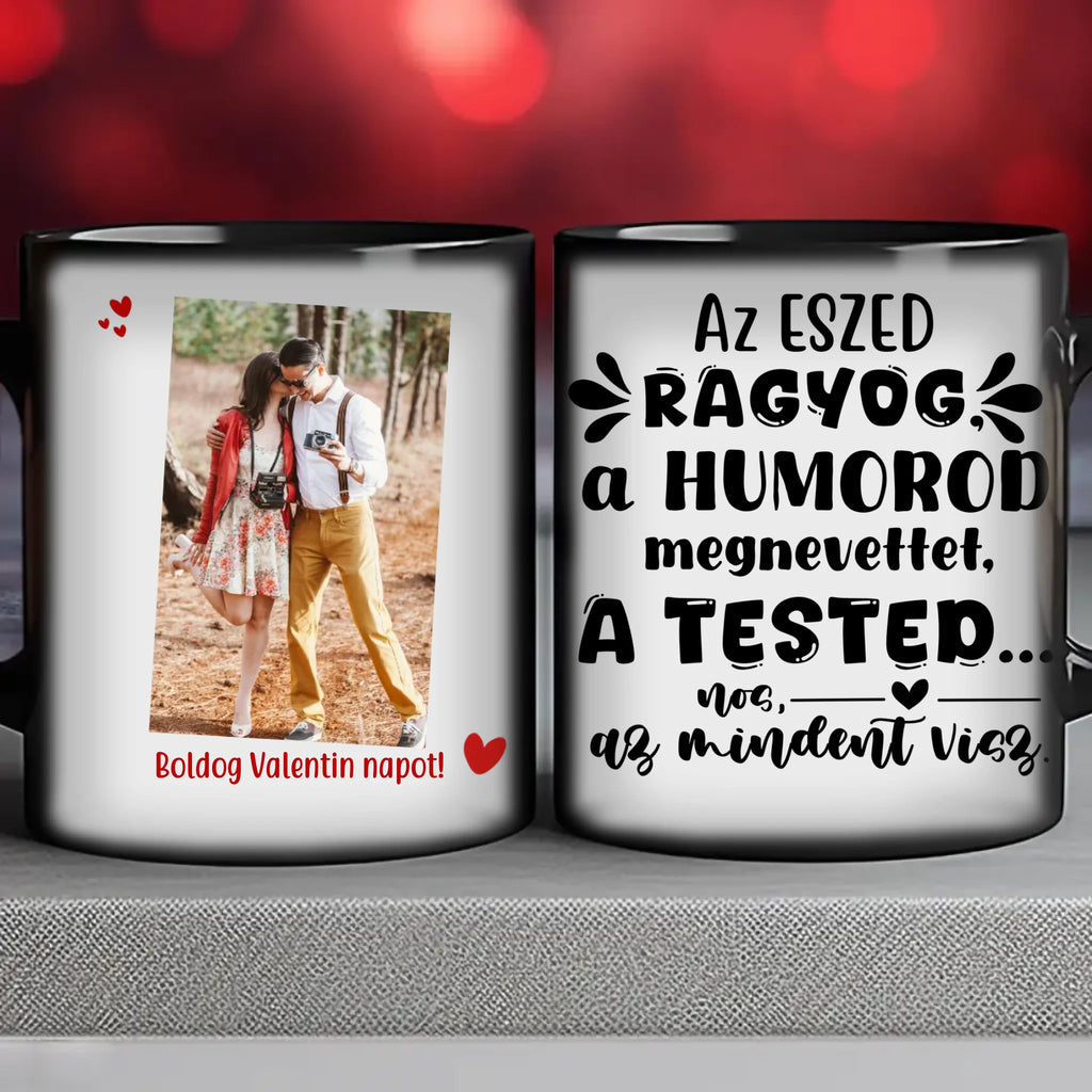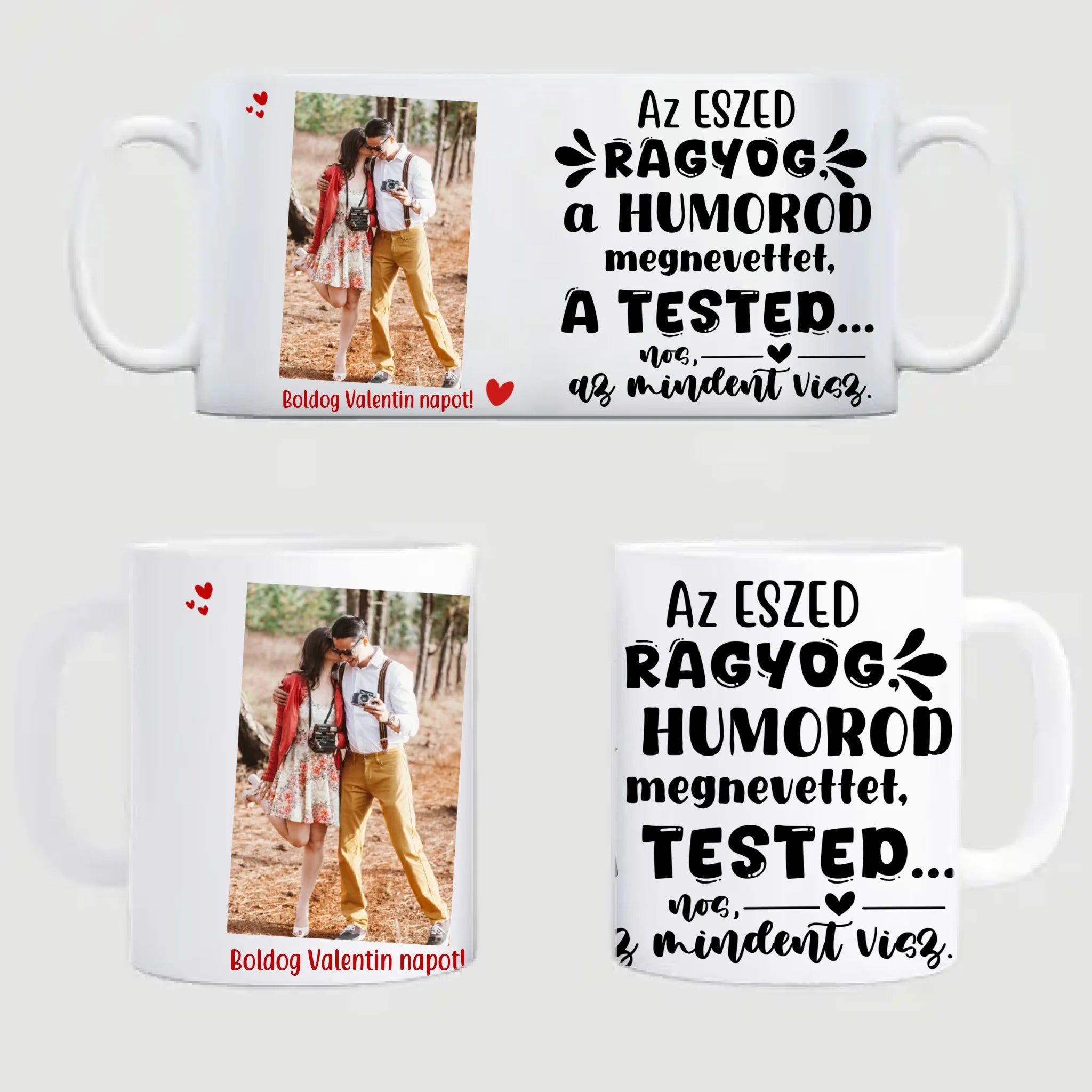 Valentin napi vicces bögre fényképpel -a tested mindent visz