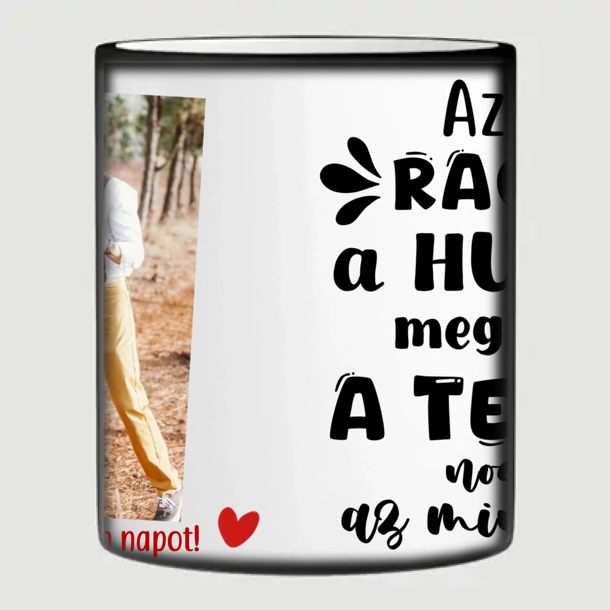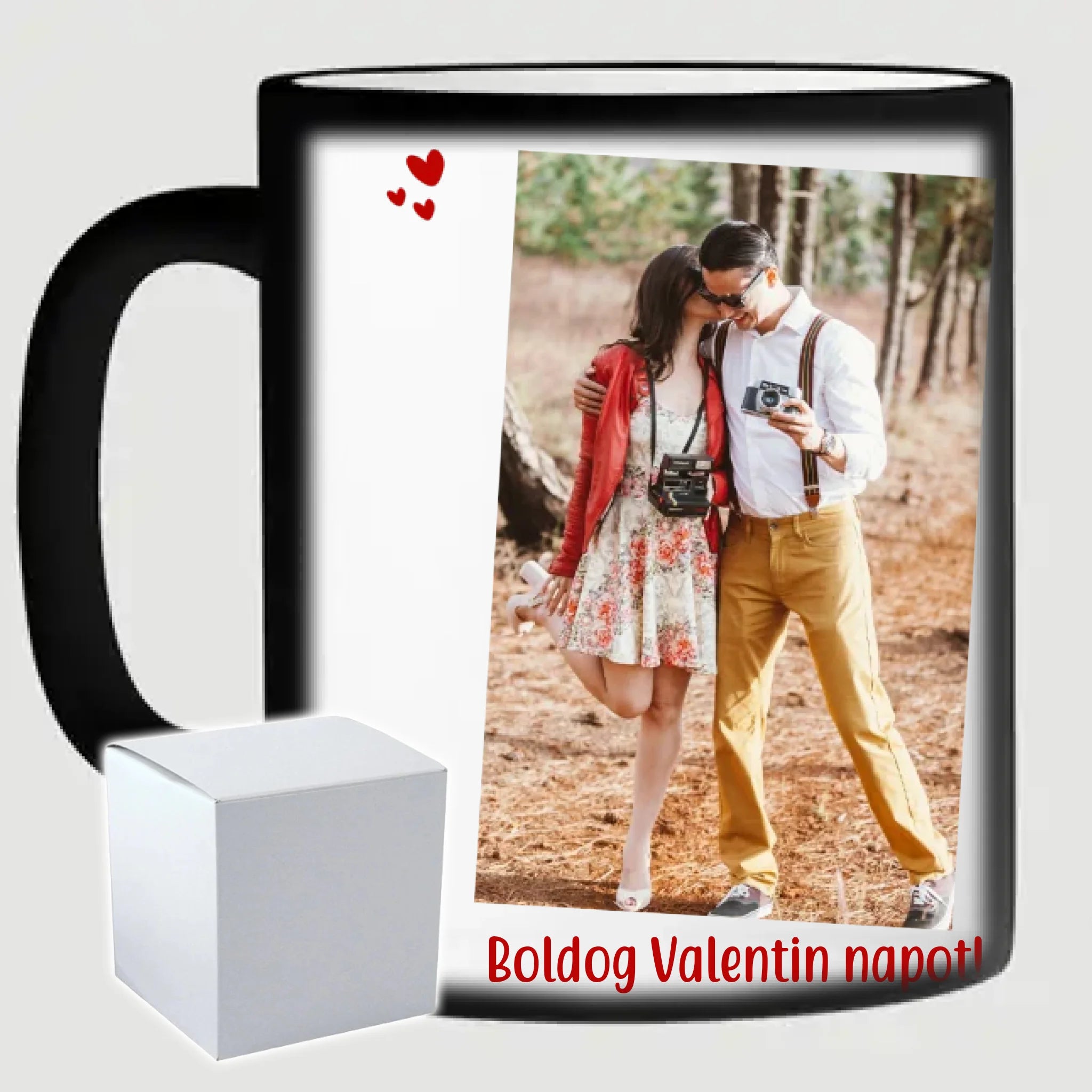 Egyedi fényképes bögre a saját fotóddal. Az egyedi fényképes bögre remek ajándék Valentin napra és évfordulóra. Az egyedi bögre nyomtatása nagyon magas hőfokon történik, ezáltal az anyag szerkezetébe sütjük bele, így a nyomat rendkívül tartós lesz és nem kopik, nem fakul ki. A fényképes bögréhez bármilyen fotót választhatsz, illetve feliratot is adhatsz hozzá.