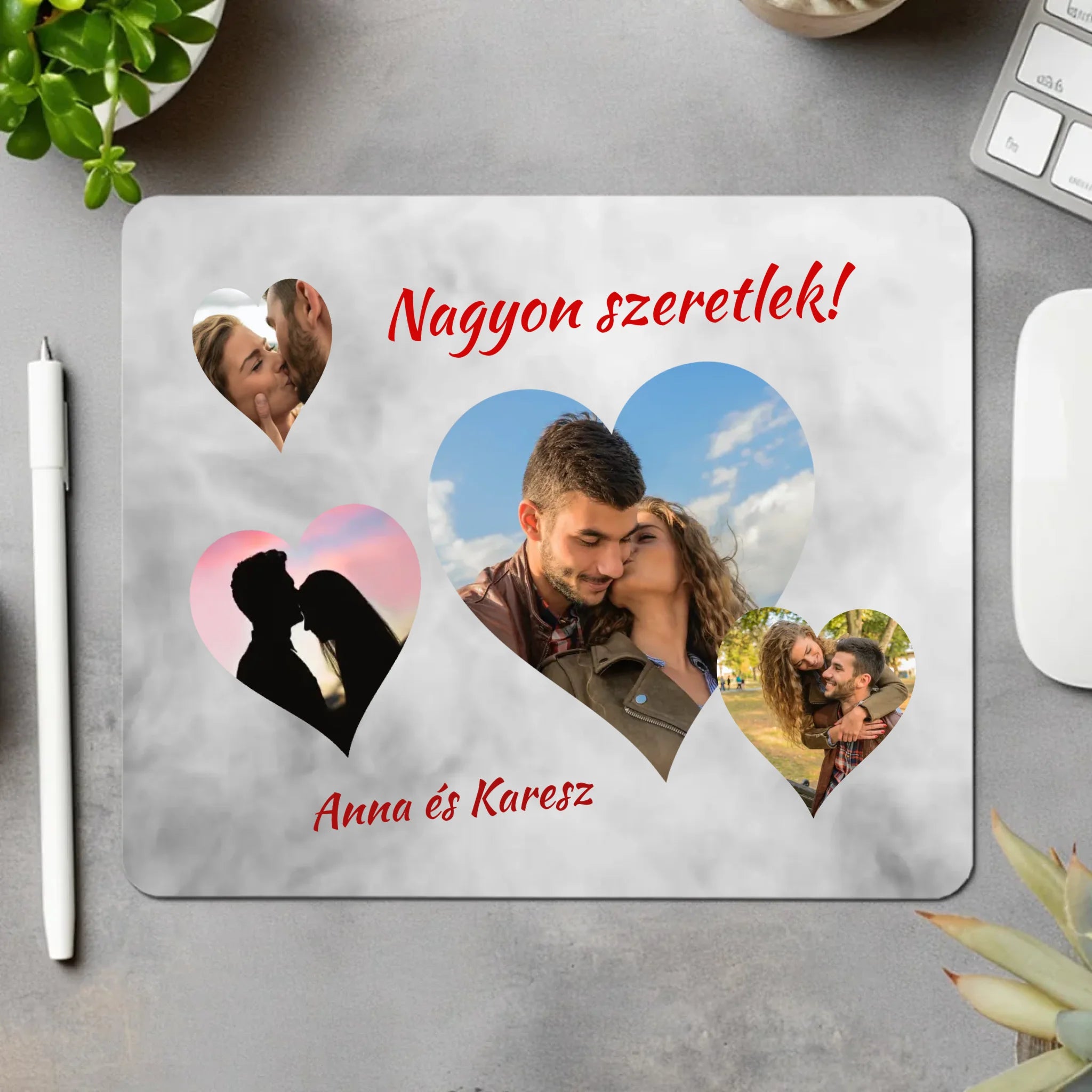 Egyedi fényképes egérpad 4 szív alakú képpel