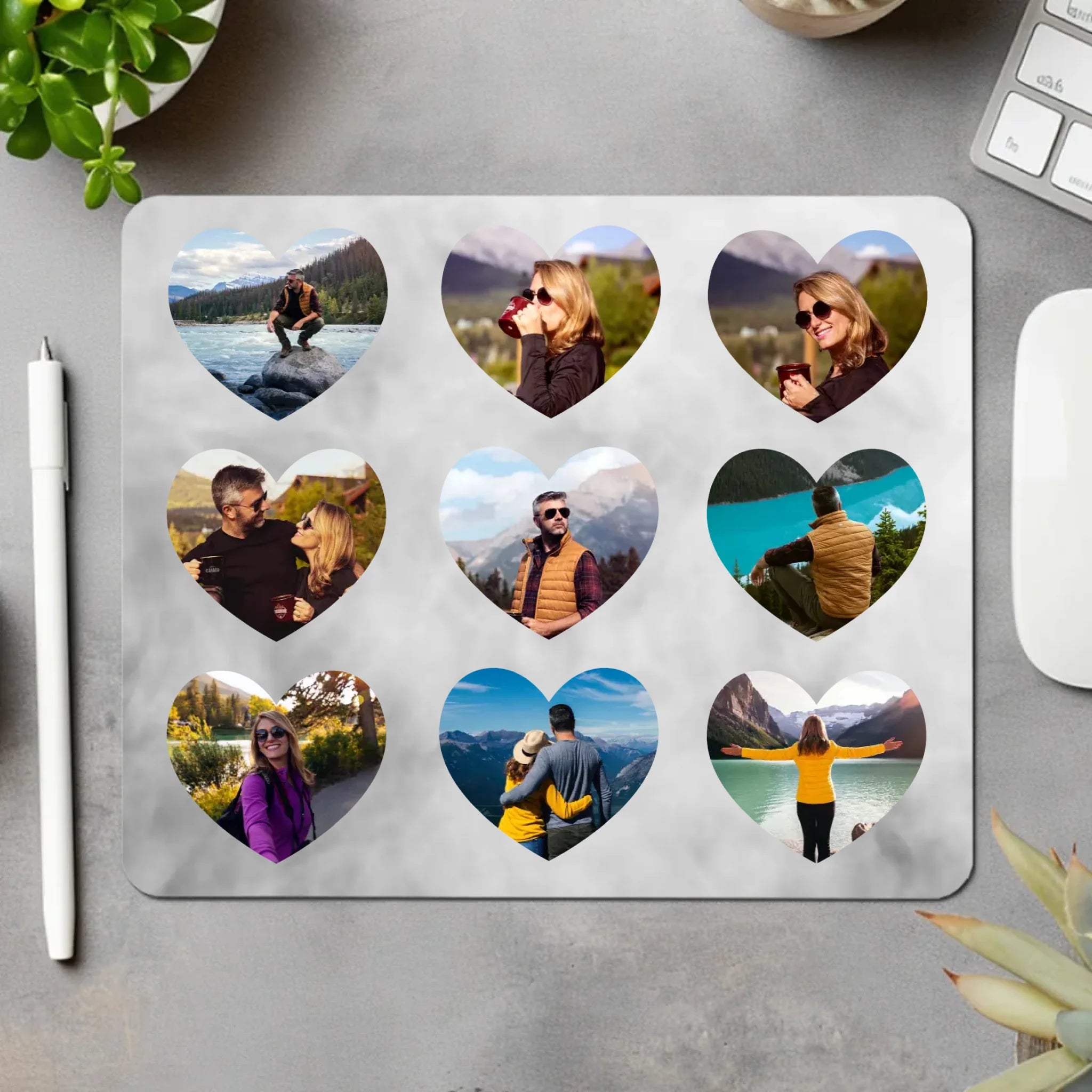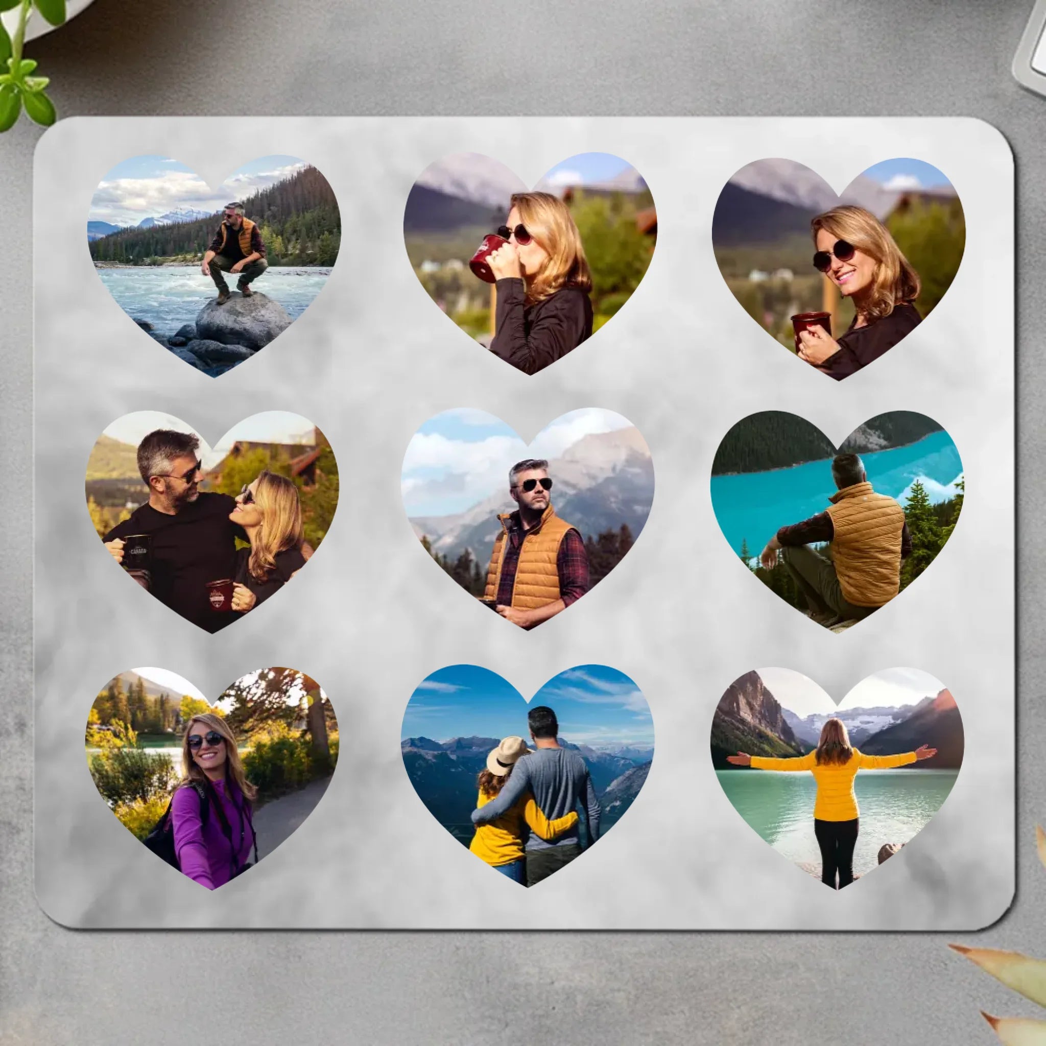 Egyedi fényképes egérpad 9 szív alakú képpel