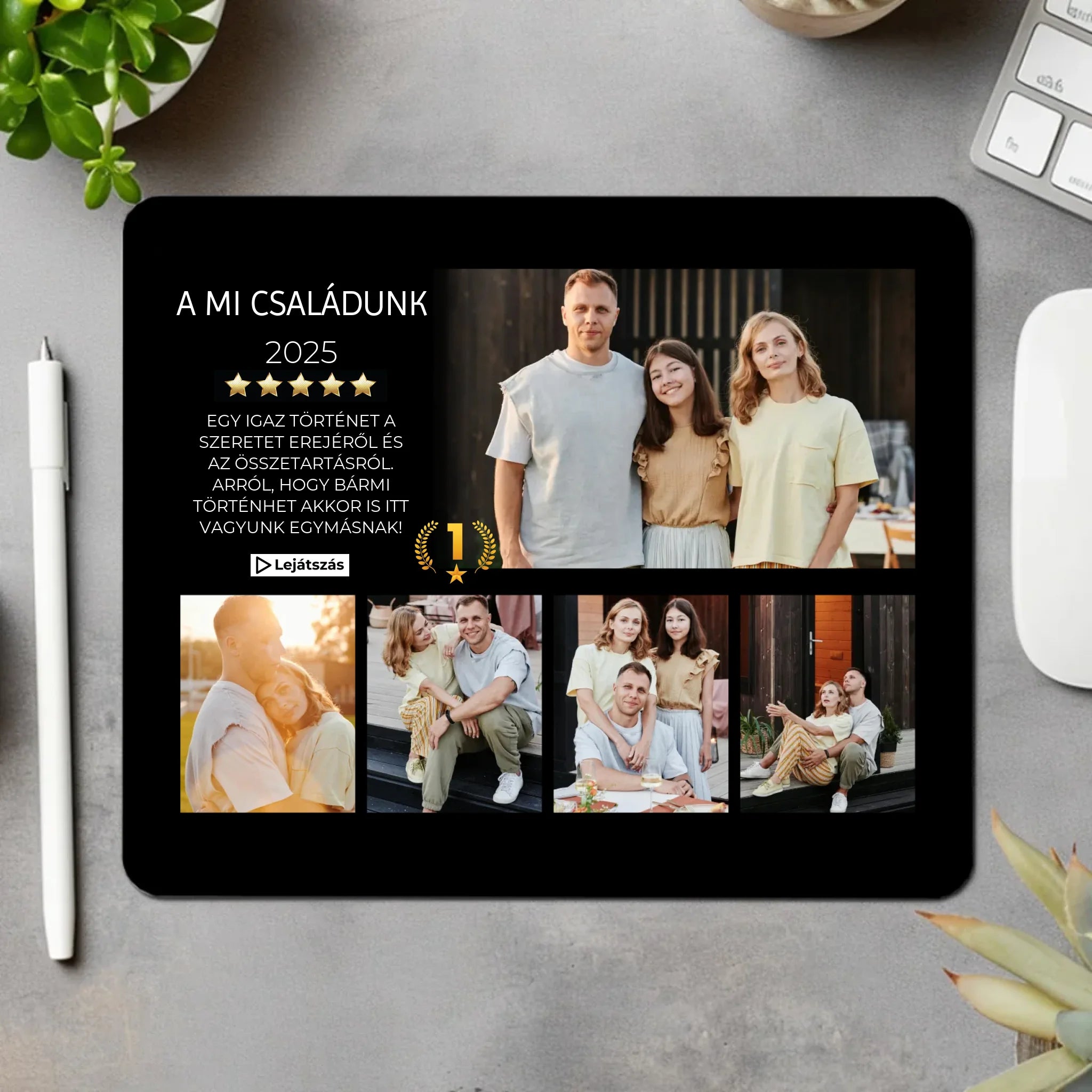 Az egyedi fényképes egérpad remek választás lehet, ha személyre szabott ajándékot keresel vagy feldobnád az íróasztalodat! Az egérpad kiváló minőségű, tartós anyagból készült, így kényelmes kiegészítője lehet munkakörnyezetednek, vagy otthonodnak.
