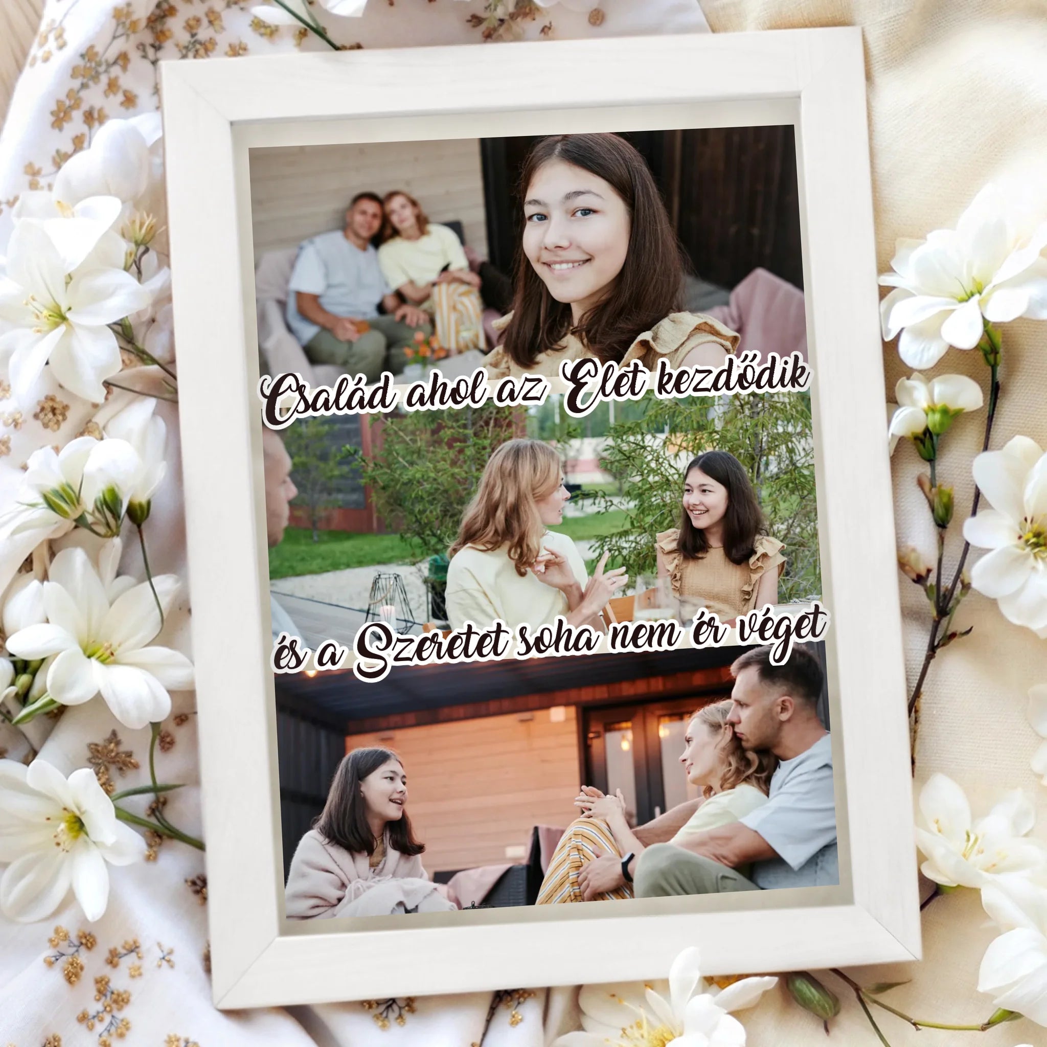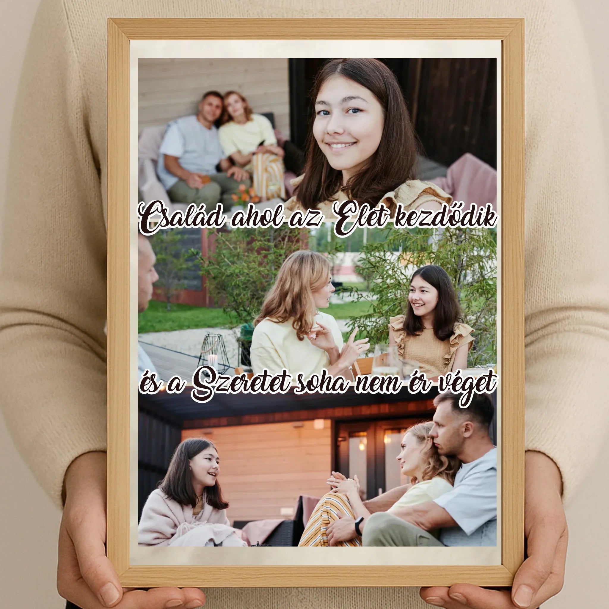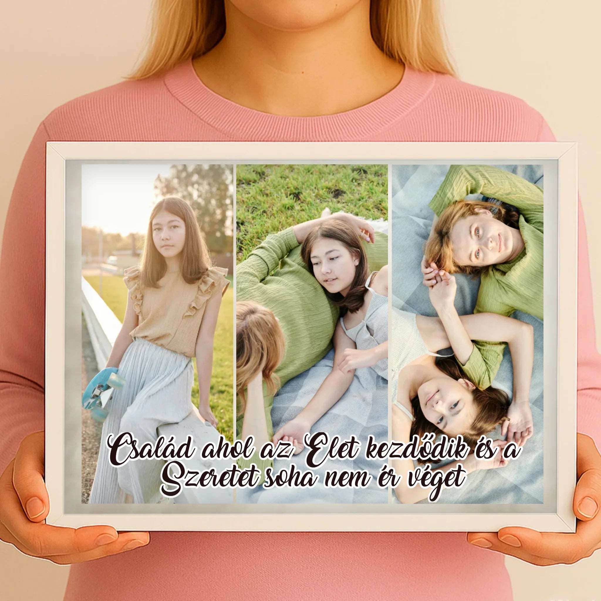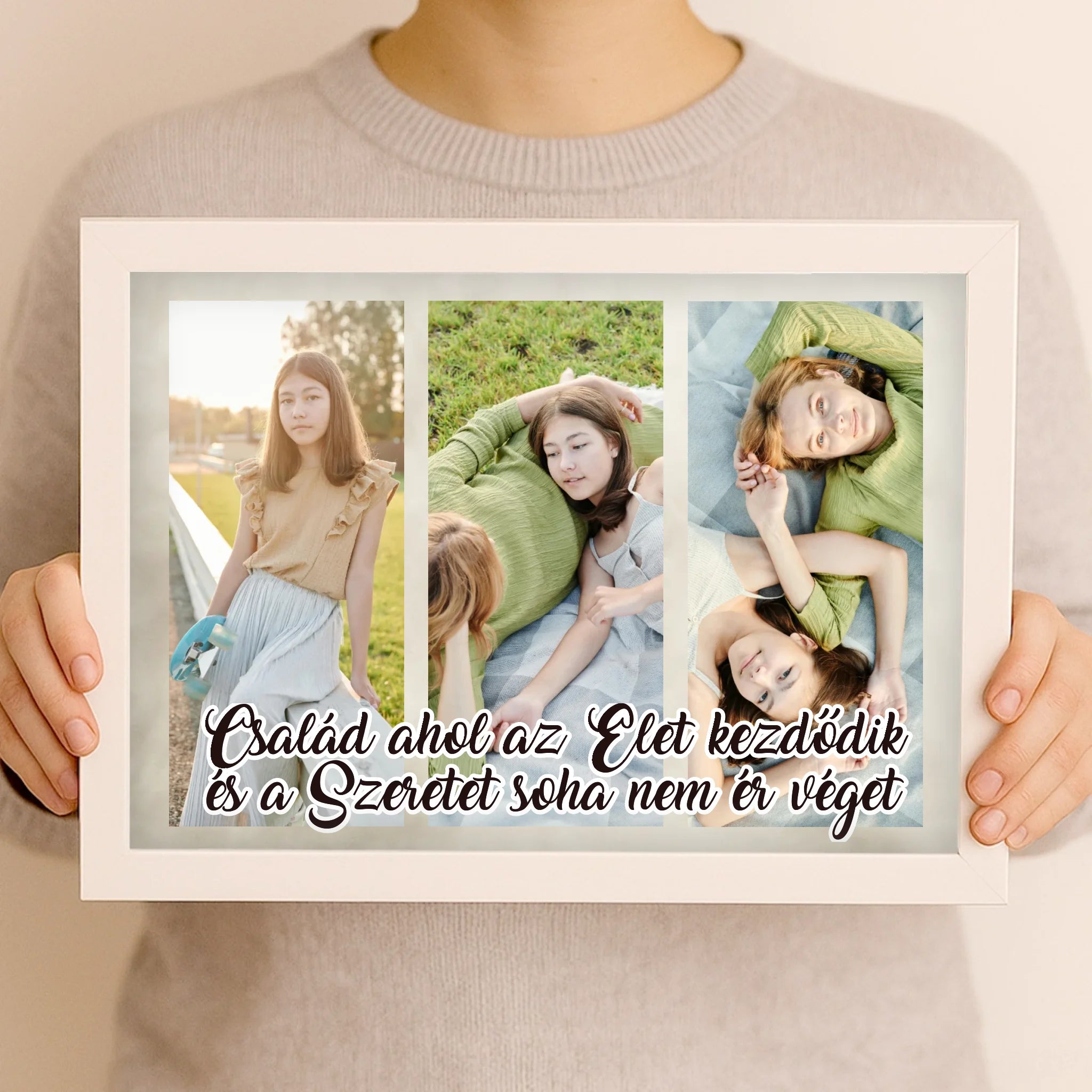 🖼️ Egyedi falikép 3 fotóval és felirattal – személyes ajándék különleges pillanatokhoz