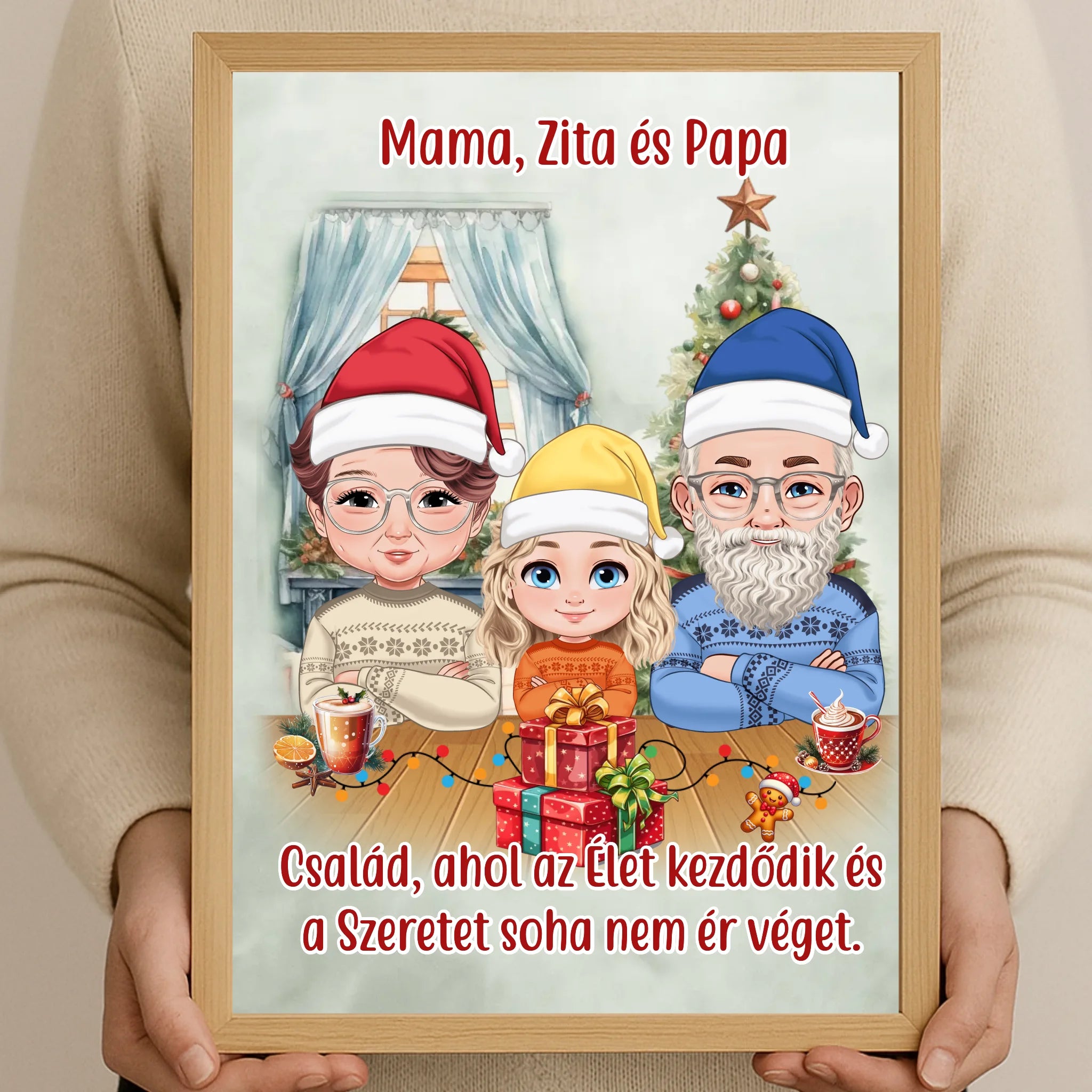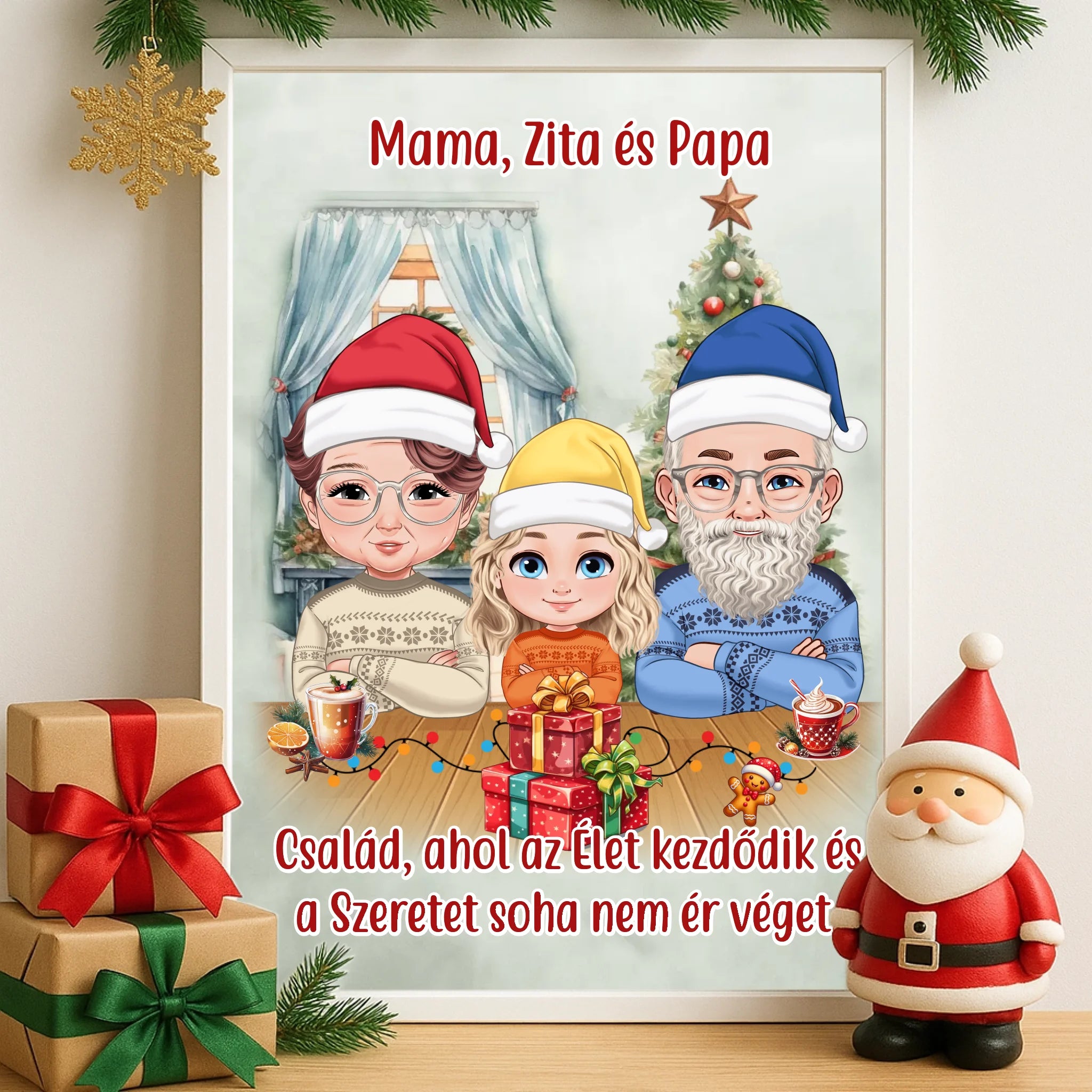 🎄 Egyedi karácsonyi falikép nagyszülőknek és gyerekeknek – szerkeszthető karakterekkel