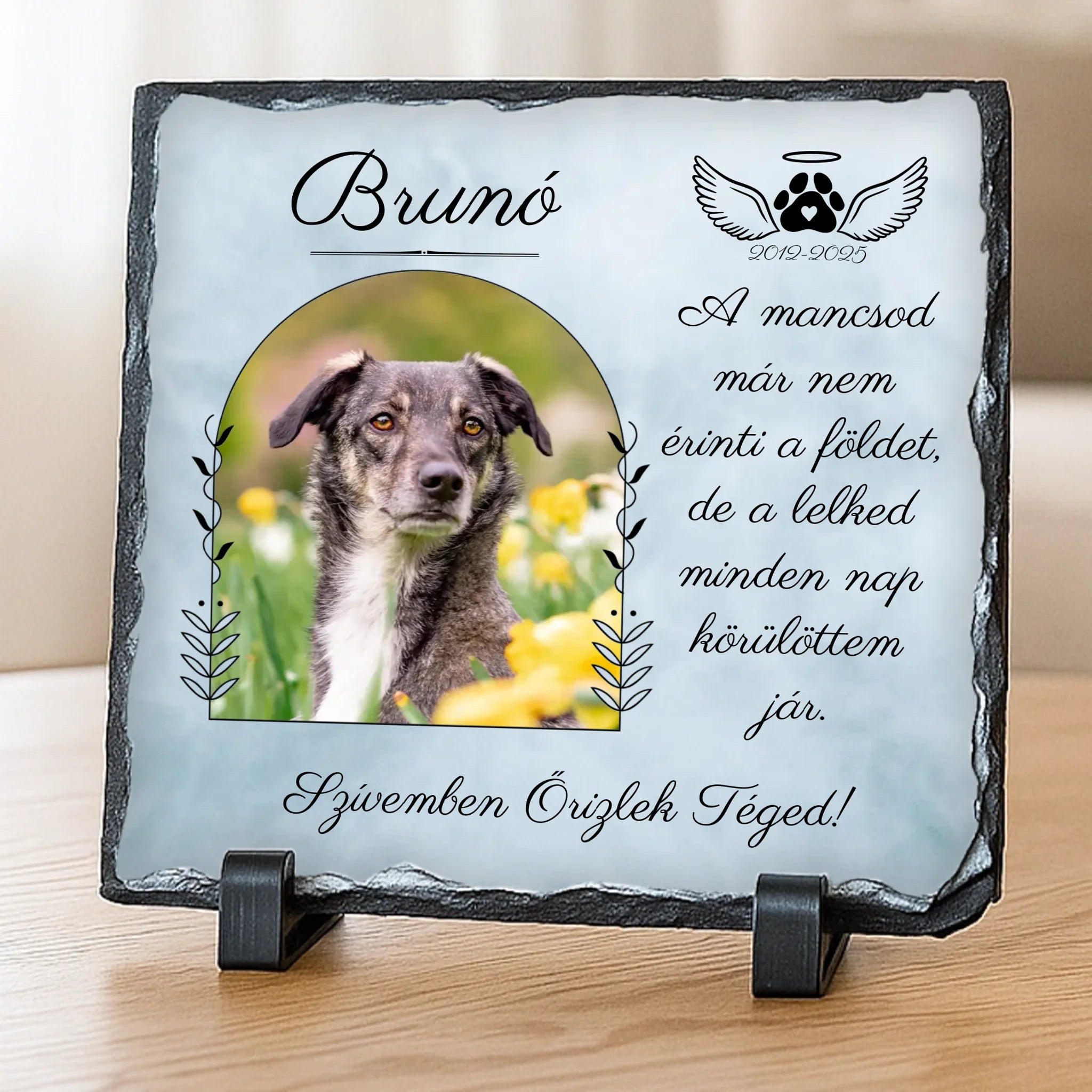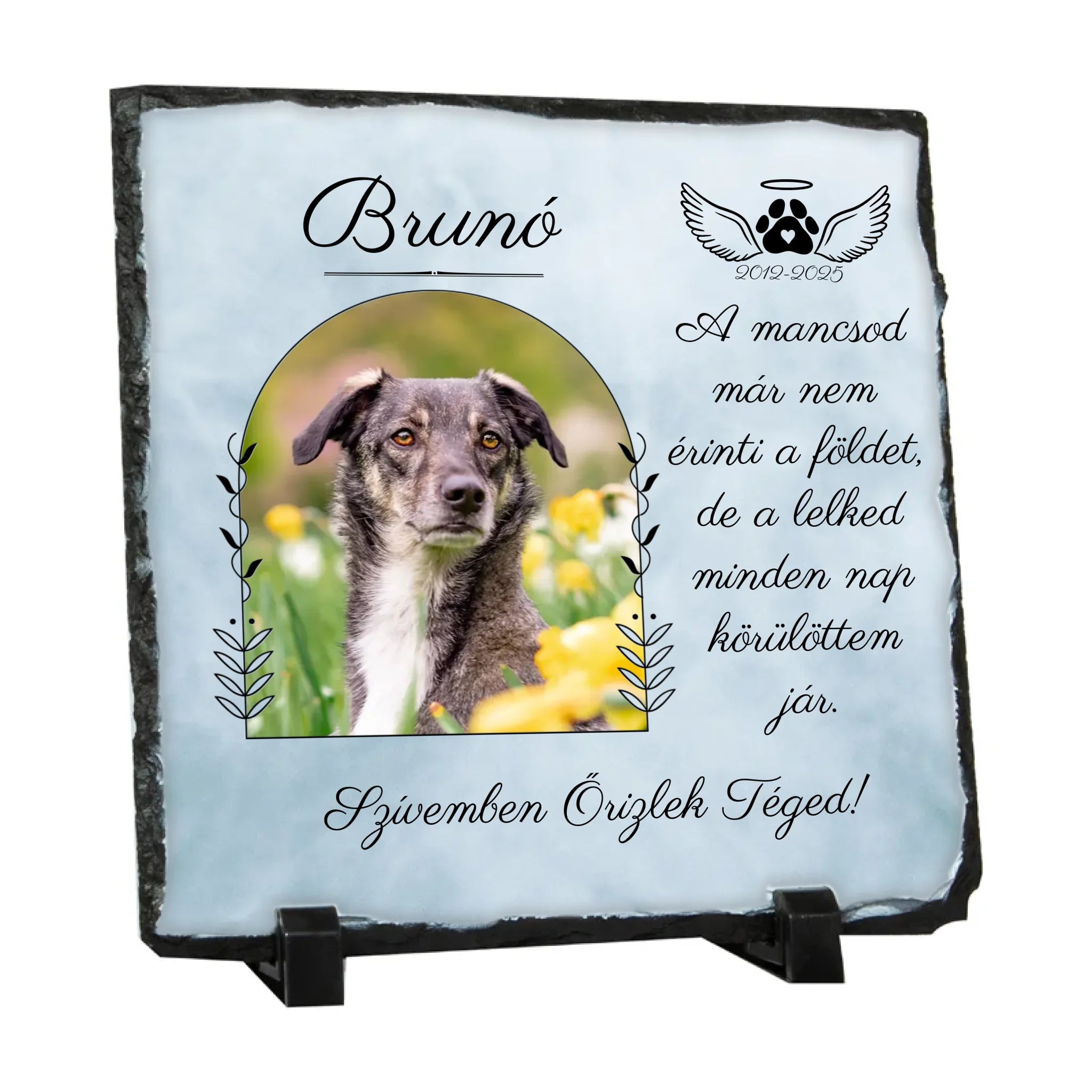 🐾 Egyedi emléktábla fotókő képpel és felirattal – háziállatos minta
