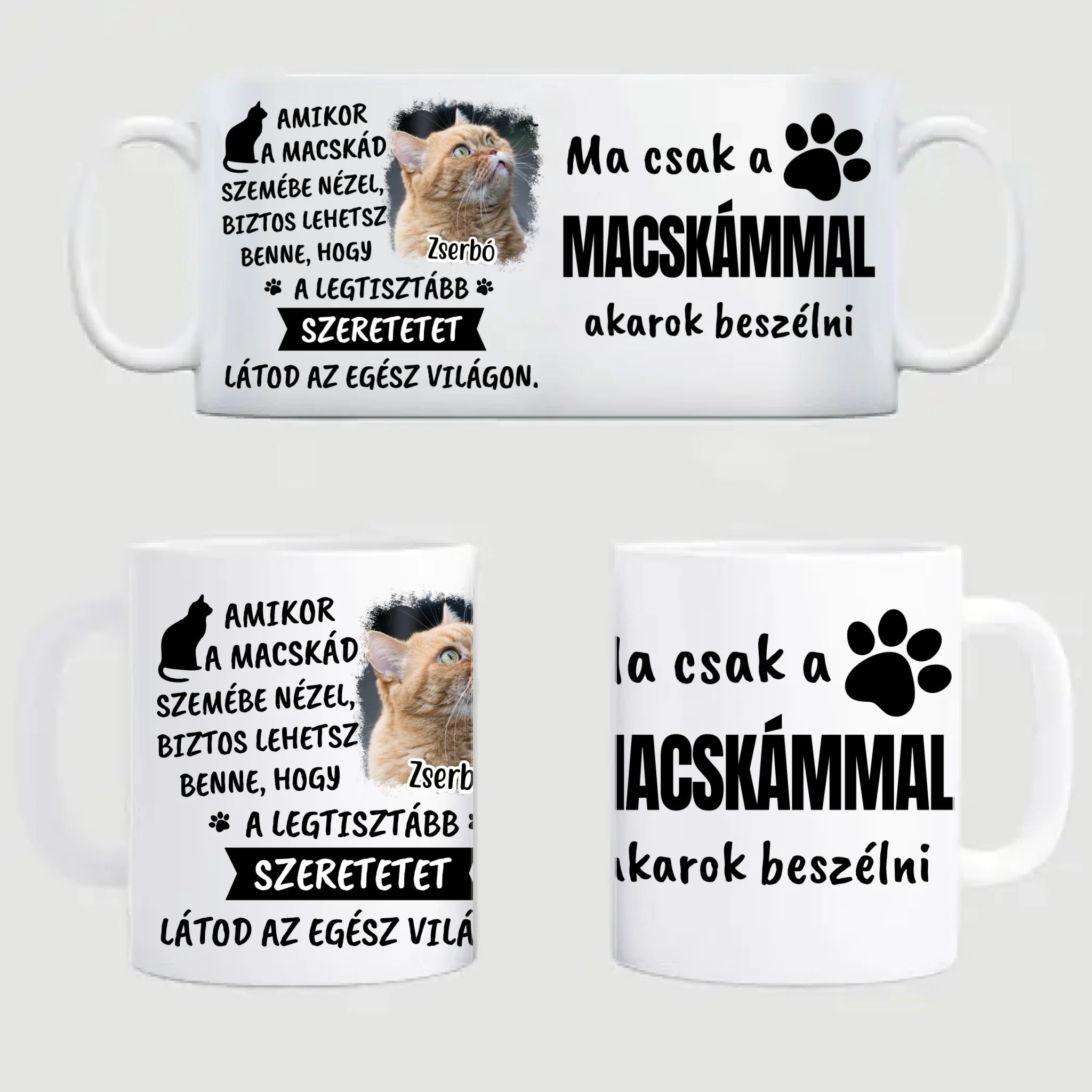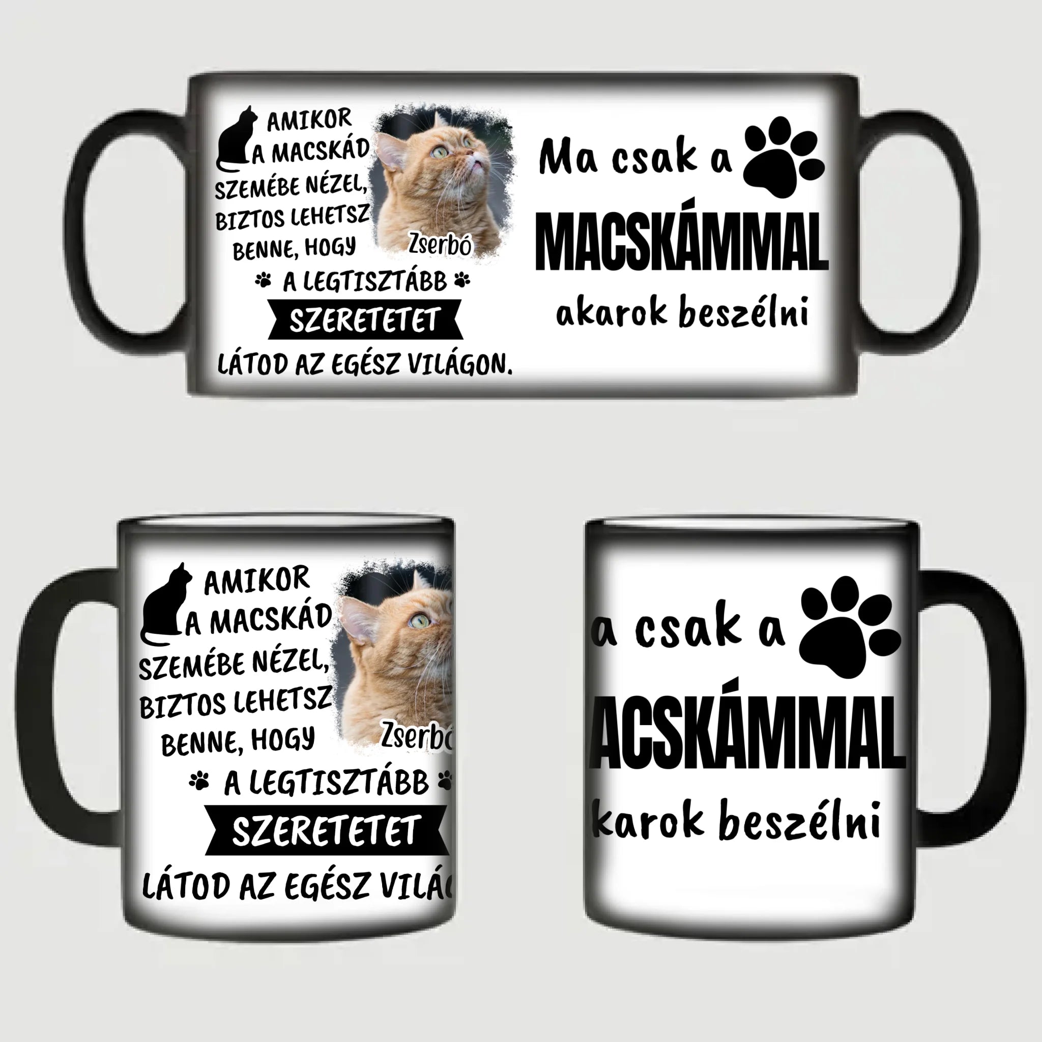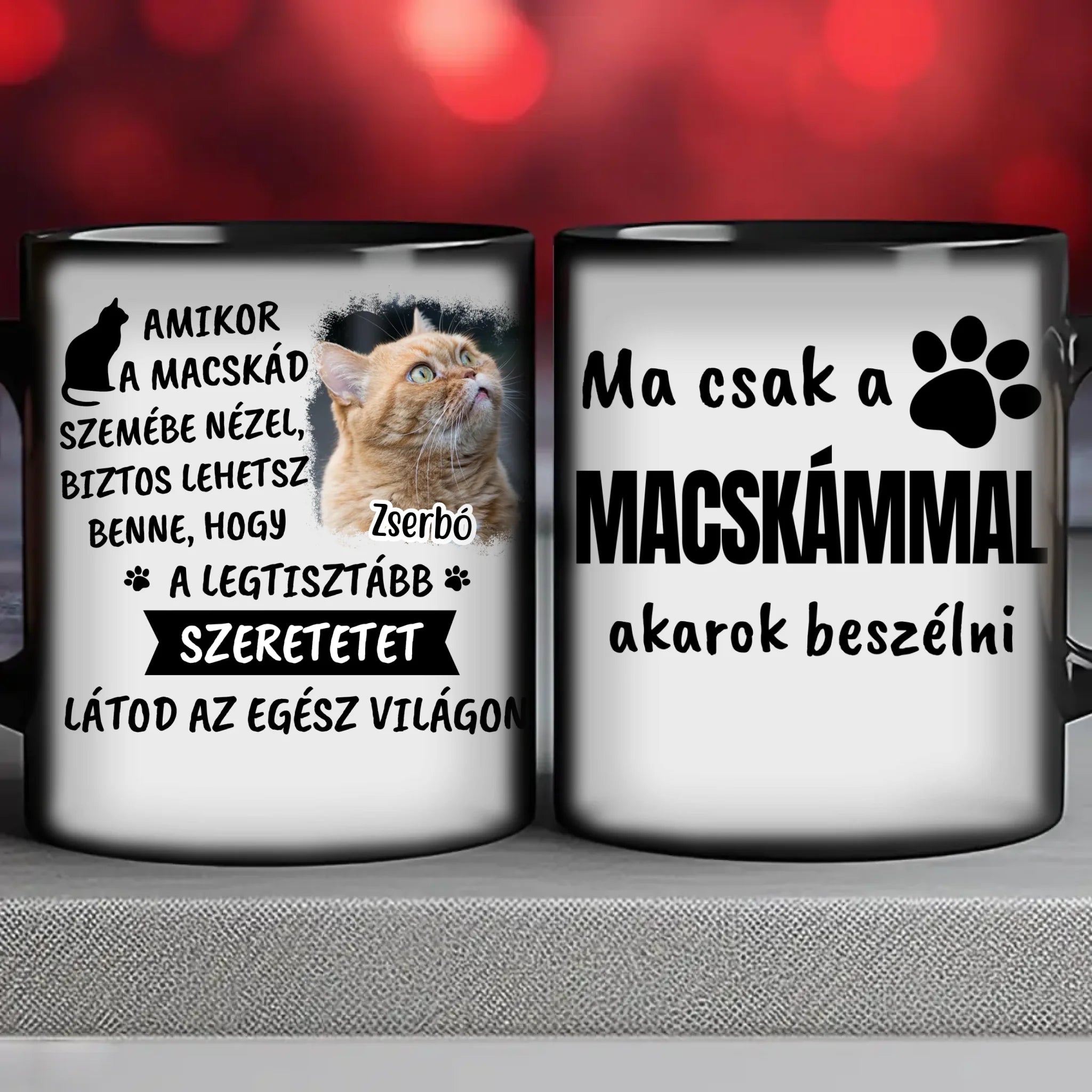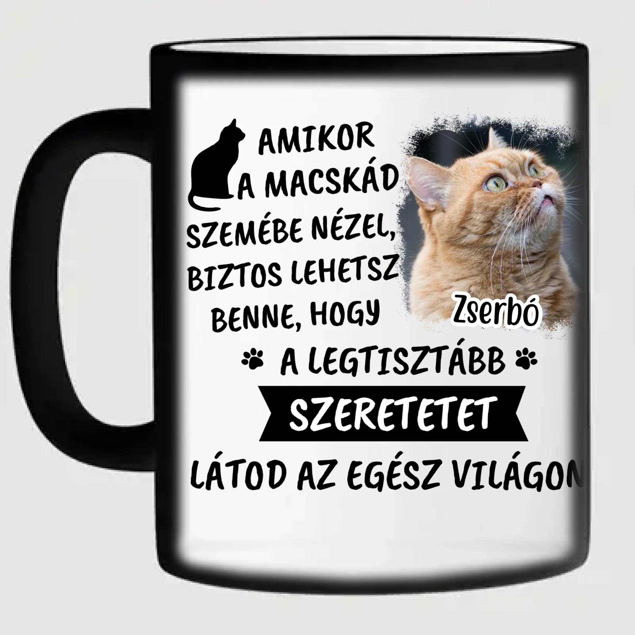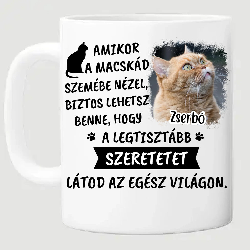 Egyedi fényképes bögre macska gazdiknak személyre szabható felirattal