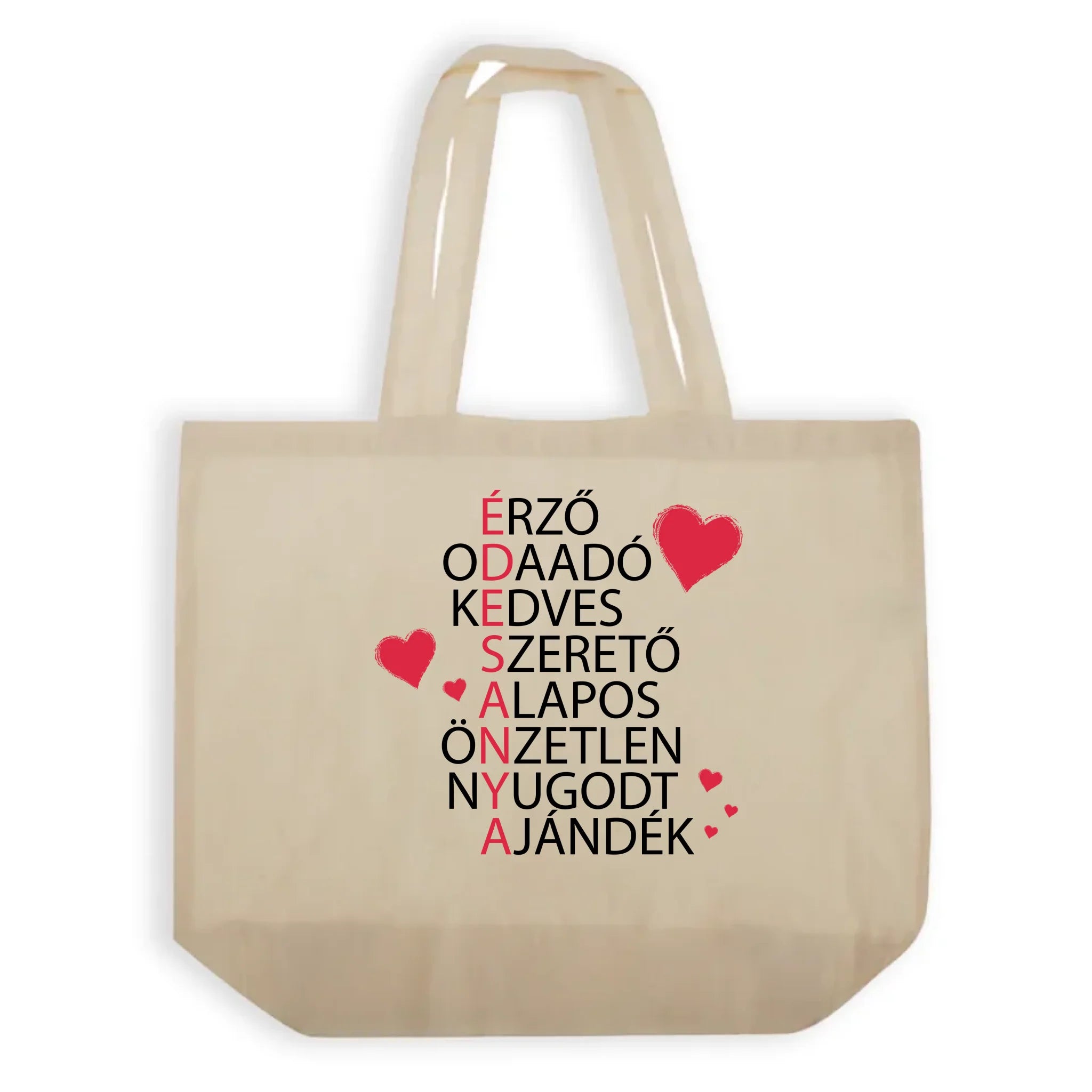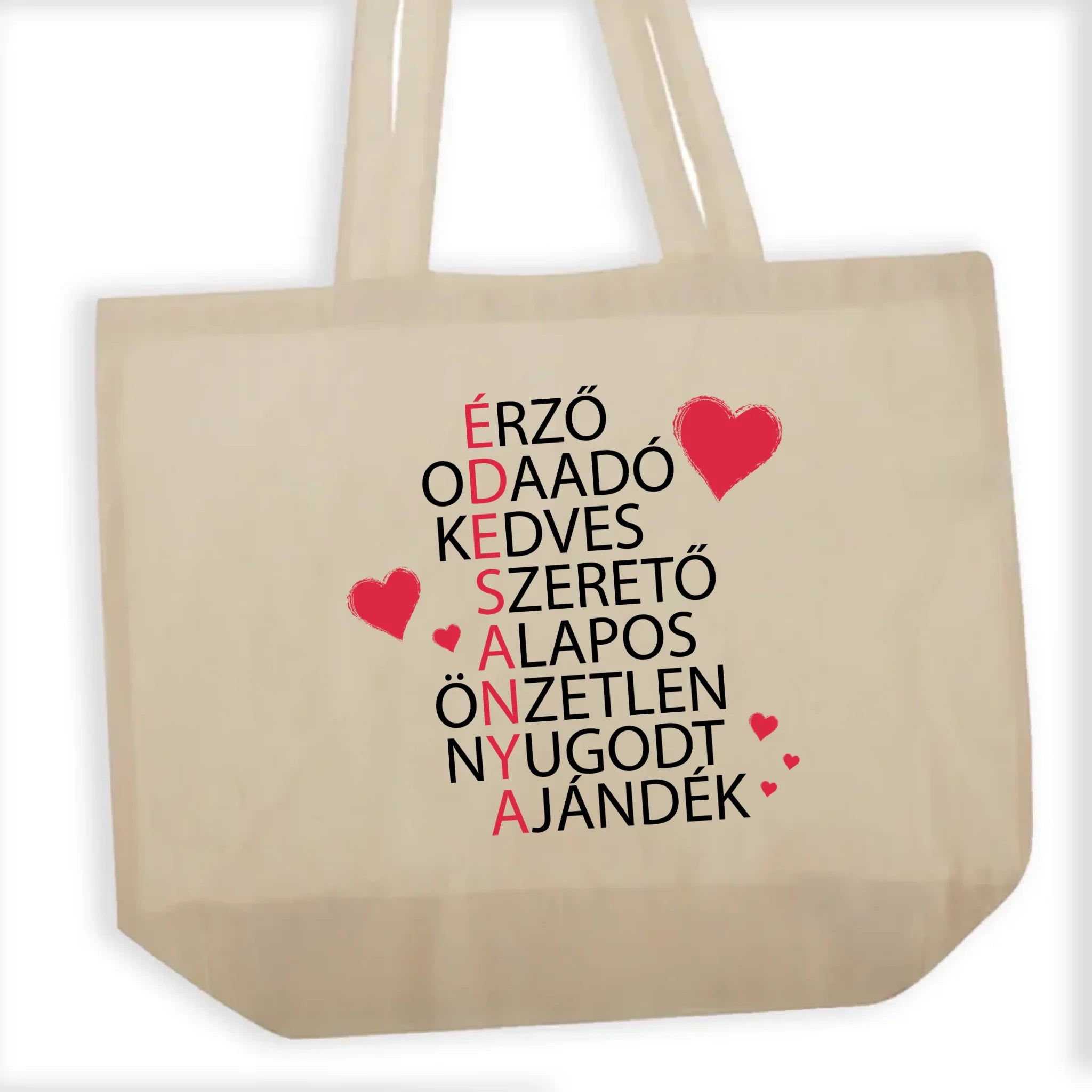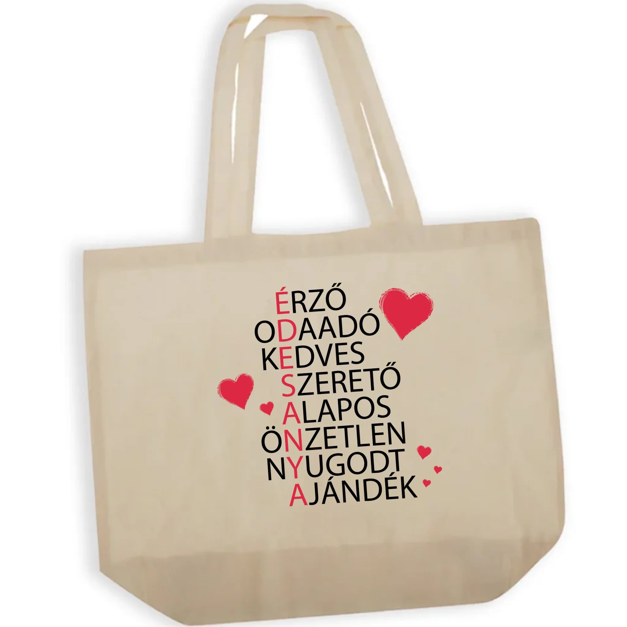 Ez a vászontáska a legjobb módja annak, hogy személyre szabd a mindennapjaidat, vagy örömet szerezz családtagjaidnak egy igazán különleges ajándékkal. Legyen szó születésnapról, évfordulóról, anyák napjáról vagy bármilyen más alkalomról, egy ilyen egyedi táska örök emlék marad!