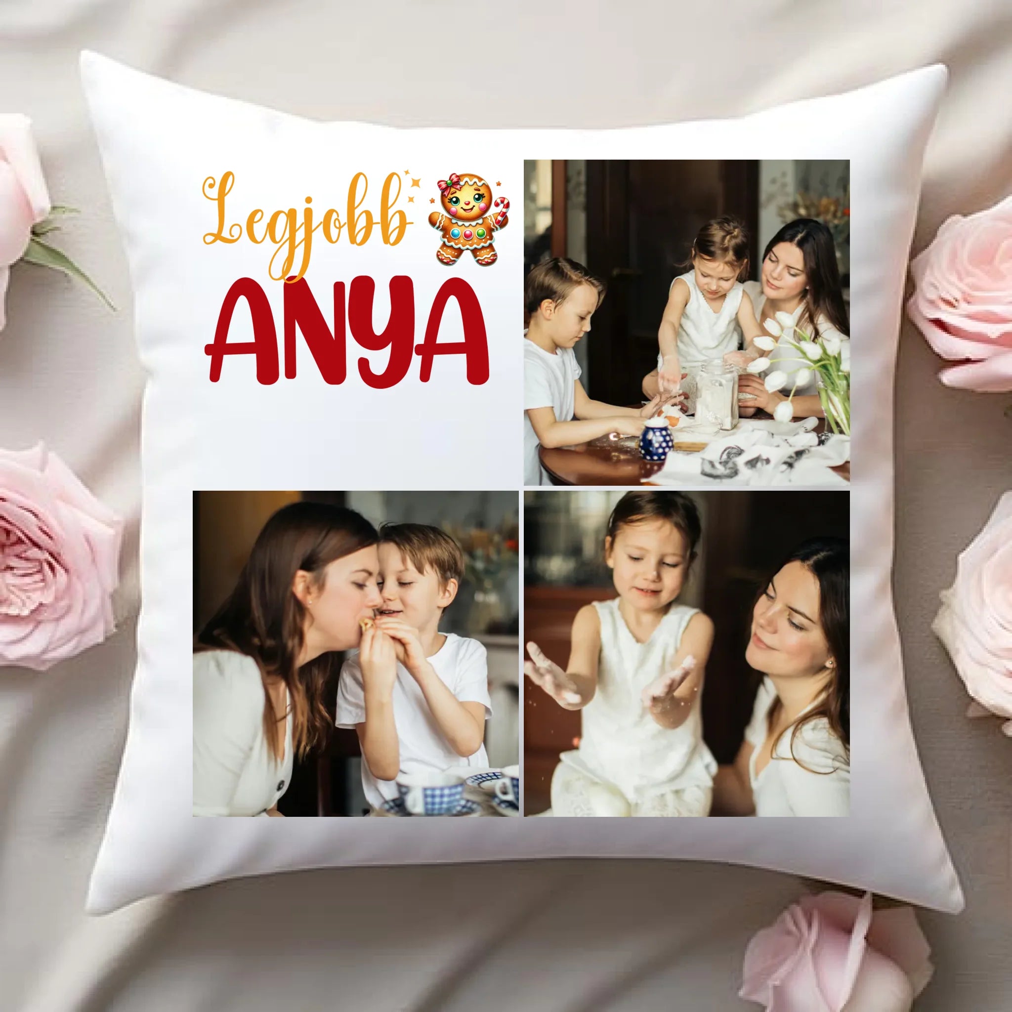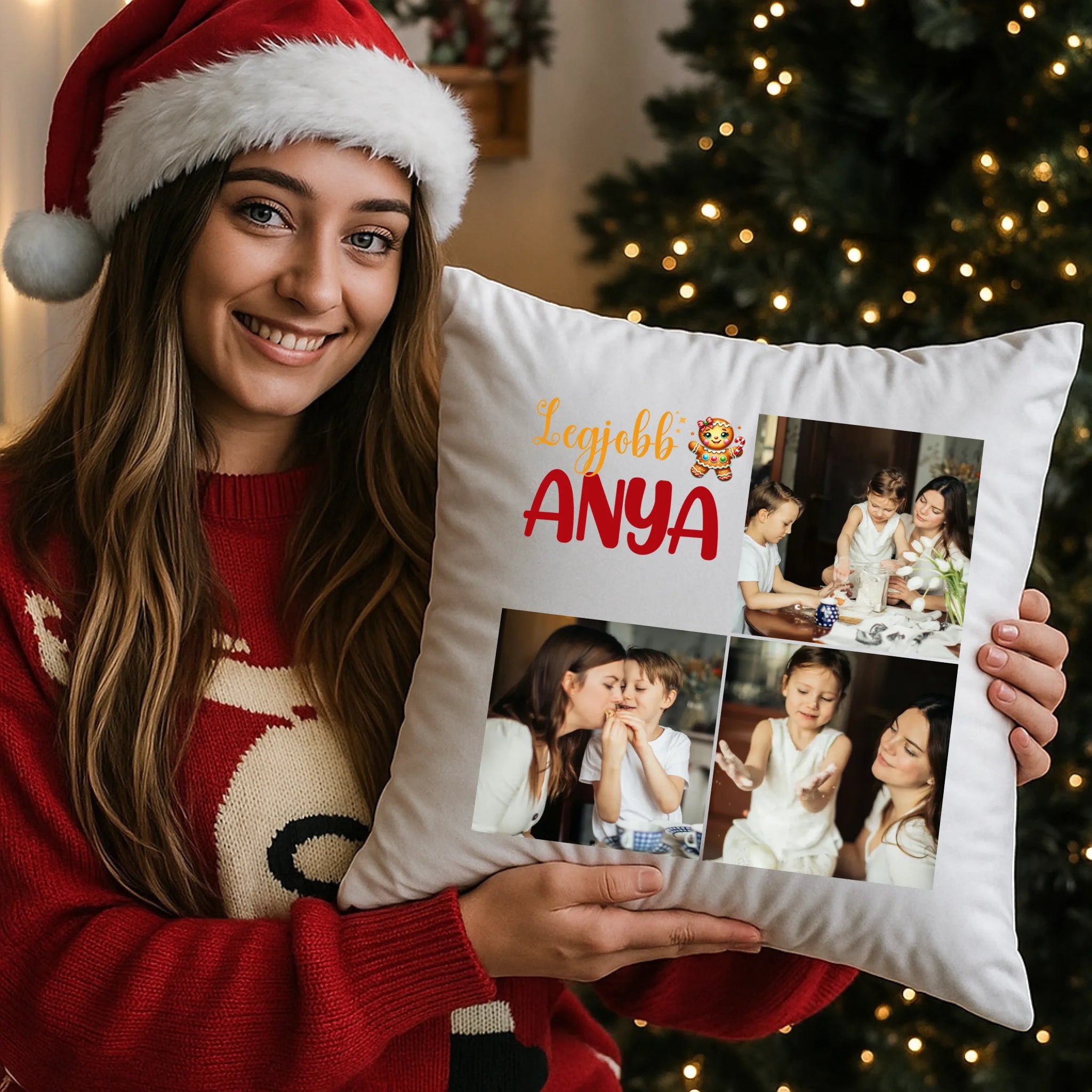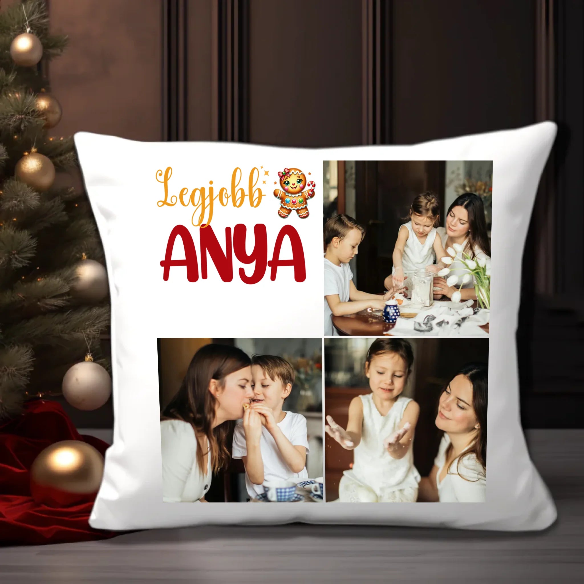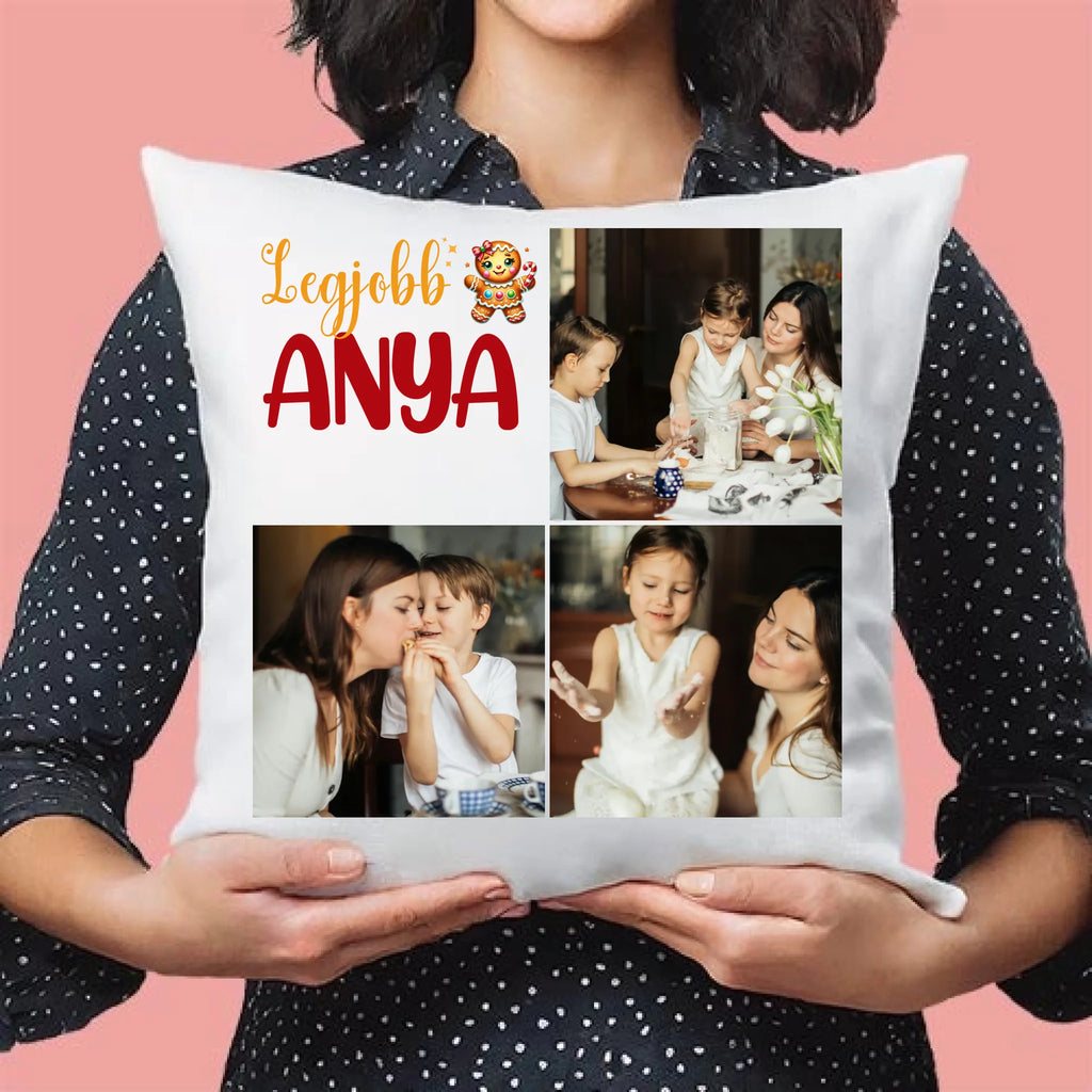 Fényképes karácsonyi párna anyának 3 képpel és választható felirattal