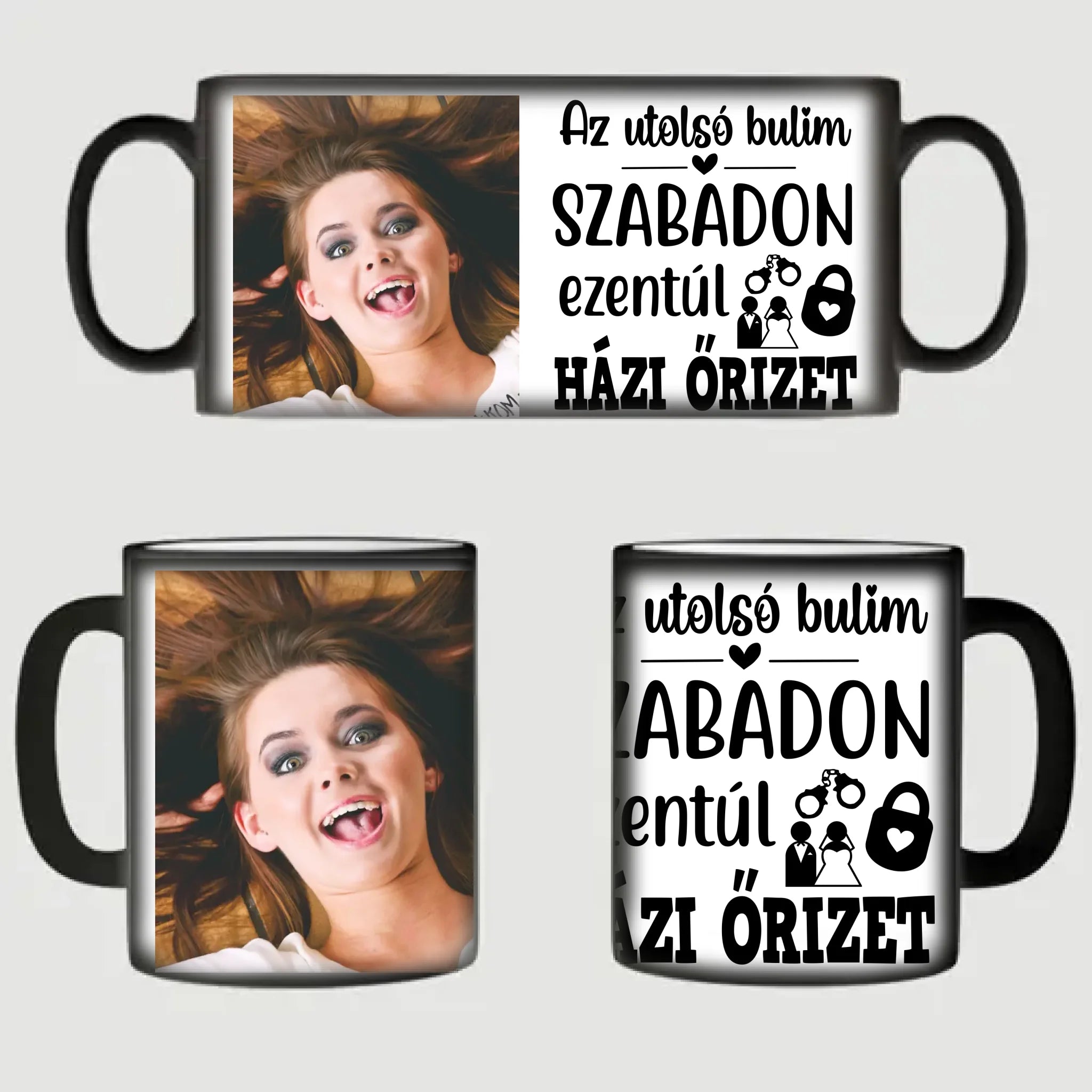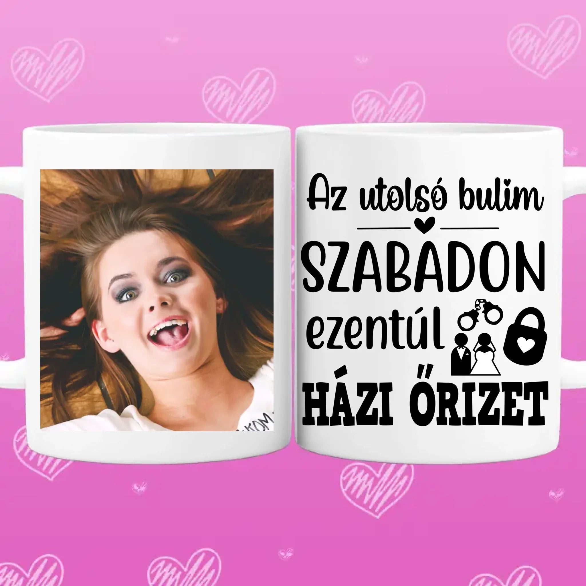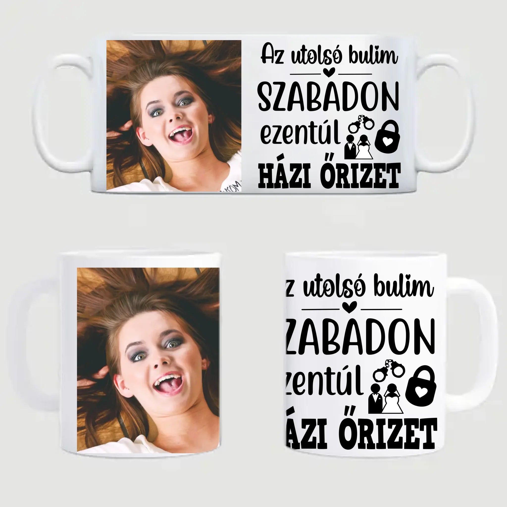 Az utolsó bulim szabadon, ezentúl házi őrizet - fényképes bögre lánybúcsúra