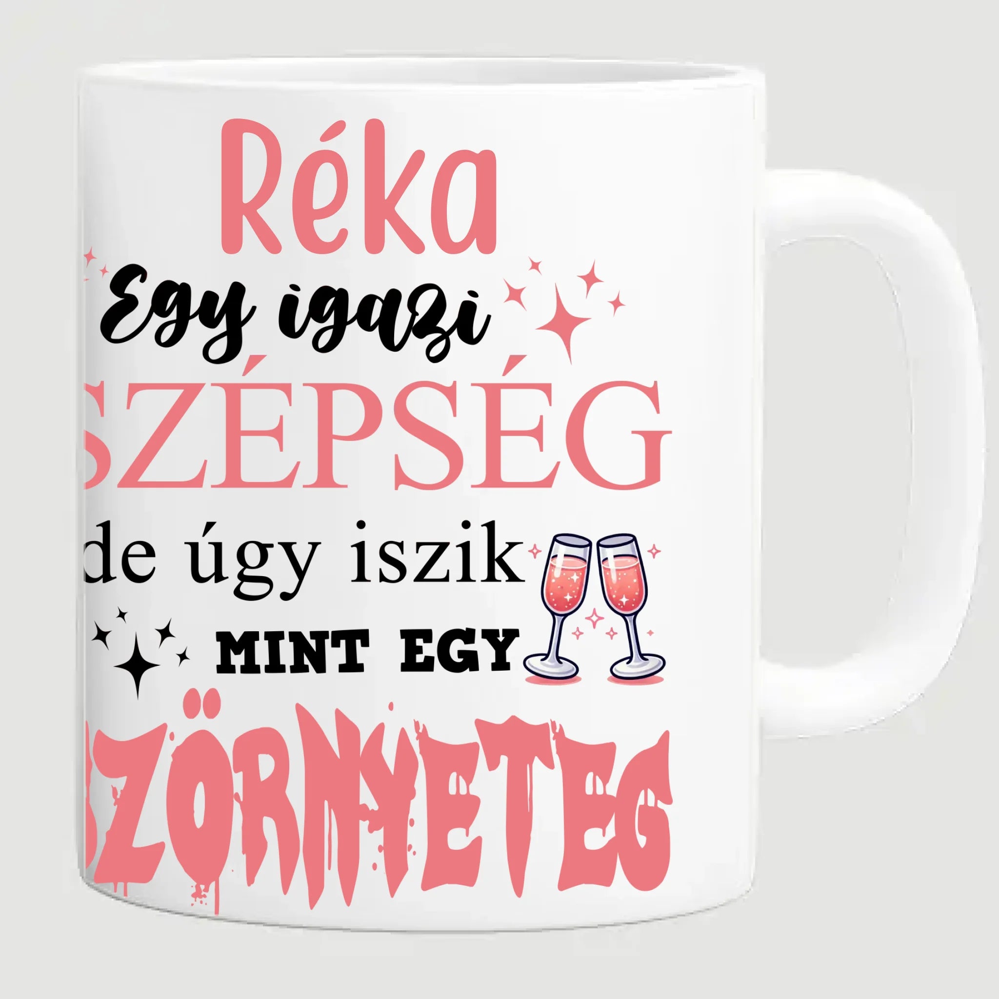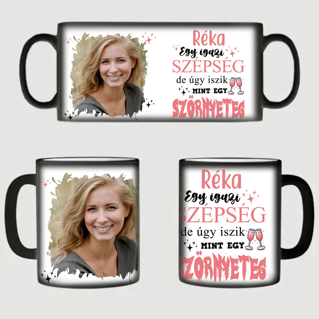 Egy igazi szépség, de úgy iszik, mint egy szörnyeteg - bögre lánybúcsúra képpel
