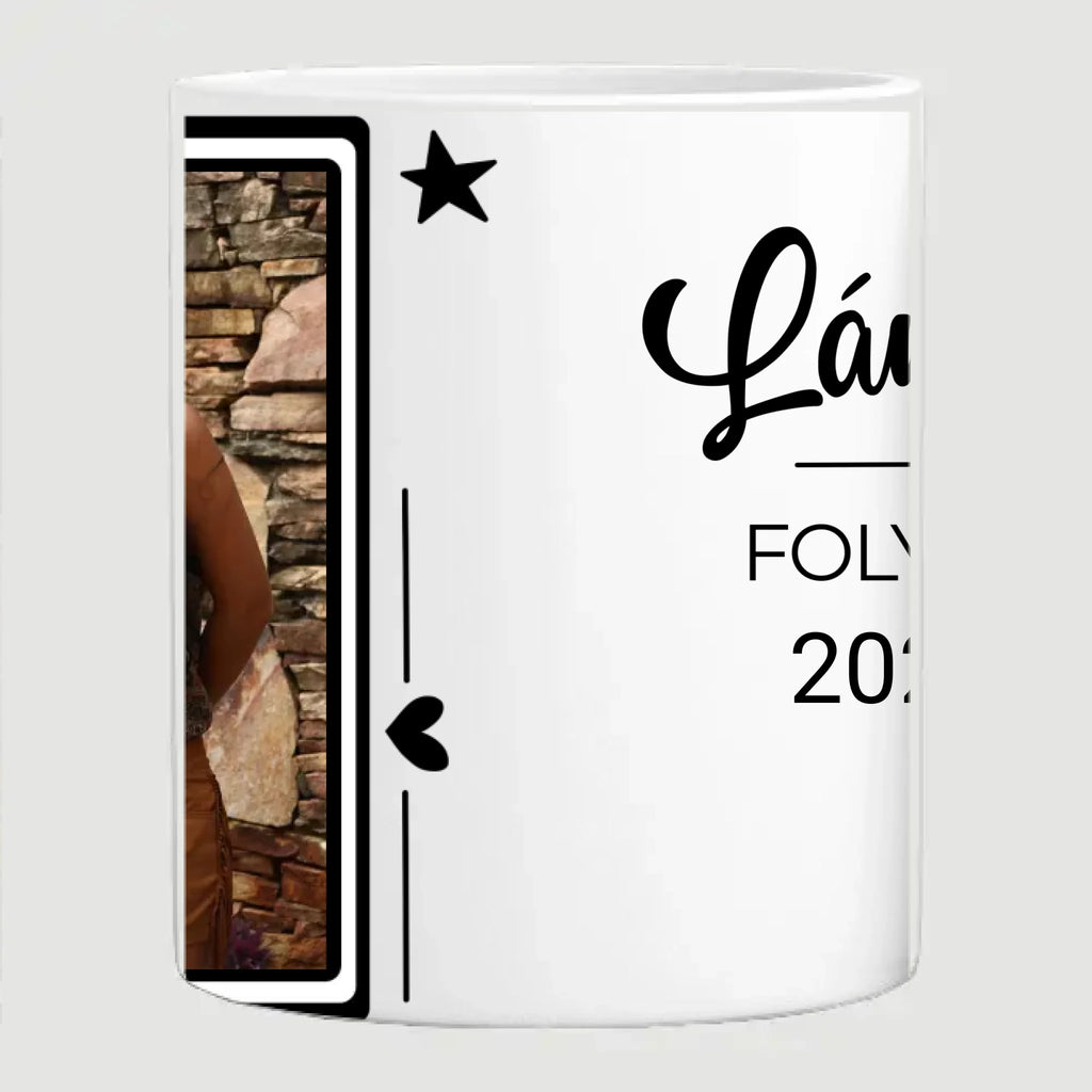 Egyedi fényképes bögre a saját fotóddal. Az egyedi fényképes bögre remek ajándék lánybúcsúra Az egyedi bögre nyomtatása nagyon magas hőfokon történik, ezáltal az anyag szerkezetébe sütjük bele, így a nyomat rendkívül tartós lesz és nem kopik, nem fakul ki. A fényképes bögréhez bármilyen fotót választhatsz, illetve feliratot is adhatsz hozzá.