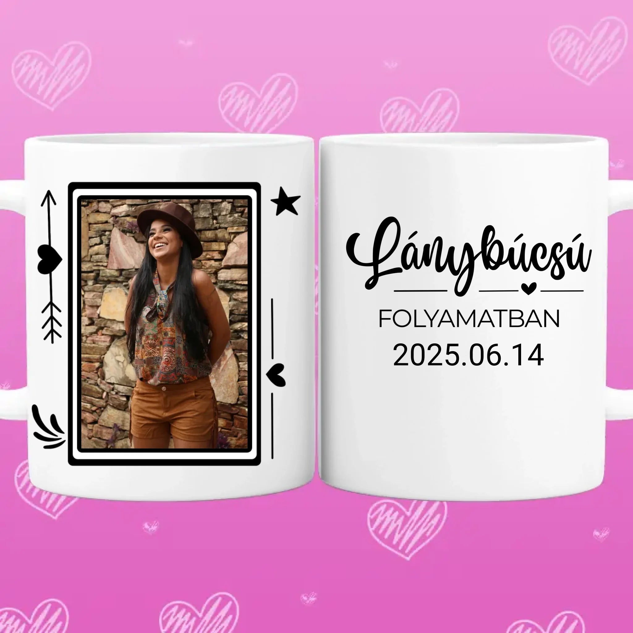 Lánybúcsú folyamatban - egyedi fényképes bögre lánybúcsúra