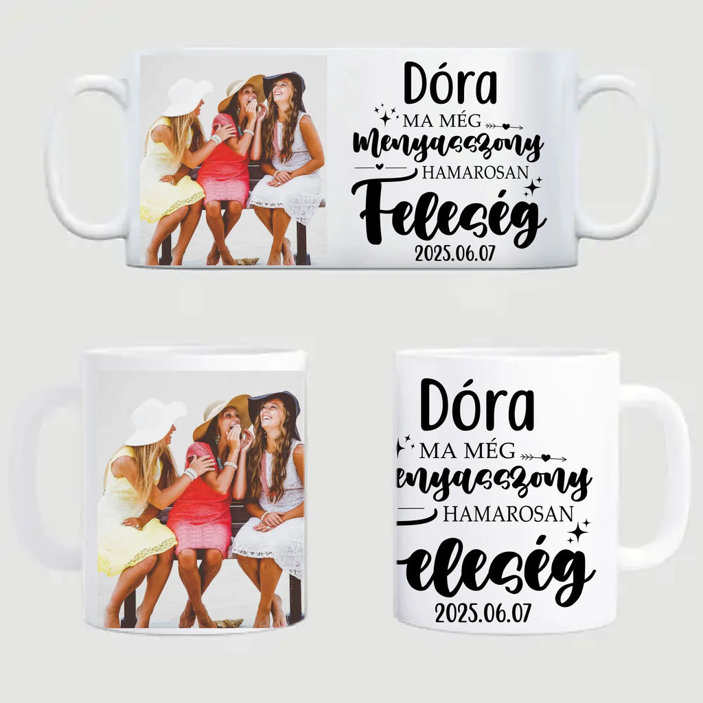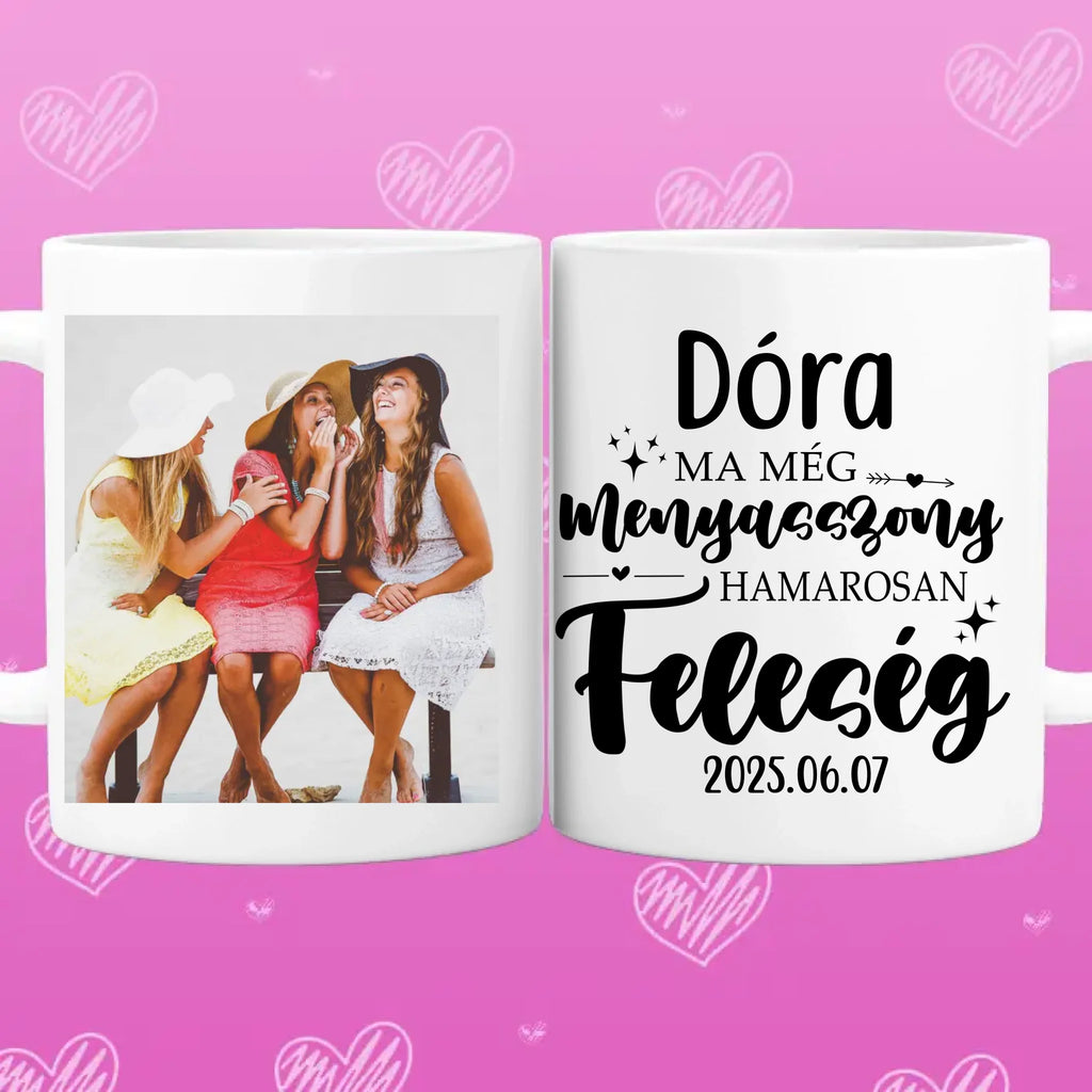 Lánybúcsús bögrék: Lepd meg a menyasszonyt és a vendégeket egy szuper egyedi bögrével! Tökéletes ajándék a reggeli kávéhoz, amit emlékbe mindenki megőrizhet.
