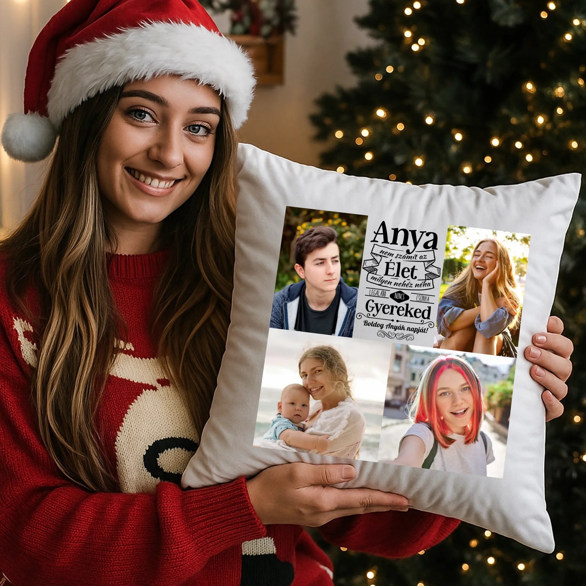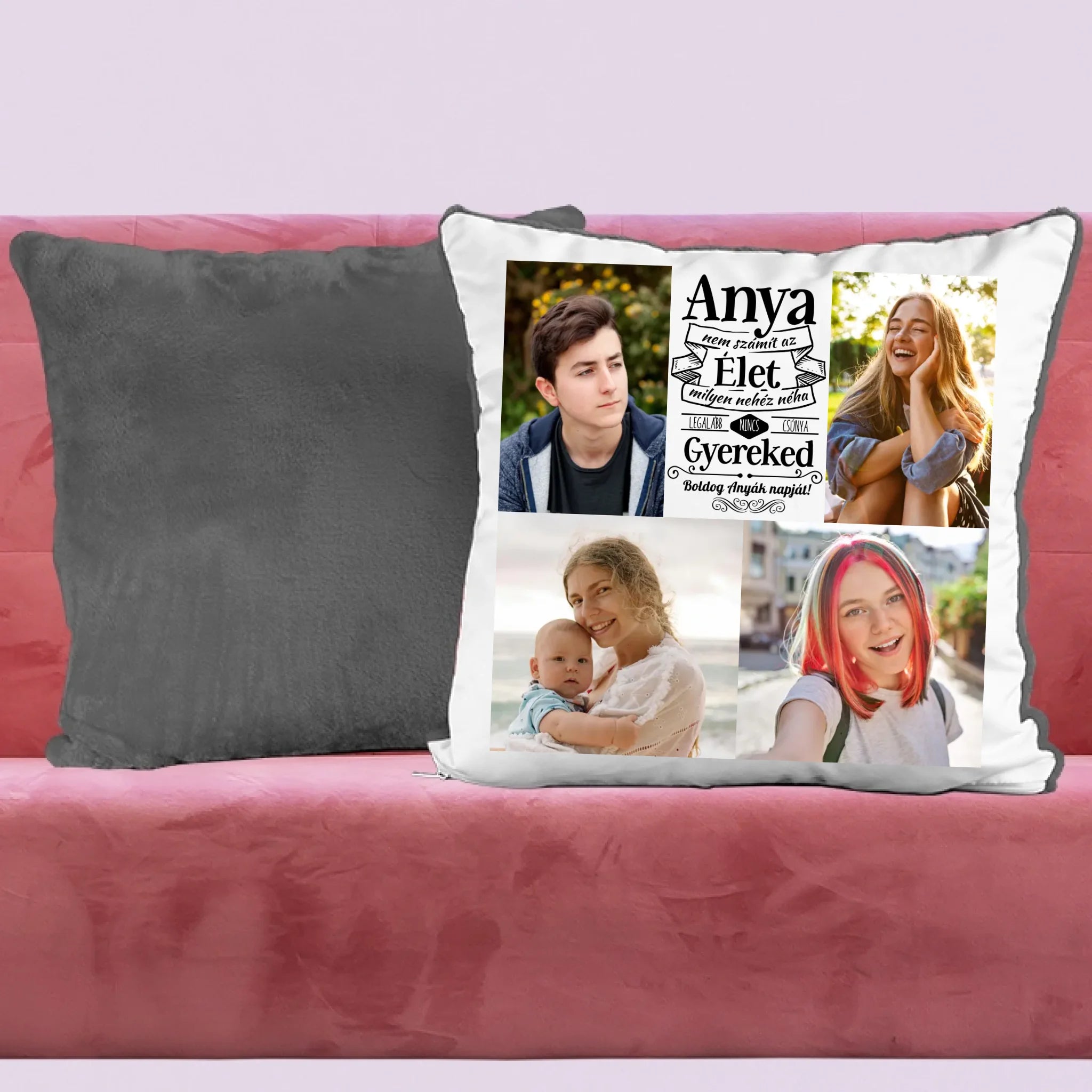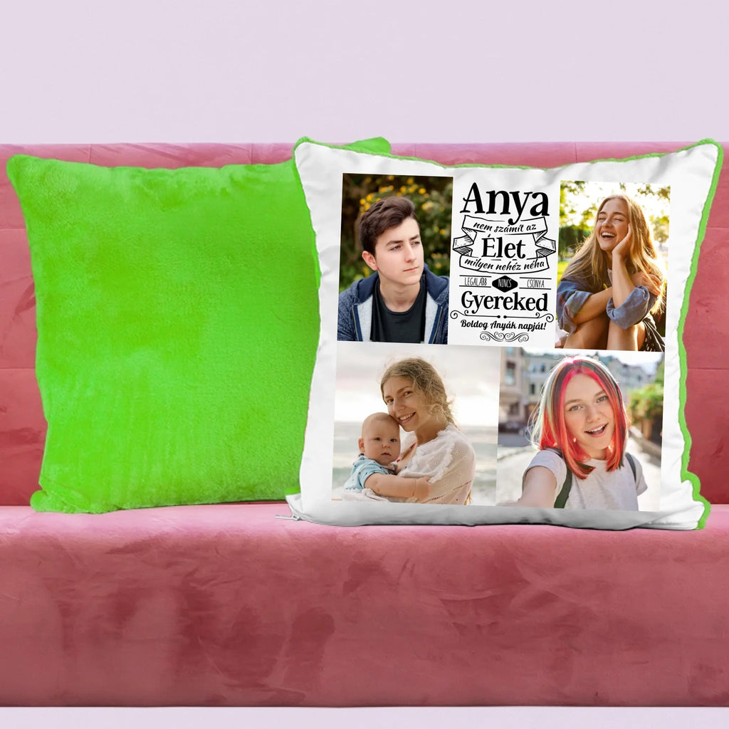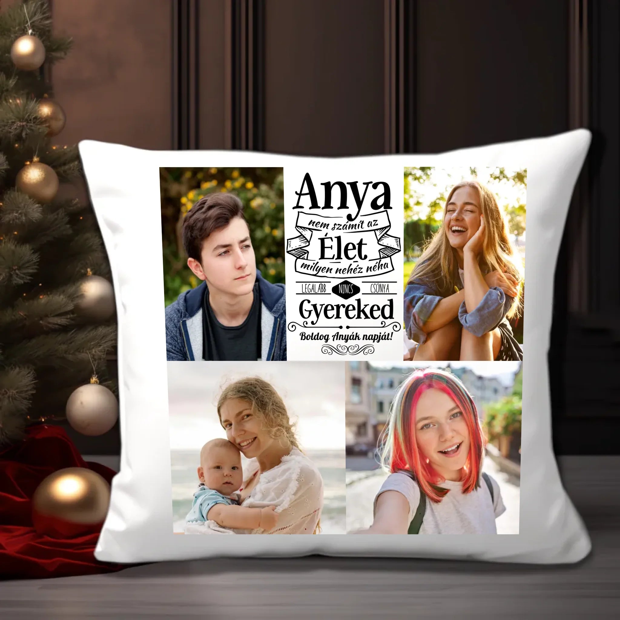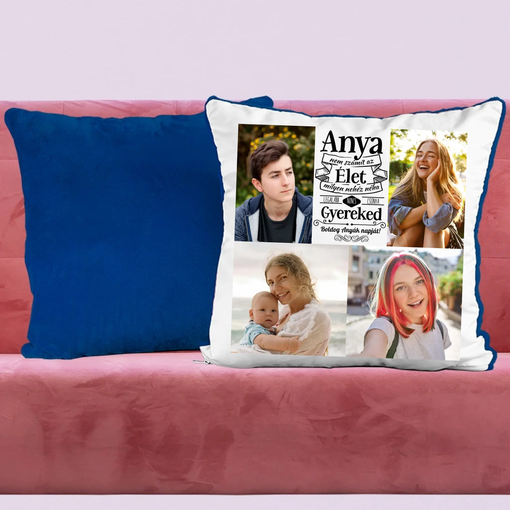 Egyedi fényképes párna, melyre 4 saját képet is kérhetsz. A vicces felirat garantálja, hogy mosolyt csalj édesanyád arcára, legyen szó anyák napjáról, születésnapról, névnapról vagy karácsonyról.