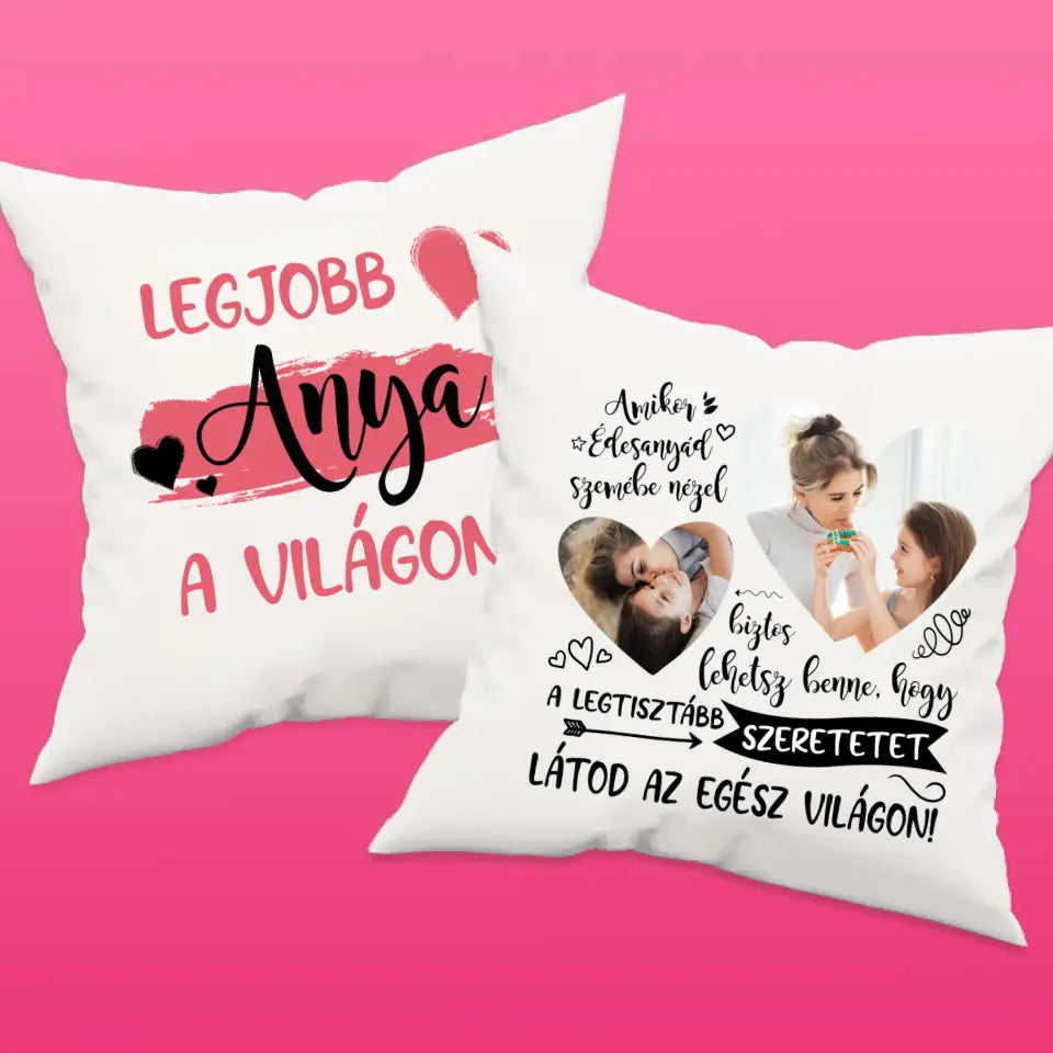 Egyedi párna anyák napjára, melyre saját képet is kérhetsz. A kedves felirat garantálja, hogy mosolyt csalj édesanyád arcára, legyen szó anyák napjáról, születésnapról, névnapról vagy karácsonyról.