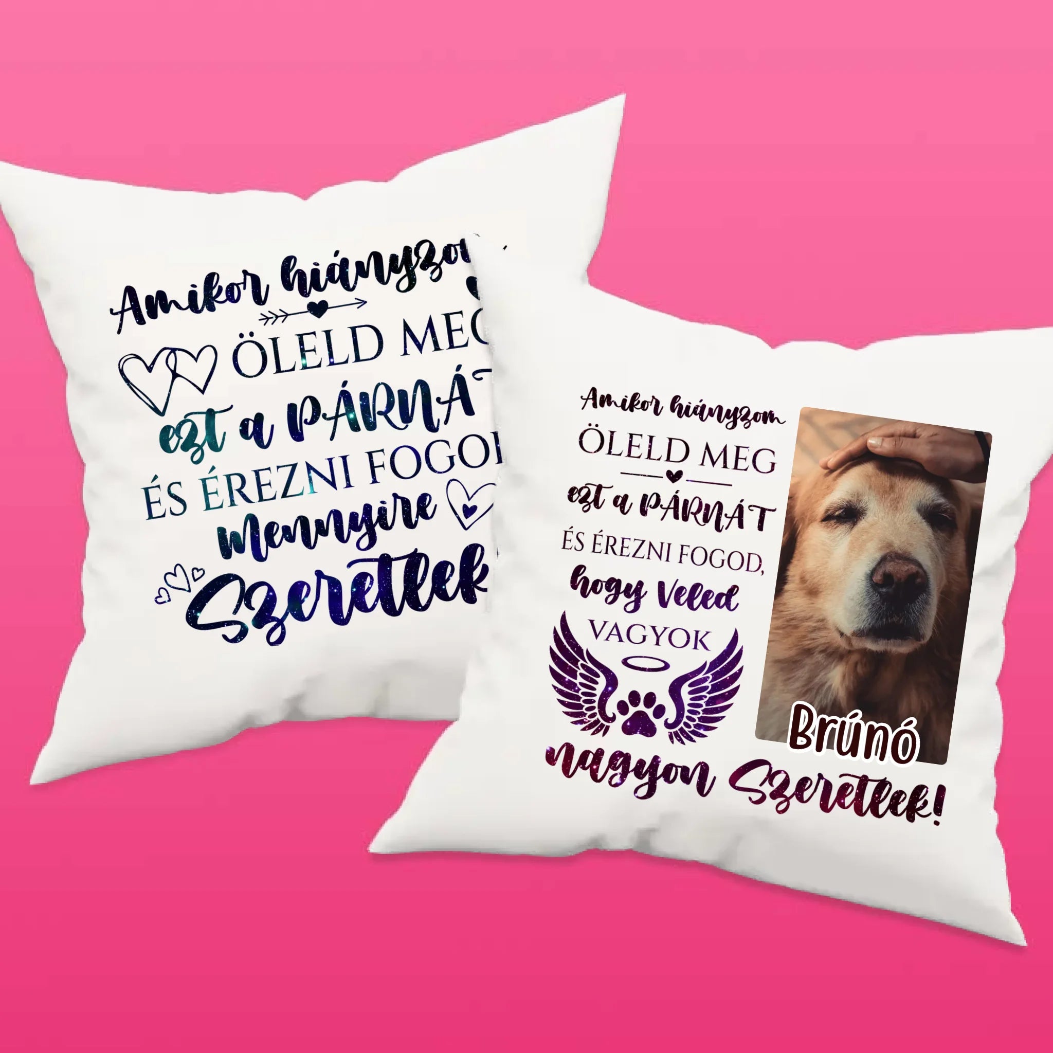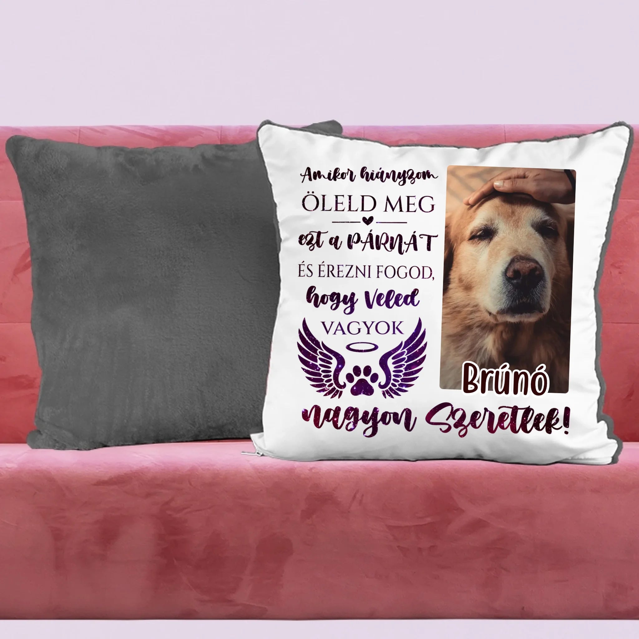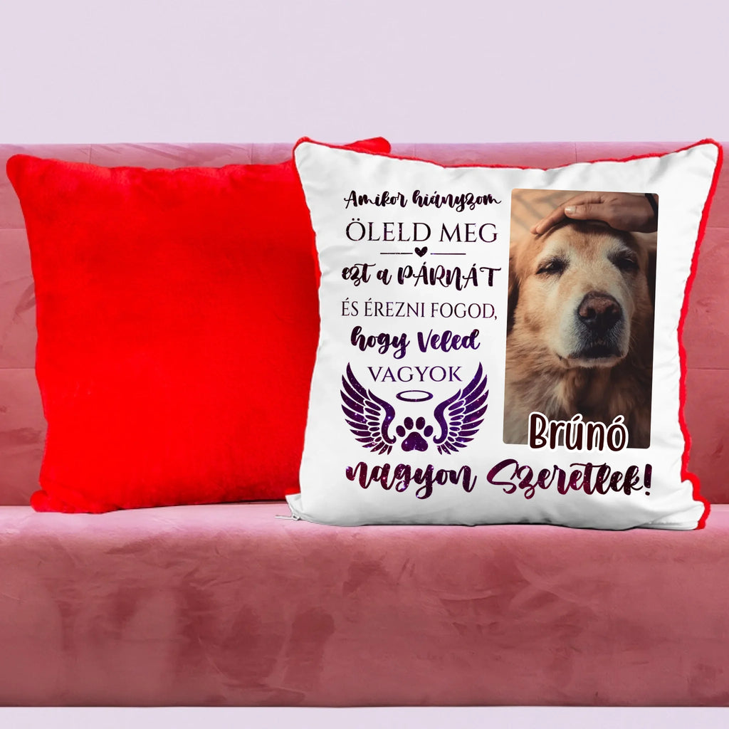 Ez az egyedi fényképes emlékőrző ölelő párna gazdiknak segít megőrizni a legszebb pillanatokat kutyádról vagy cicádról. Töltsd fel kedvenced képét, és mi szeretettel elkészítjük a párnát, hogy nap mint nap hozzábújhass.