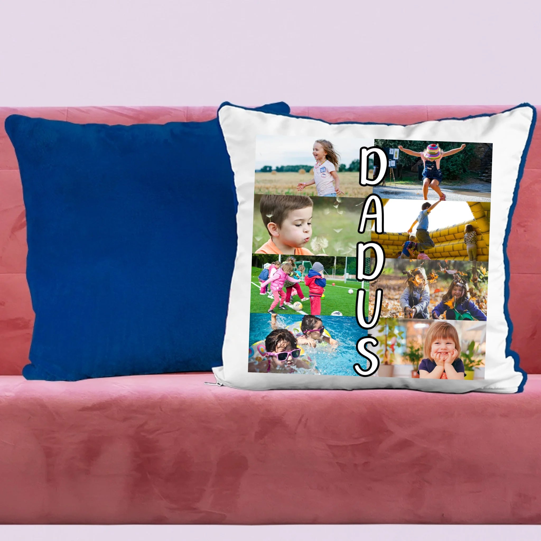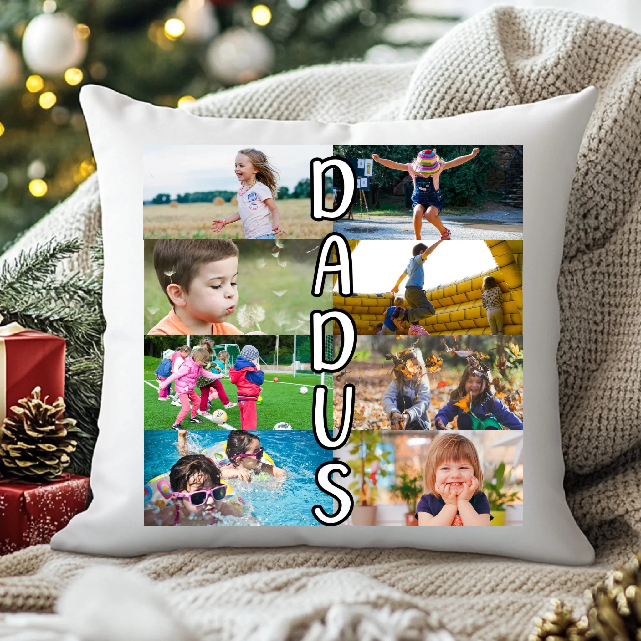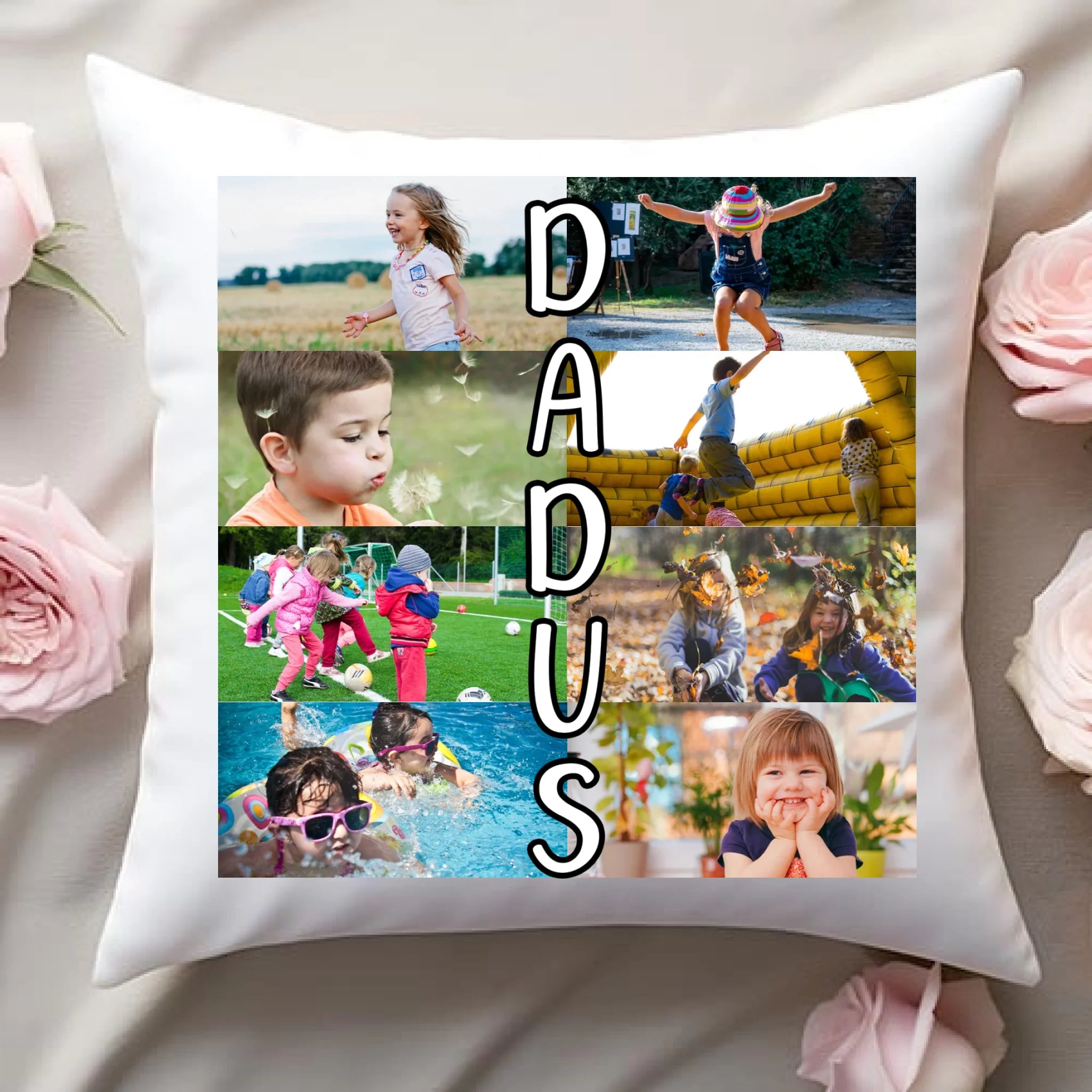 Egyedi fényképes párna 8 képpel dadusnak, amire a kedvenc közös képeitek töltheted fel, így egy igazán szívhez szóló ajándékot készíthetsz a kedvenc dadusnak.