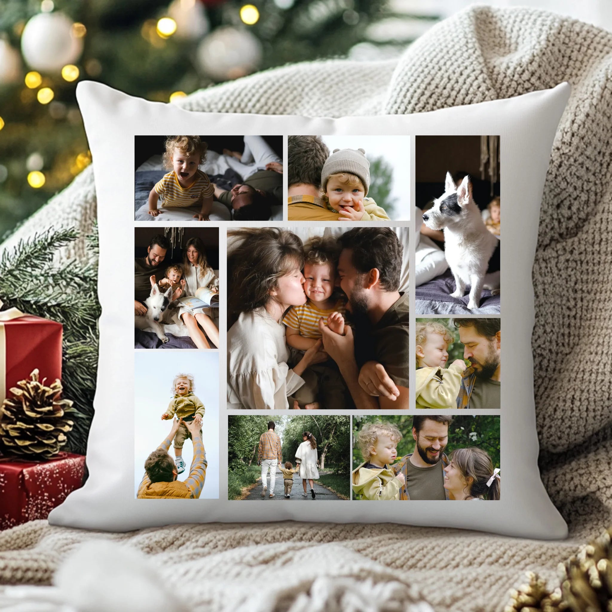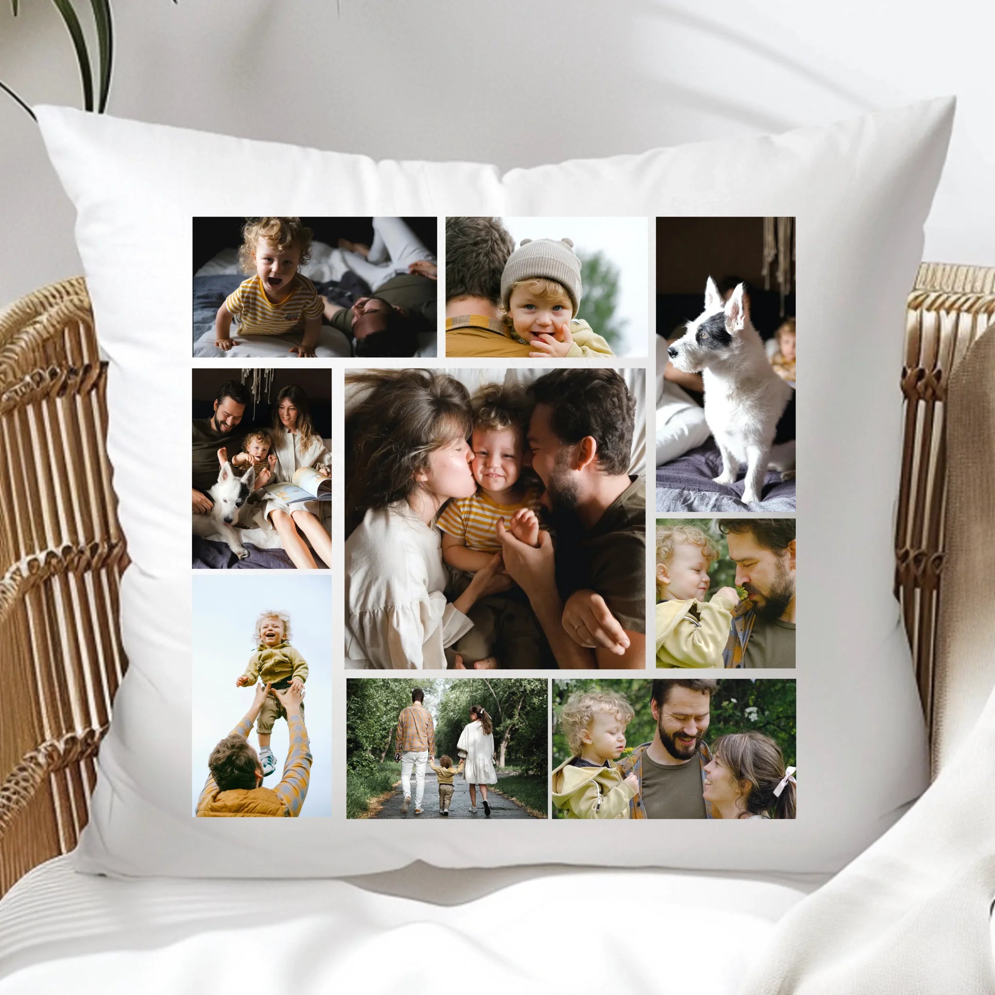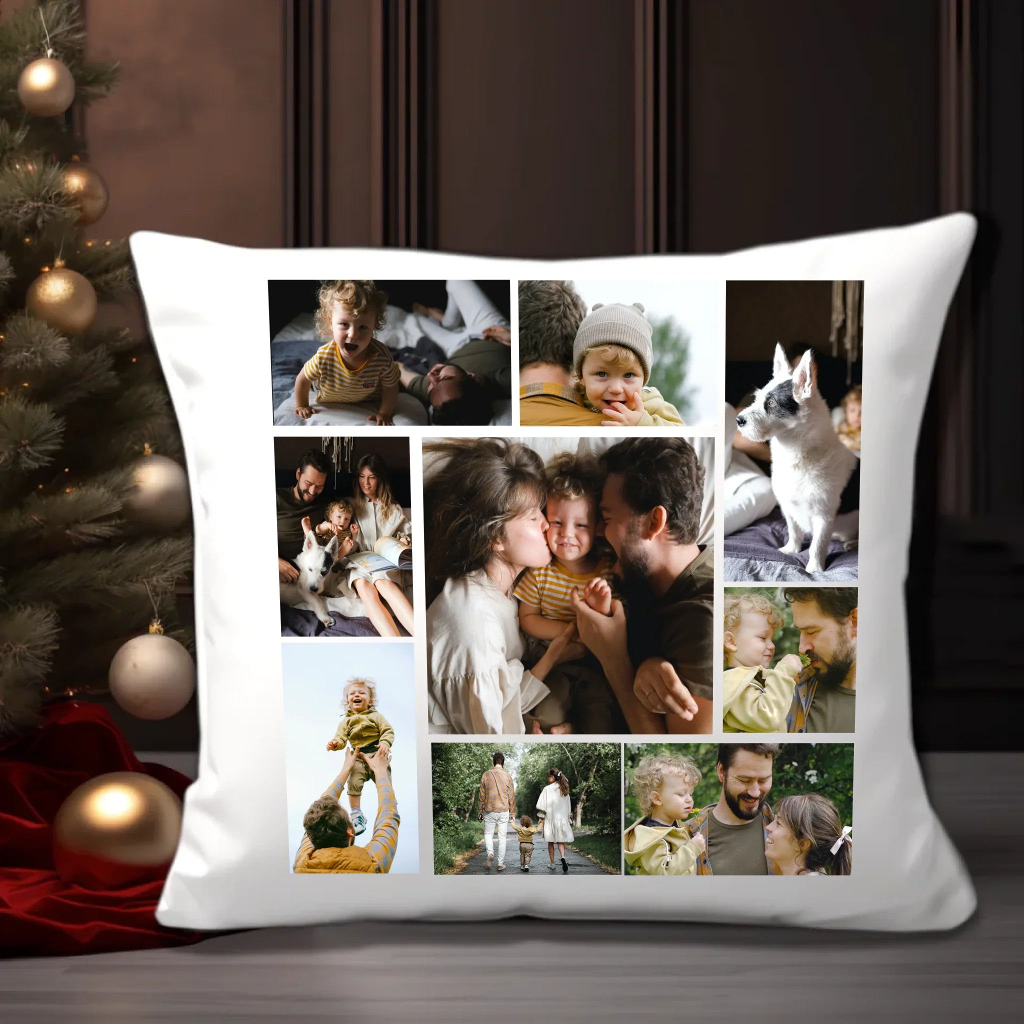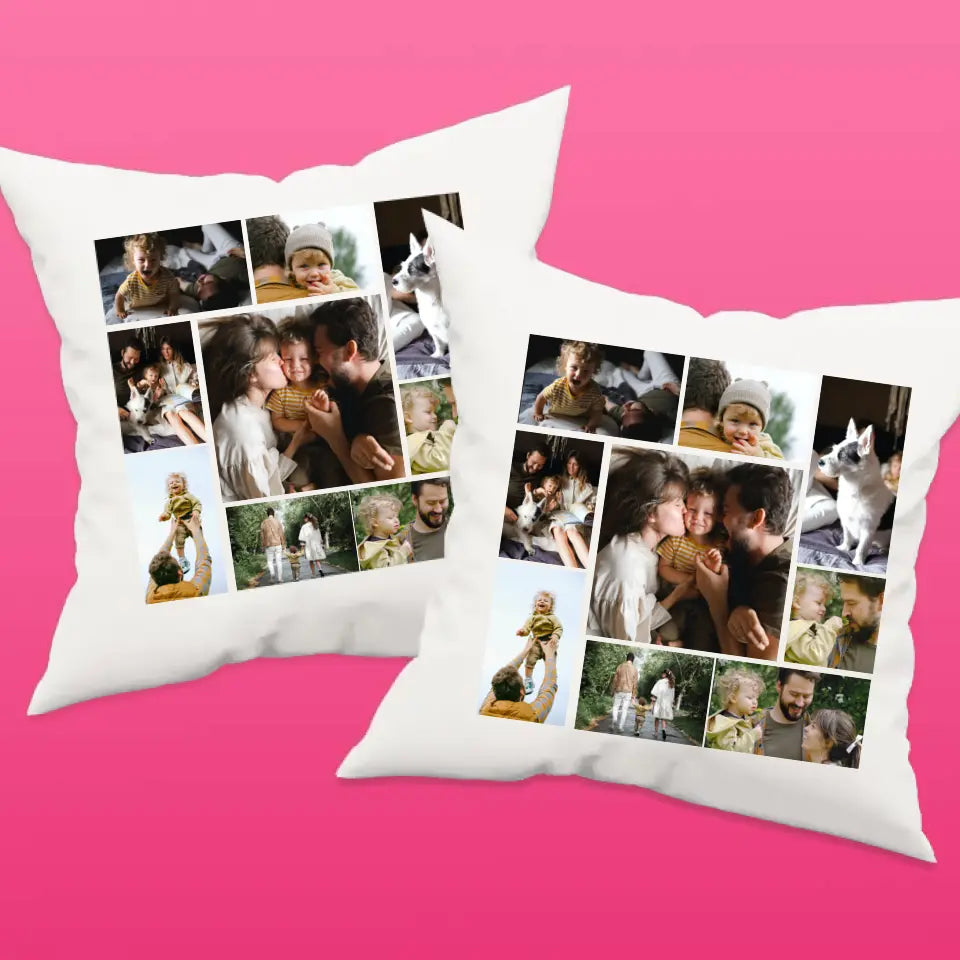 Egyedi fényképes párna 9 saját képpel különleges montázs alakzatba rendezve
