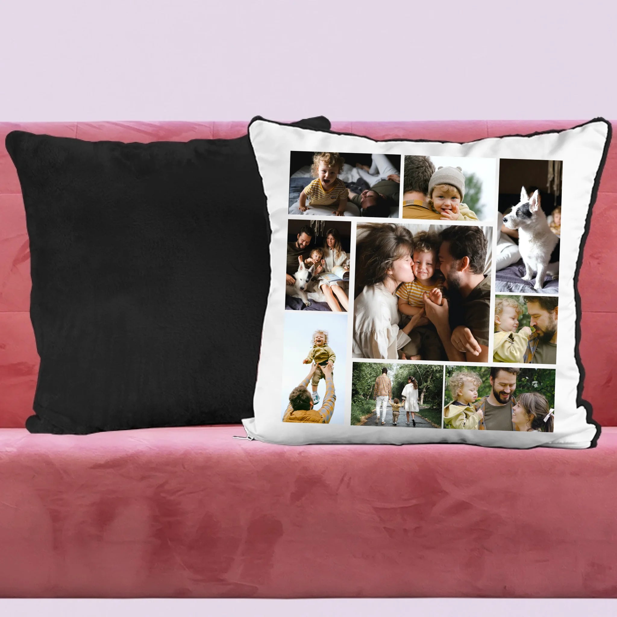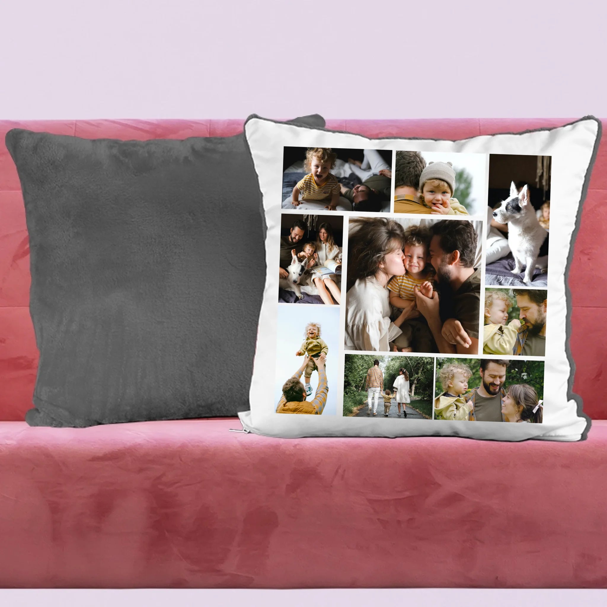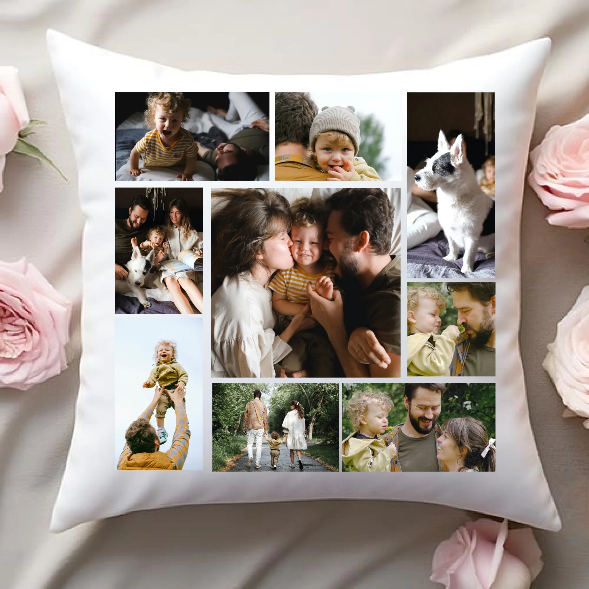 Egyedi fényképes párna 9 saját képpel különleges montázs alakzatba rendezve