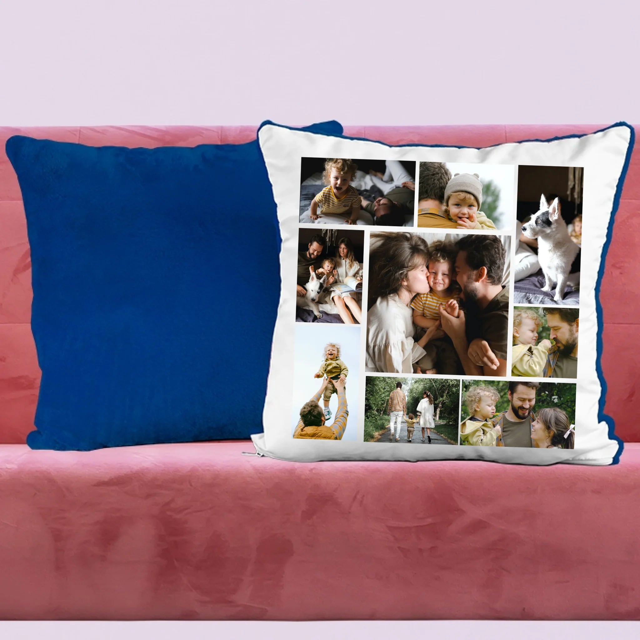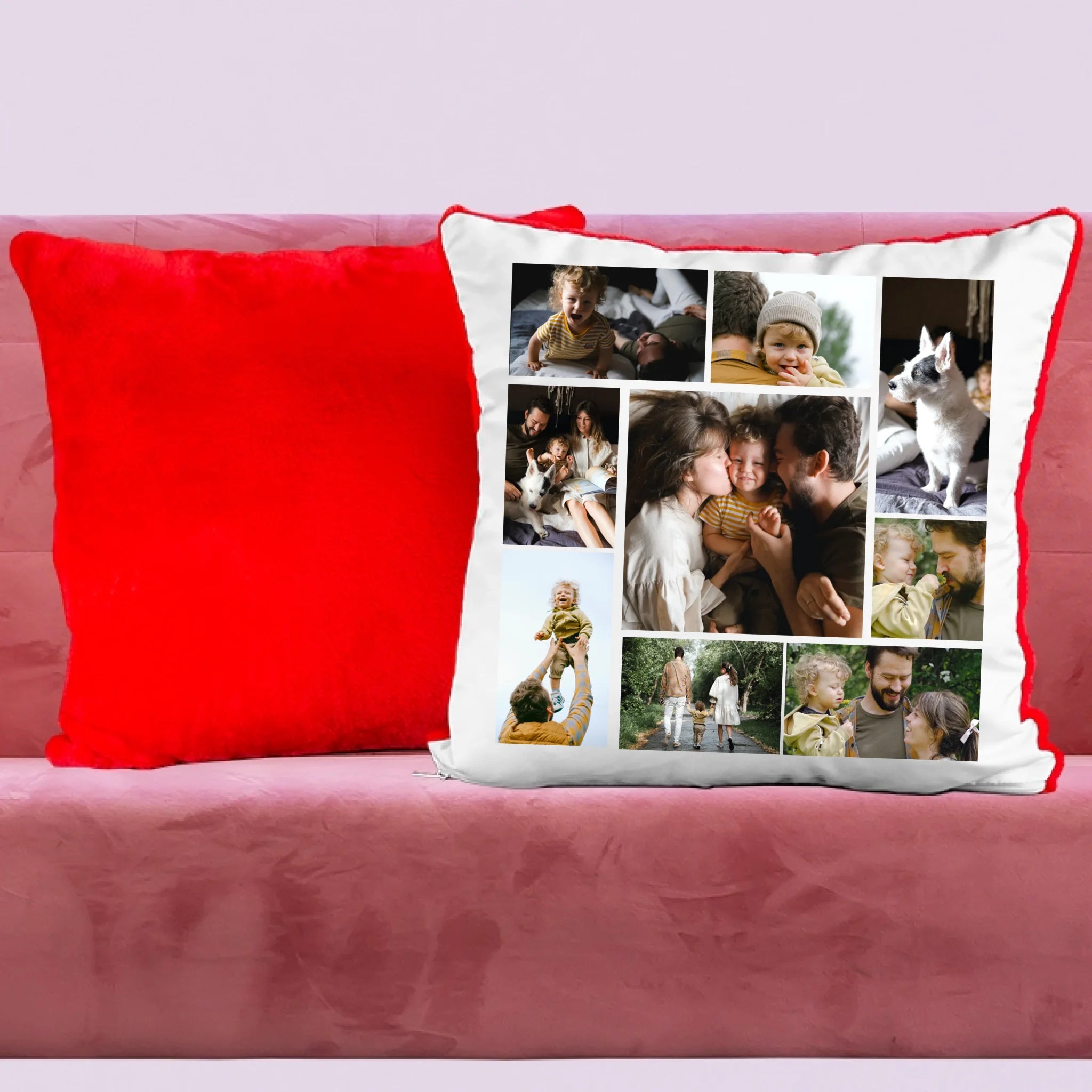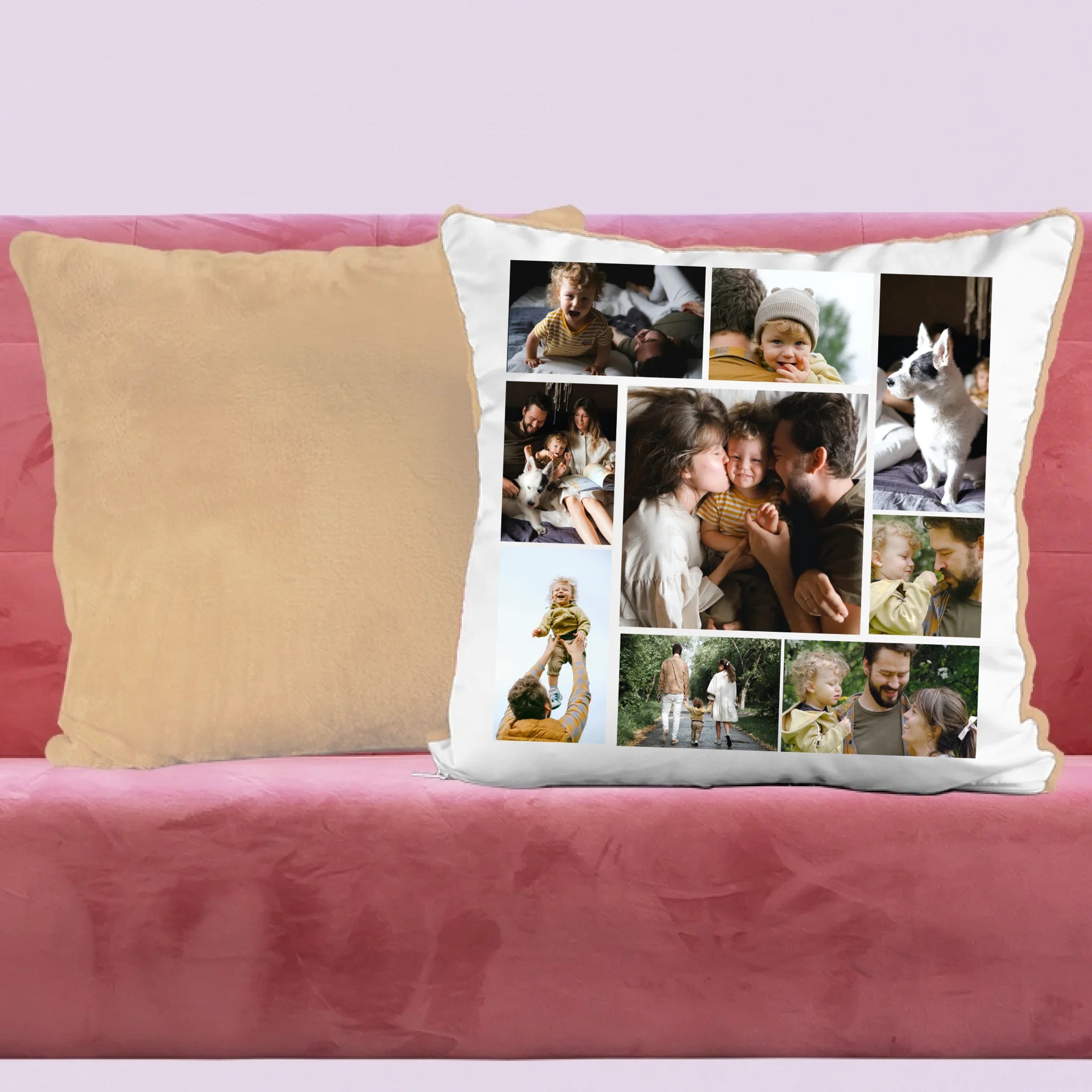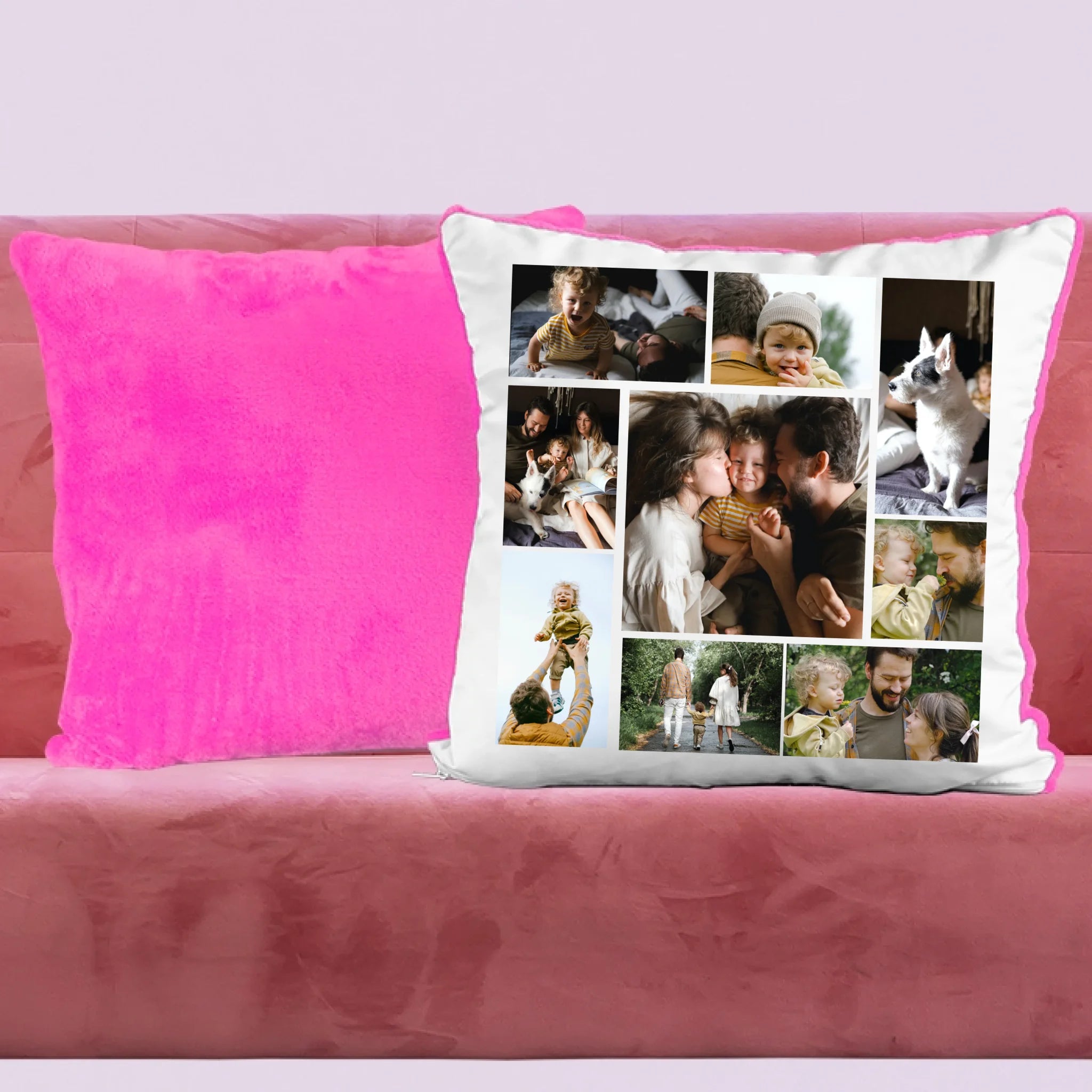 Egyedi fényképes párna 9 saját képpel különleges montázs alakzatba rendezve