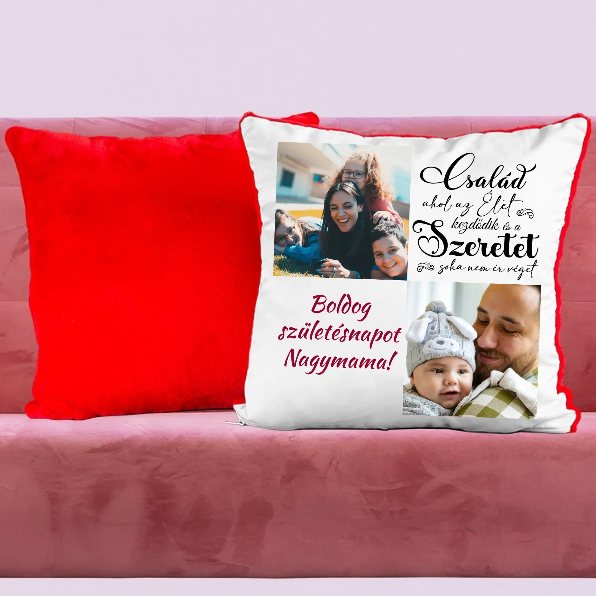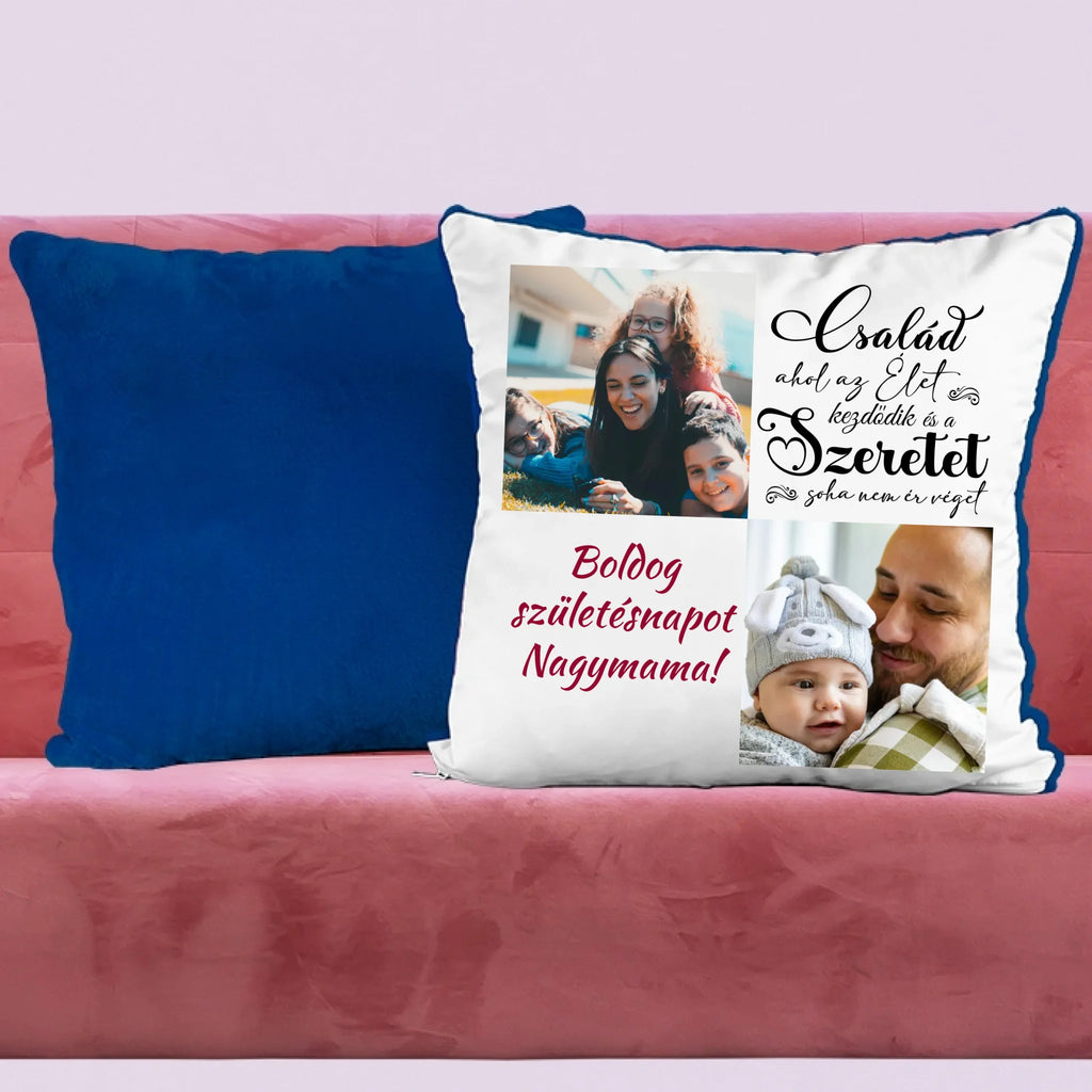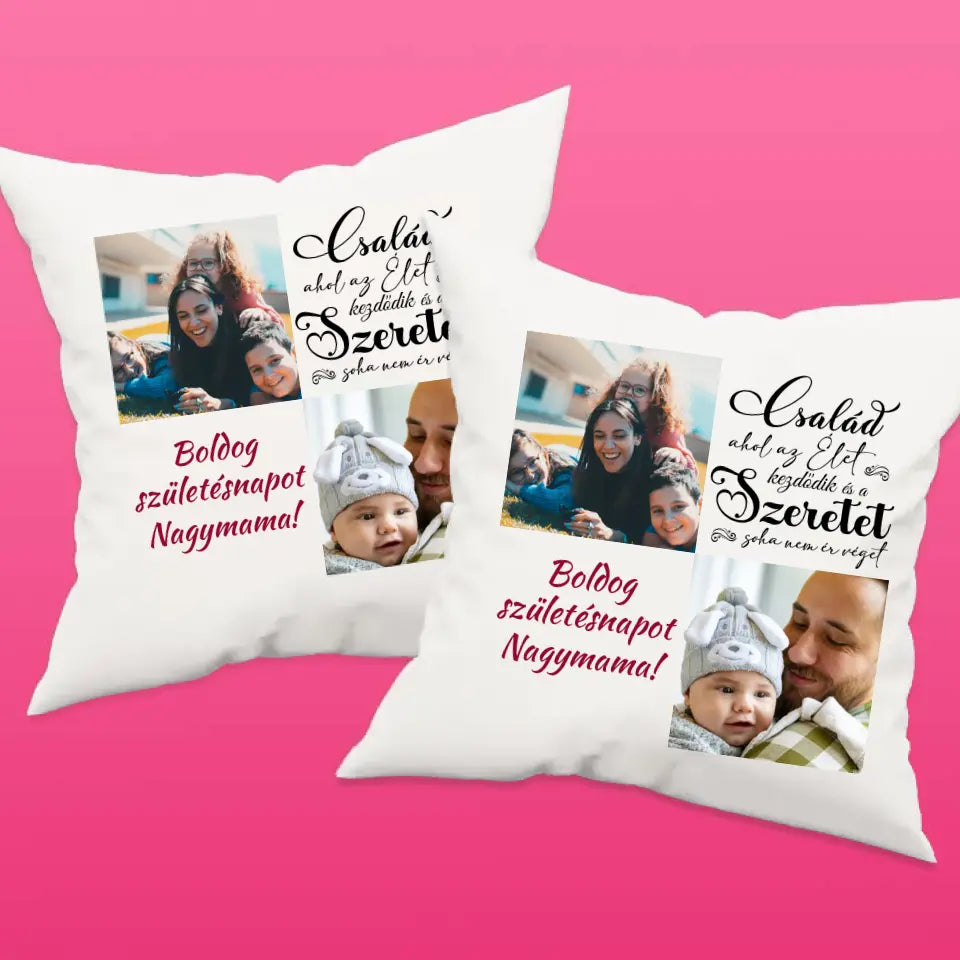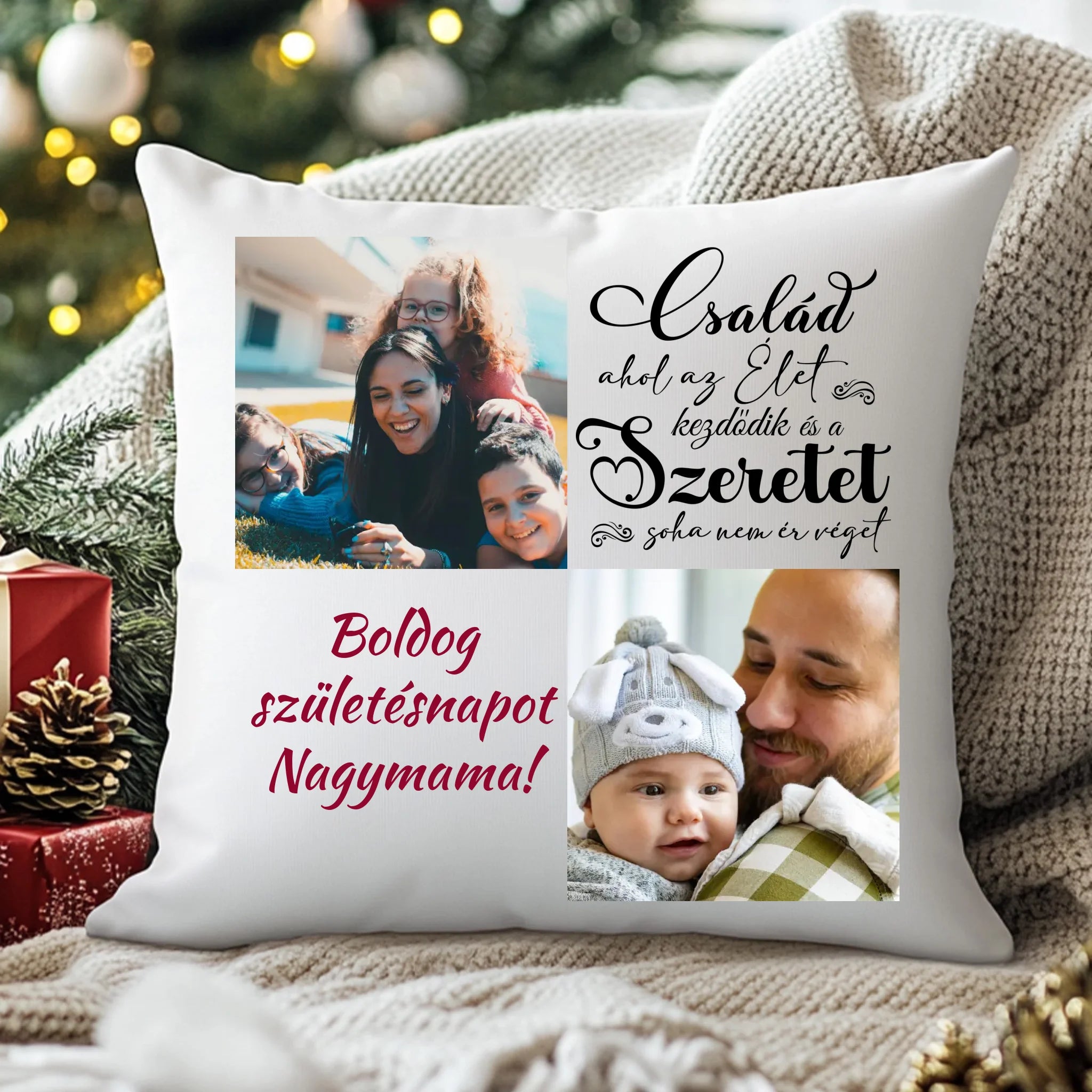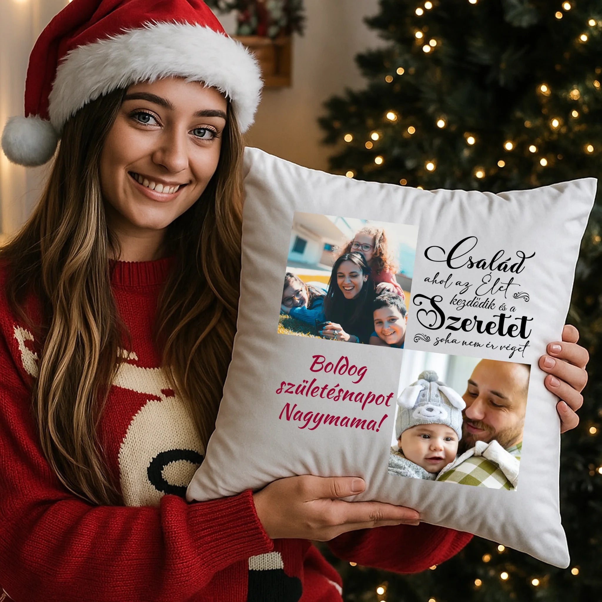Egyedi fényképes párna 2 saját fotóddal, egyedi szöveggel