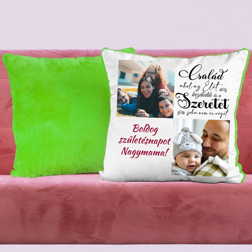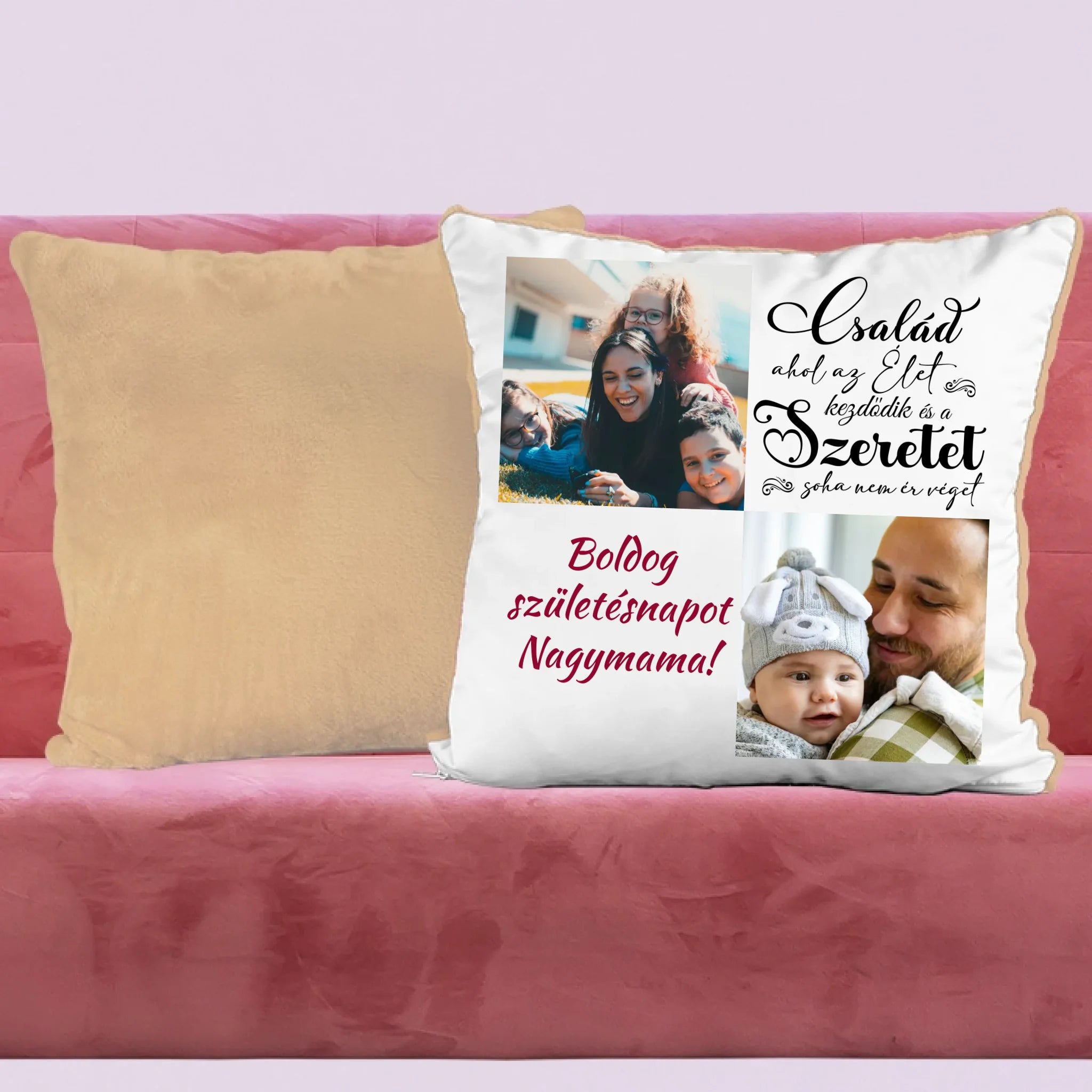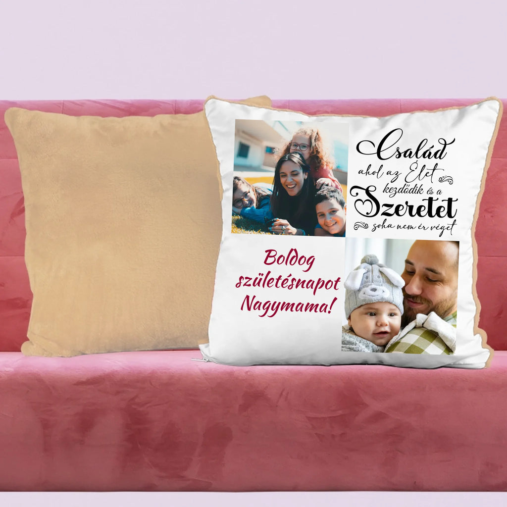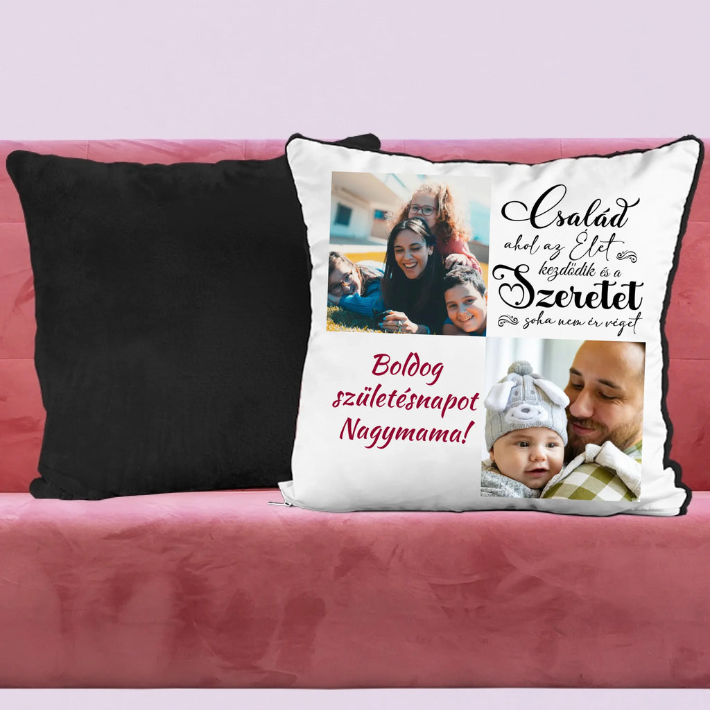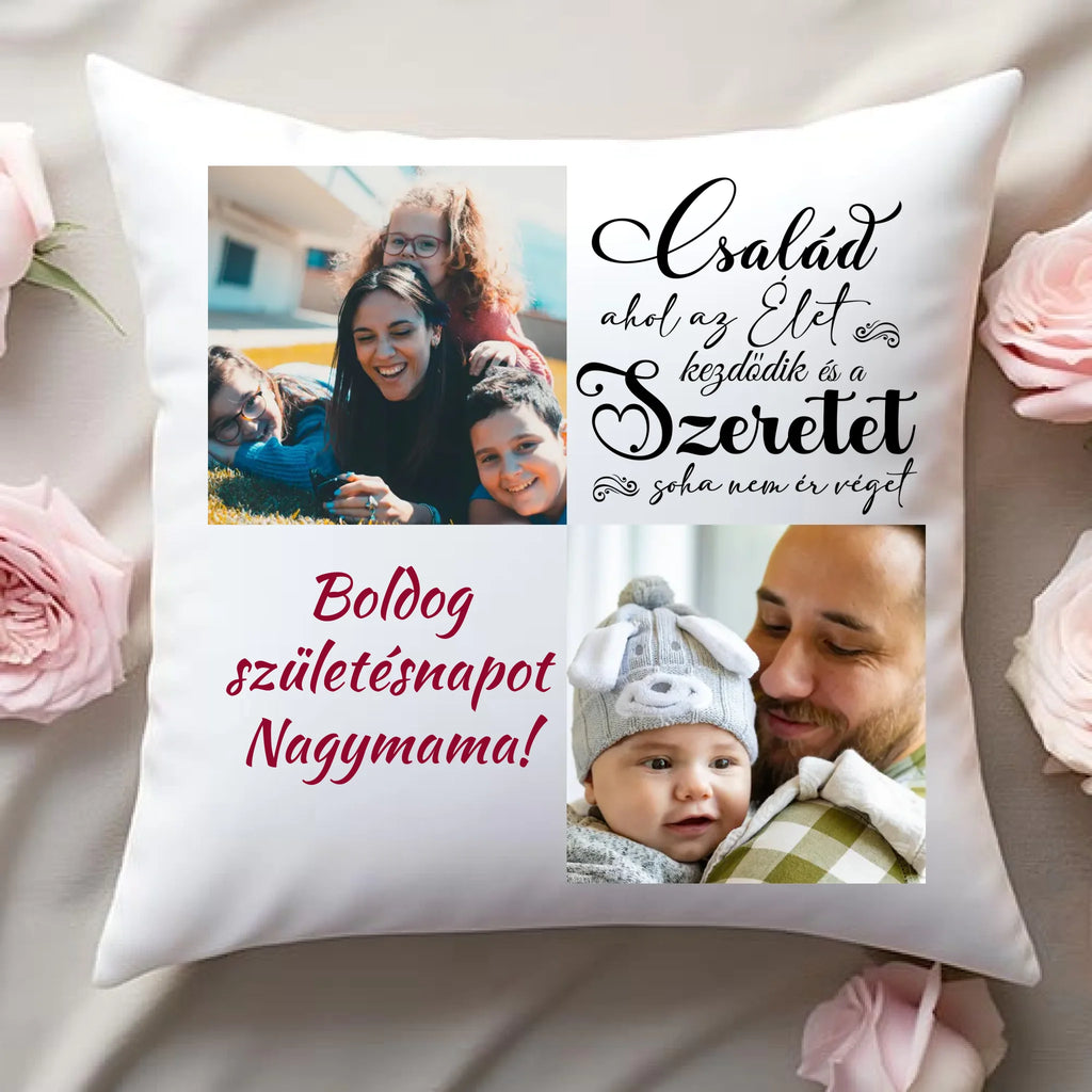 Egyedi fényképes párna 2 saját fotóddal, egyedi szöveggel