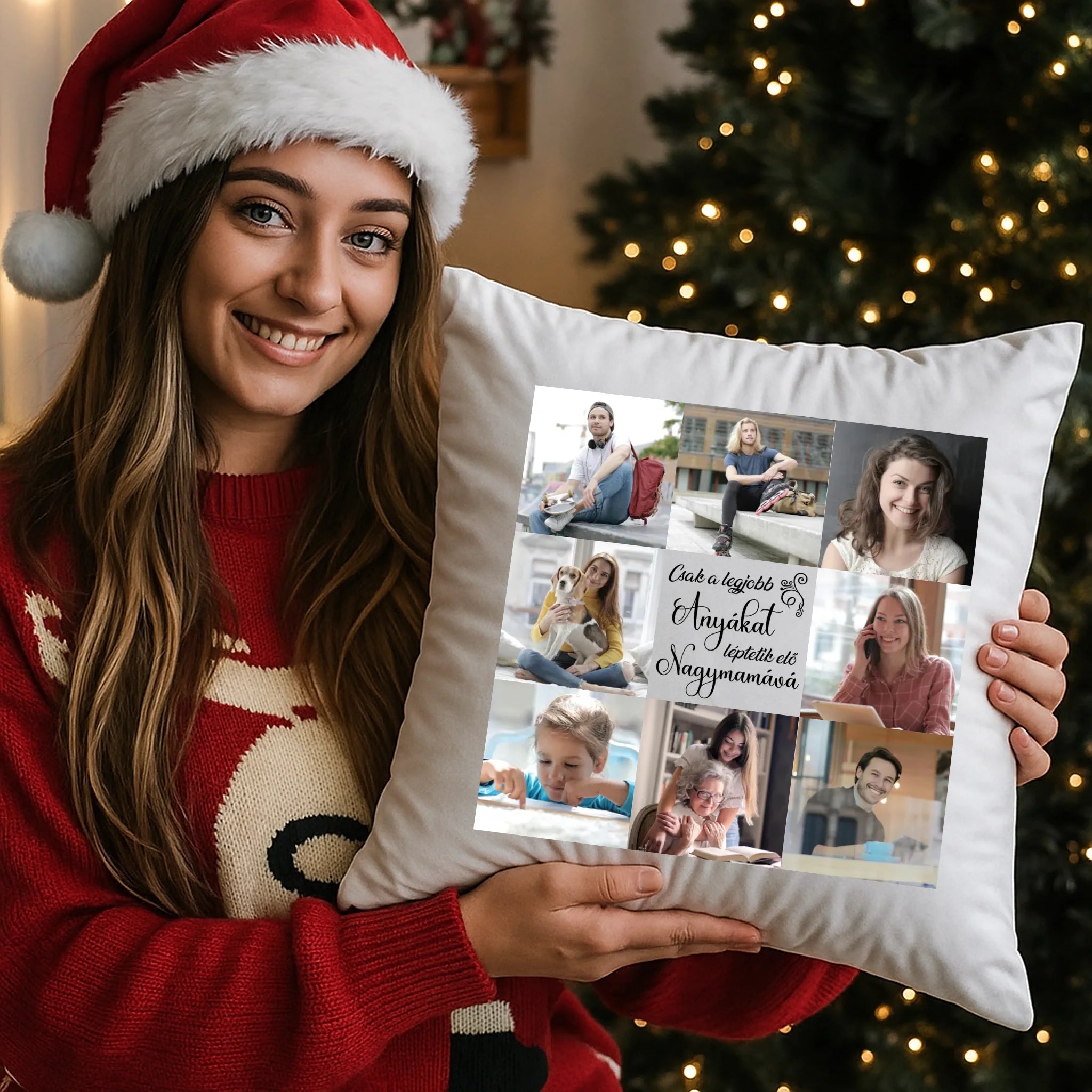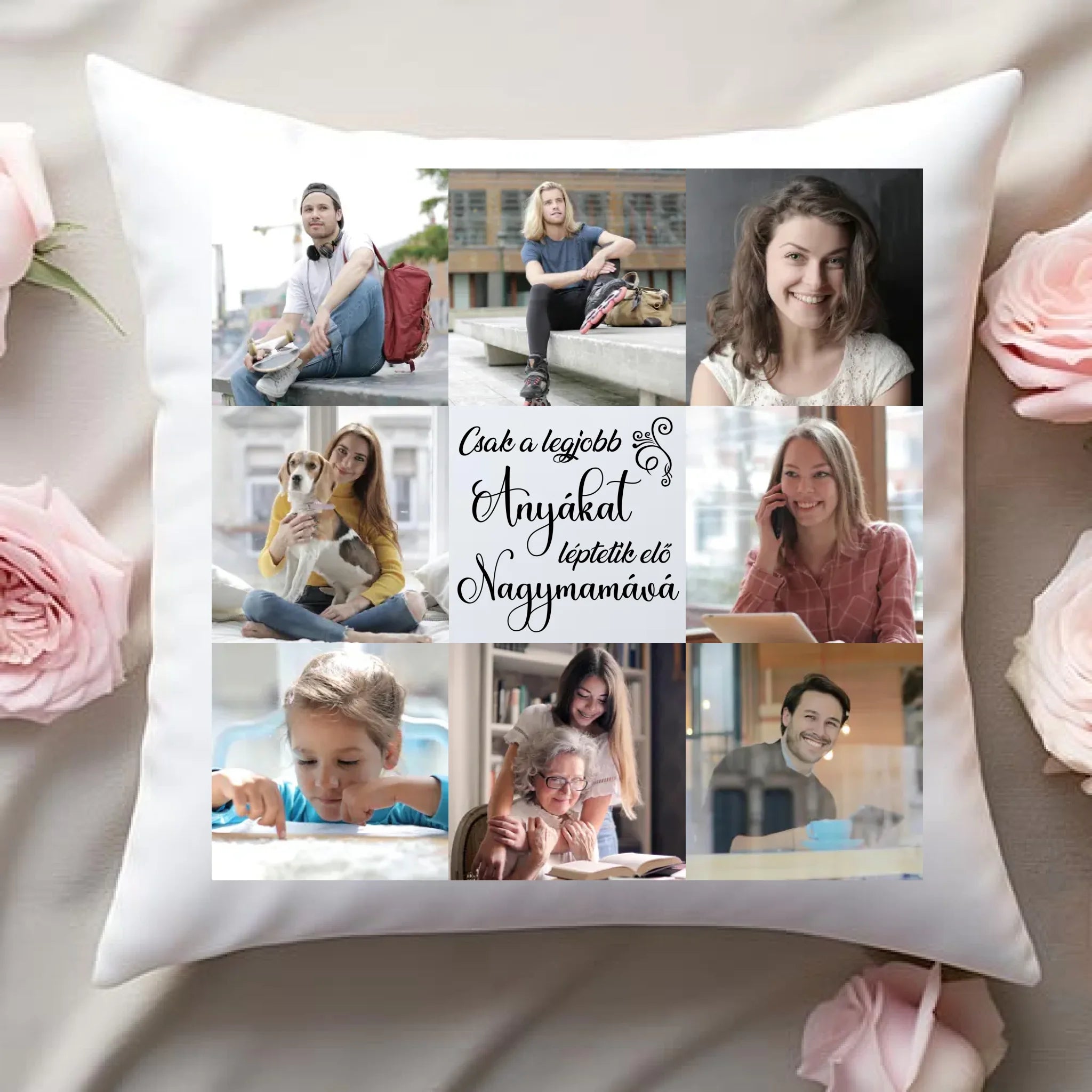 Egyedi fényképes párna mamának 8 fotóval és felirattal.