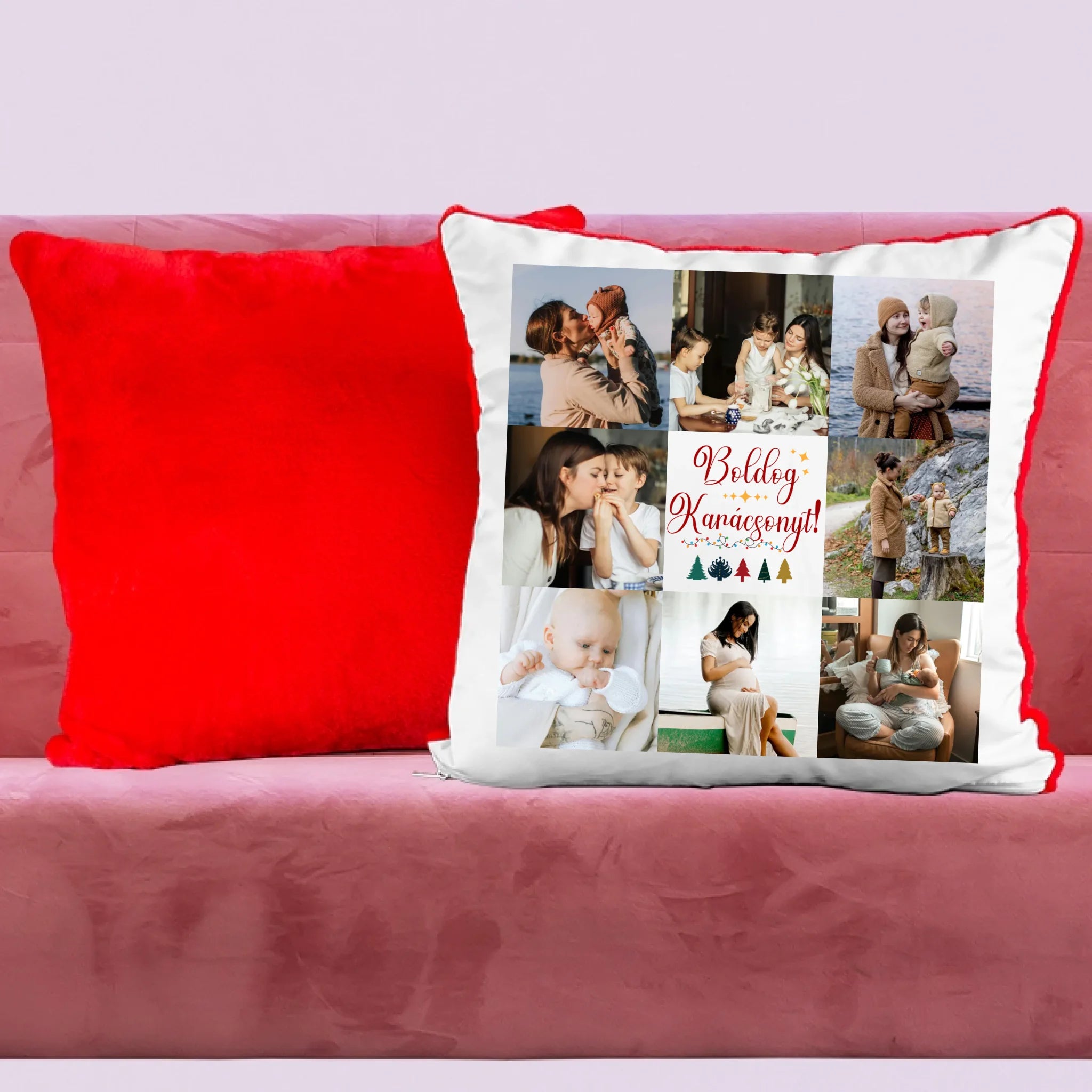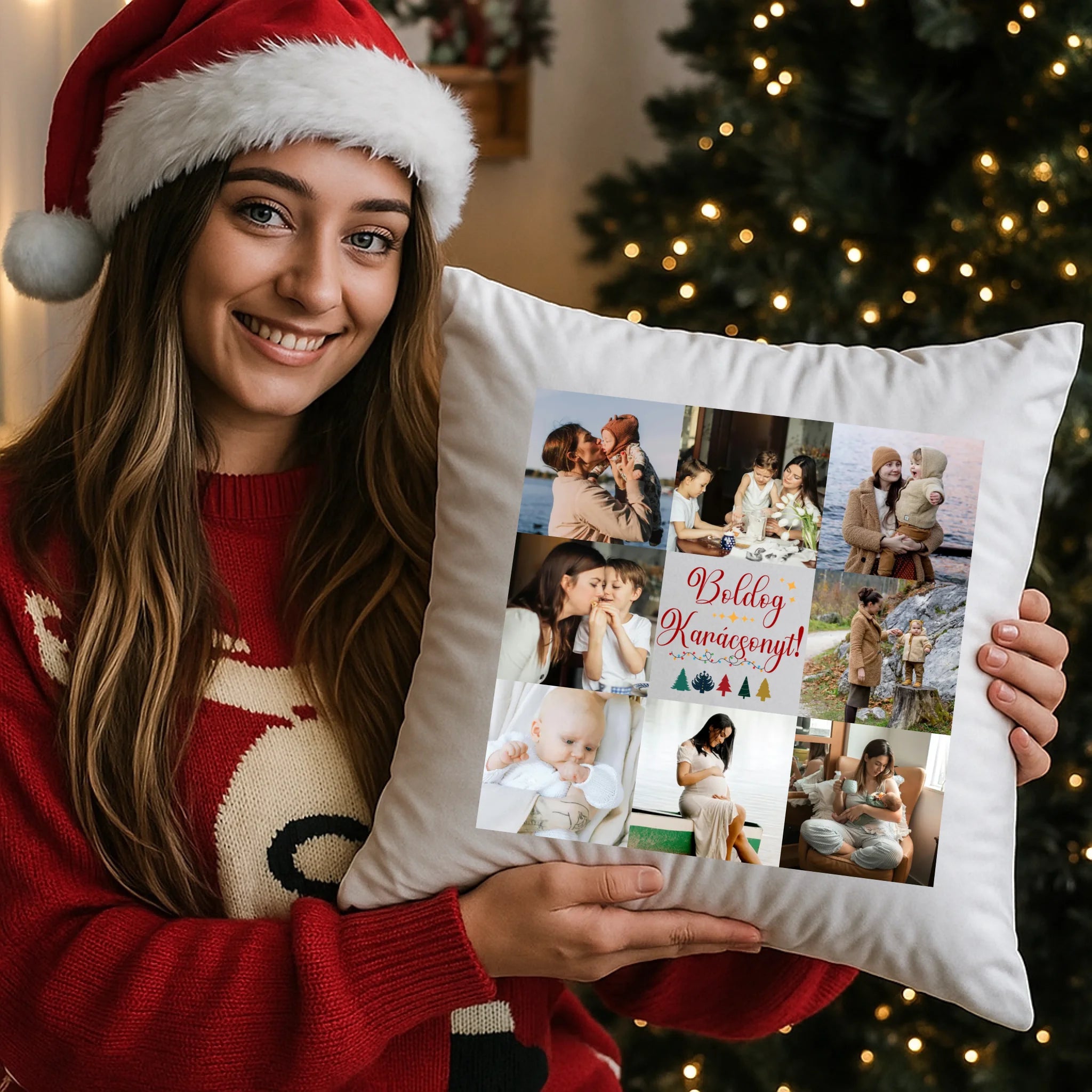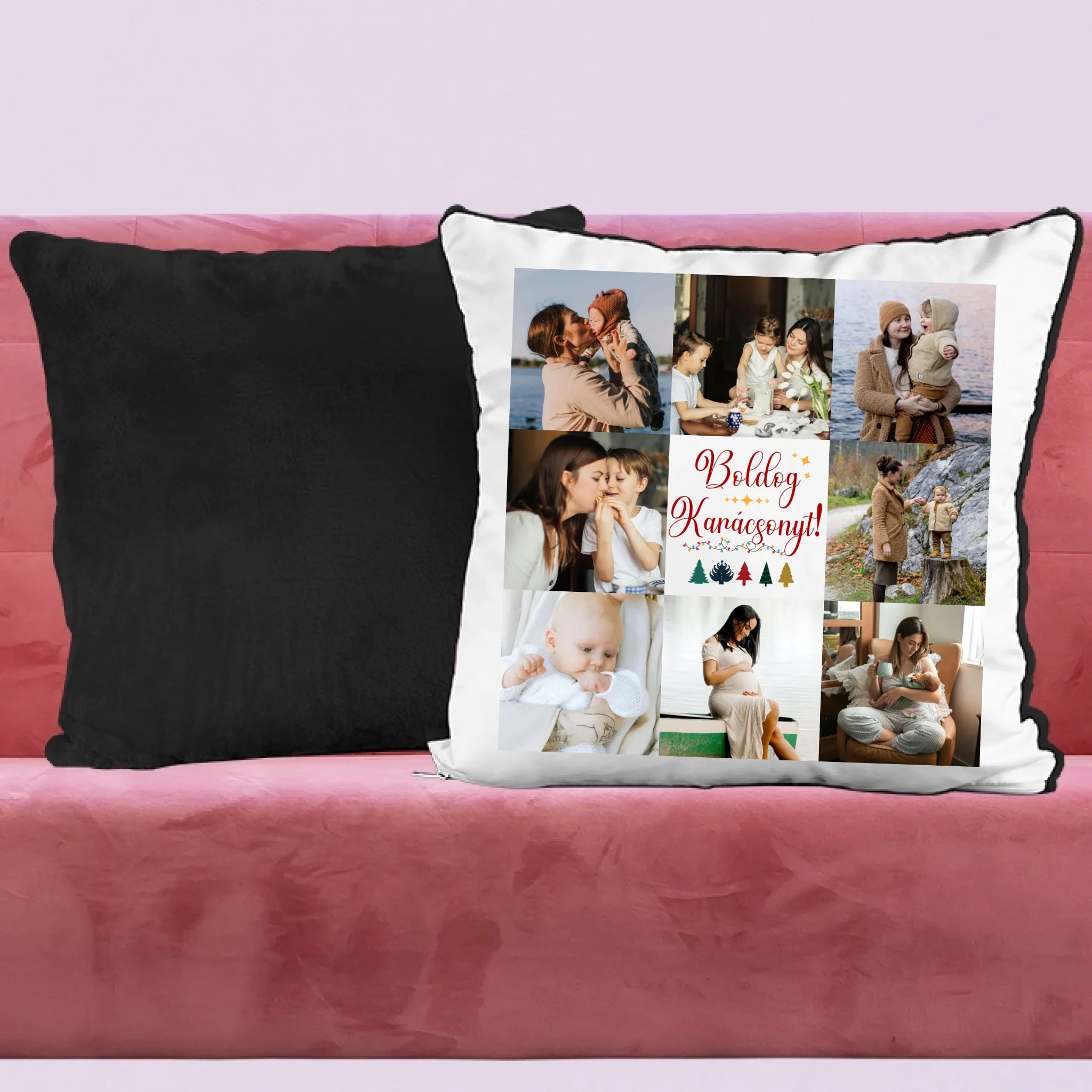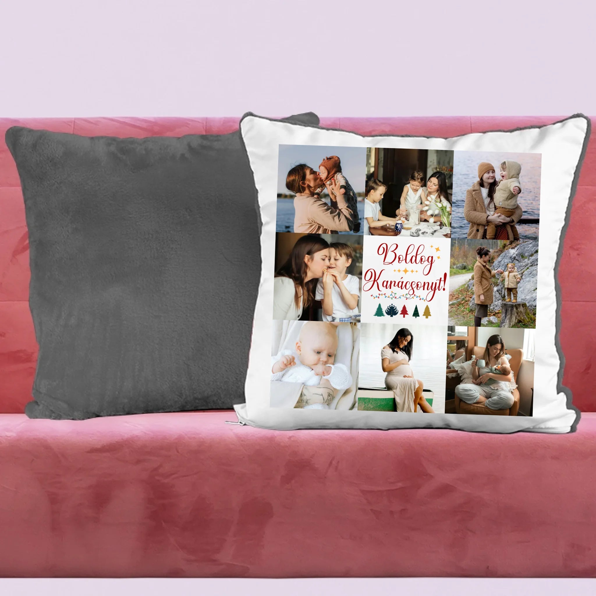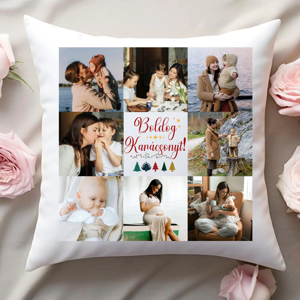 Fényképes karácsonyi párna anyának 8 képpel és választható felirattal
