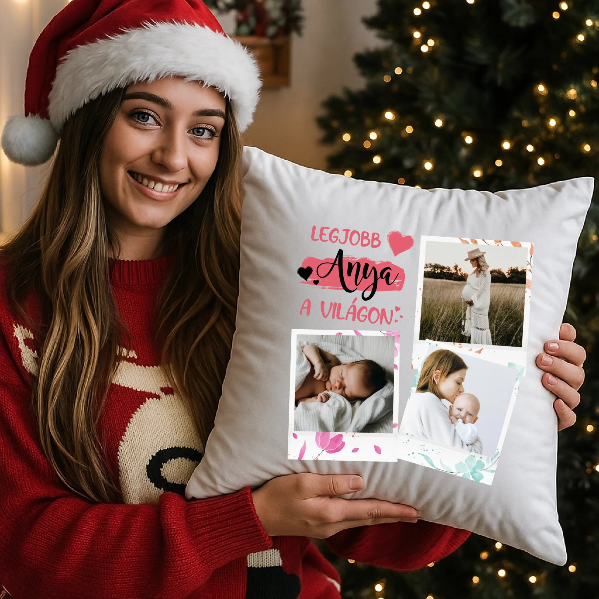 Egyedi párna anyák napjára, melyre saját képet is kérhetsz. A kedves felirat garantálja, hogy mosolyt csalj édesanyád arcára, legyen szó anyák napjáról, születésnapról, névnapról vagy karácsonyról.