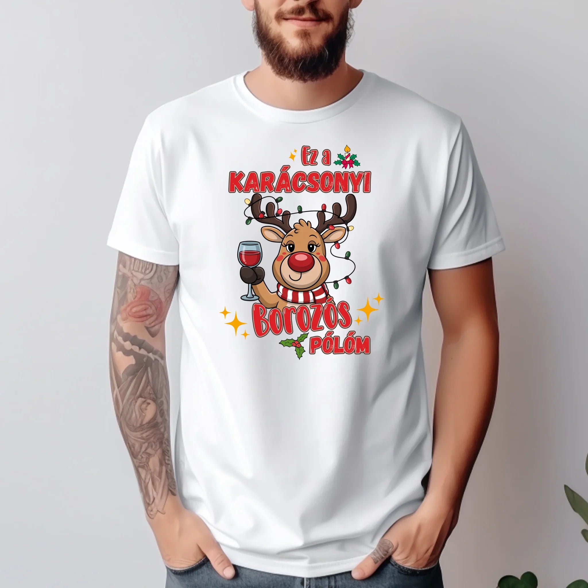 Koccints stílusosan az ünnepekre ezzel a vicces borozós karácsonyi pólóval! A mintát tartós, prémium minőségű nyomással készítjük, így biztosan nem kopik le. 100% pamutból készült, kényelmes és strapabíró viselet – ideális karácsonyi bulikra, családi összejövetelekre vagy ajándéknak borkedvelőknek.