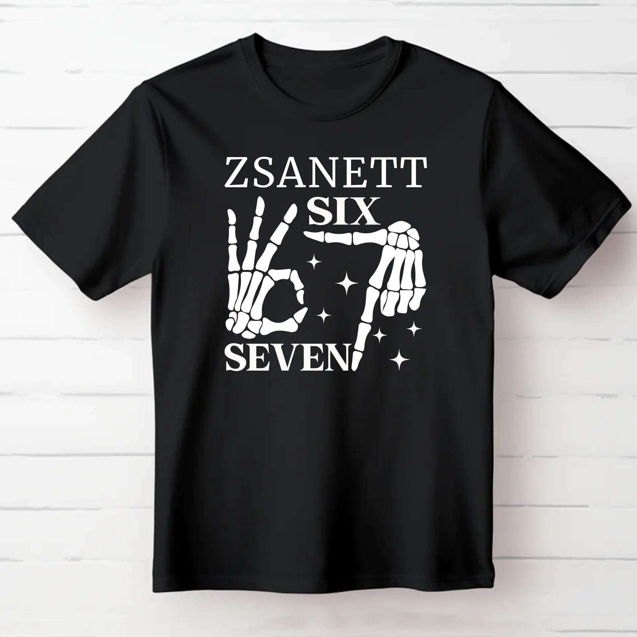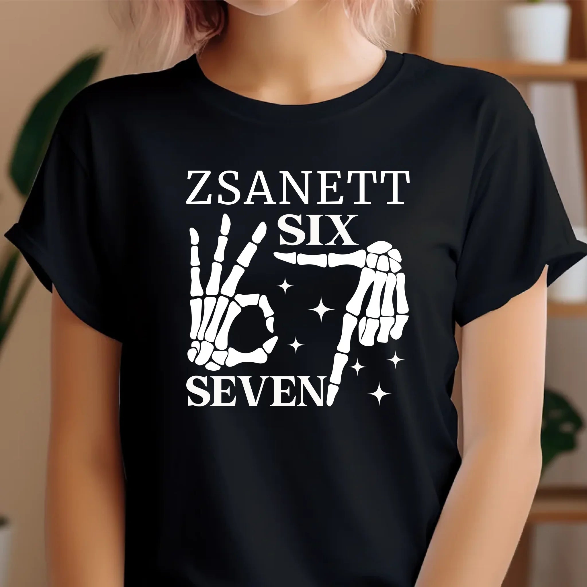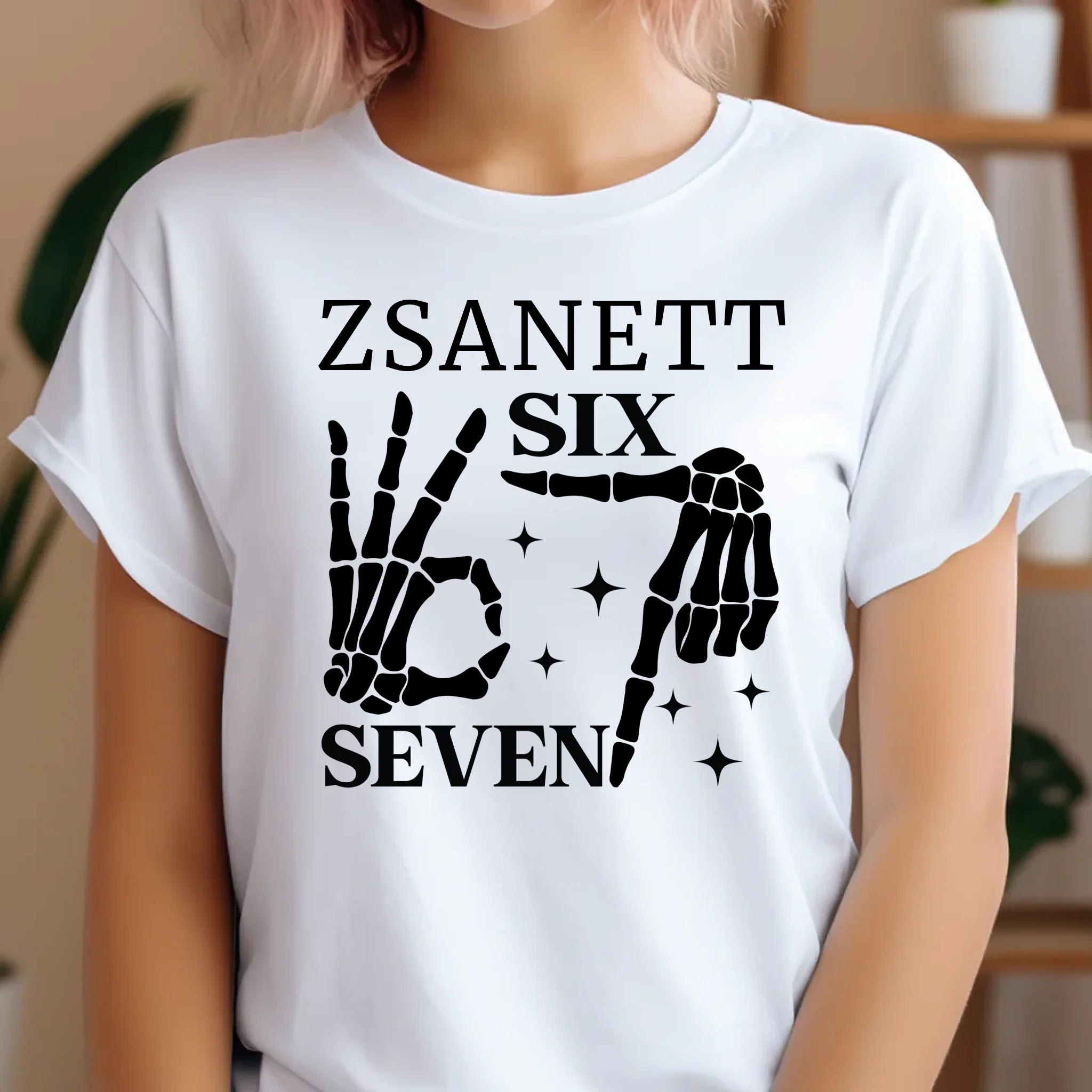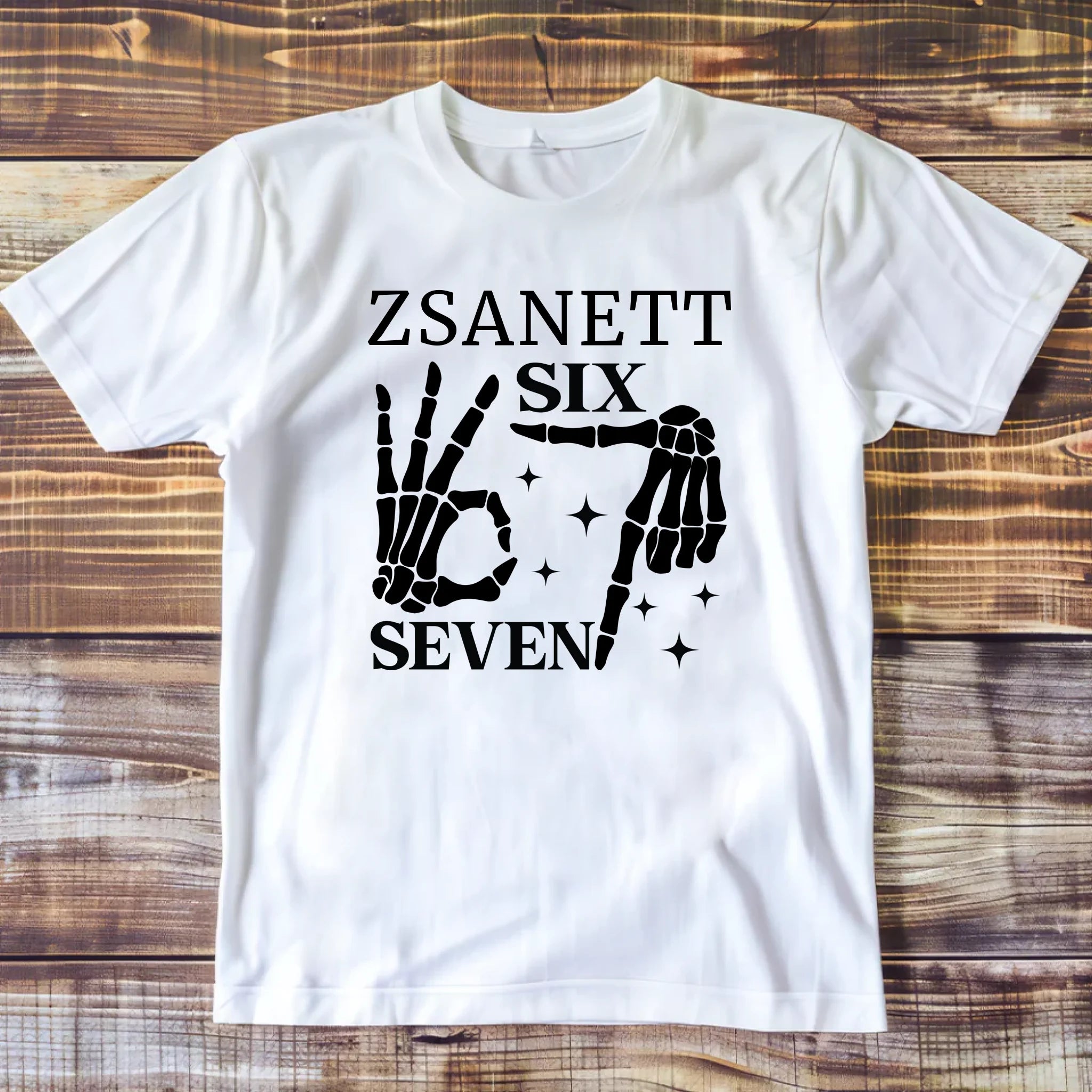 Mutasd meg egyedi stílusod a Six Seven csontváz mintás pólóval, amelyet a neveddel is elláthatunk!