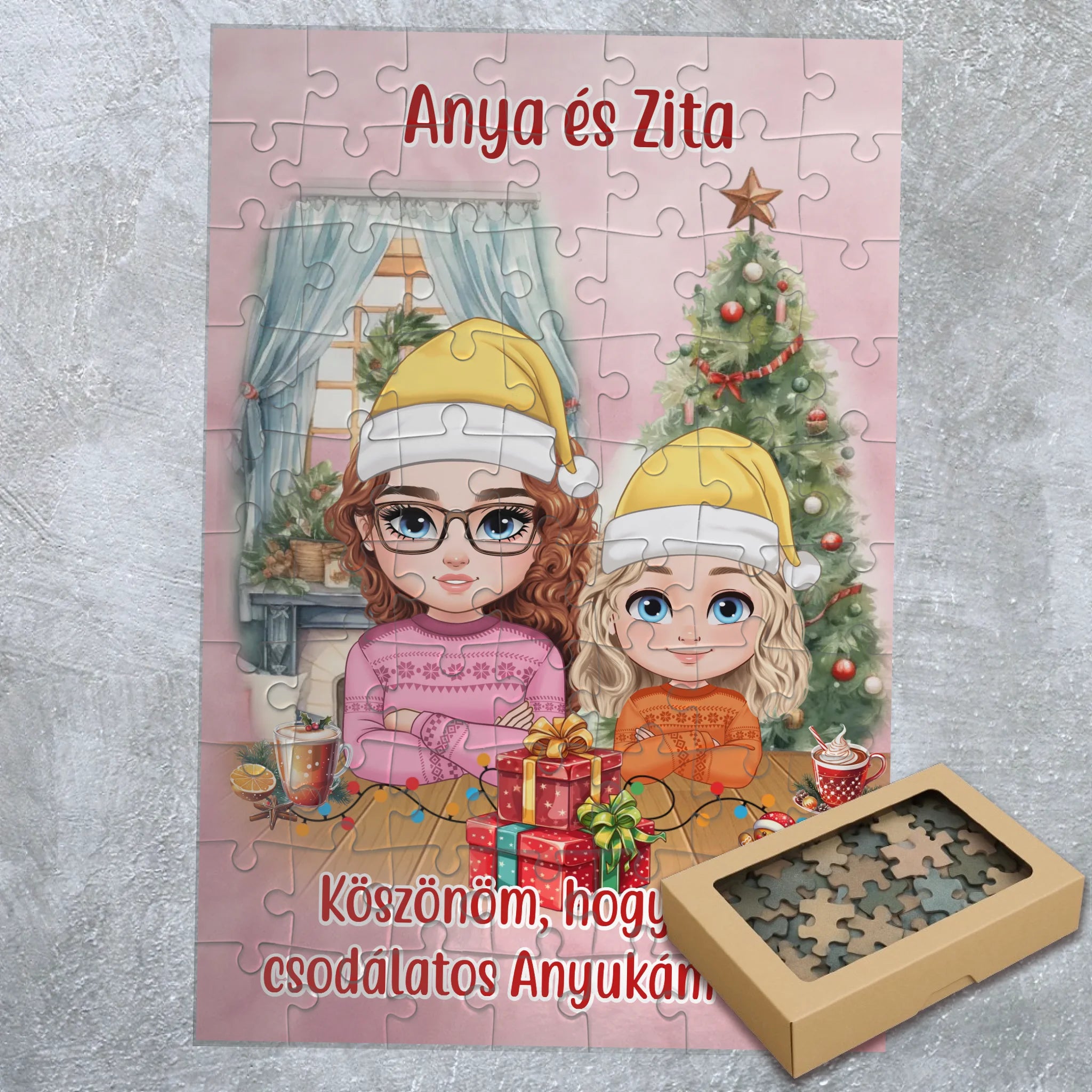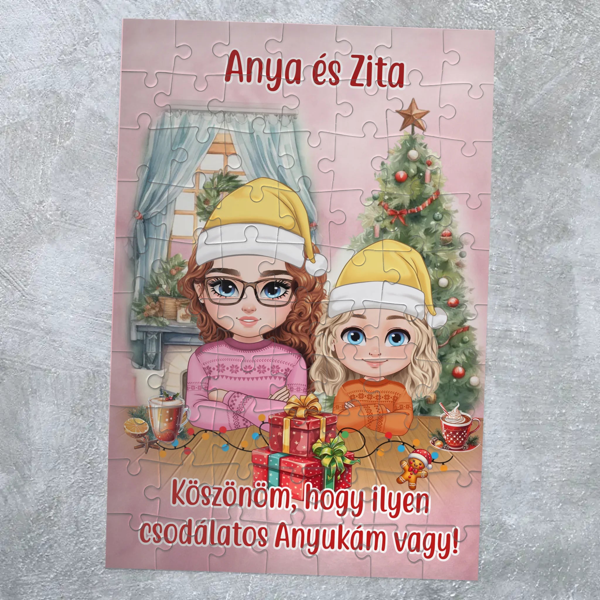 Az anyukáknak tervezett karácsonyi puzzle személyre szabható családi karakterekkel készül, így a puzzle pontosan tükrözheti a családot.