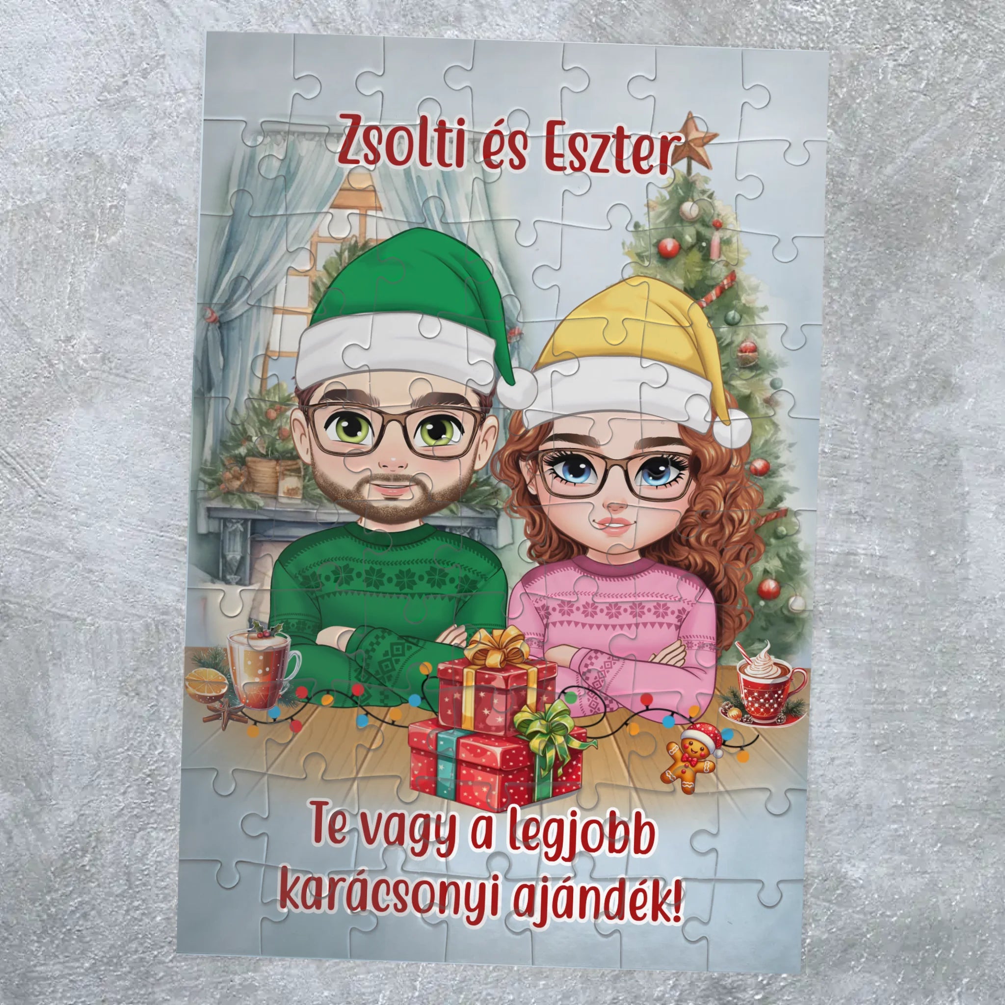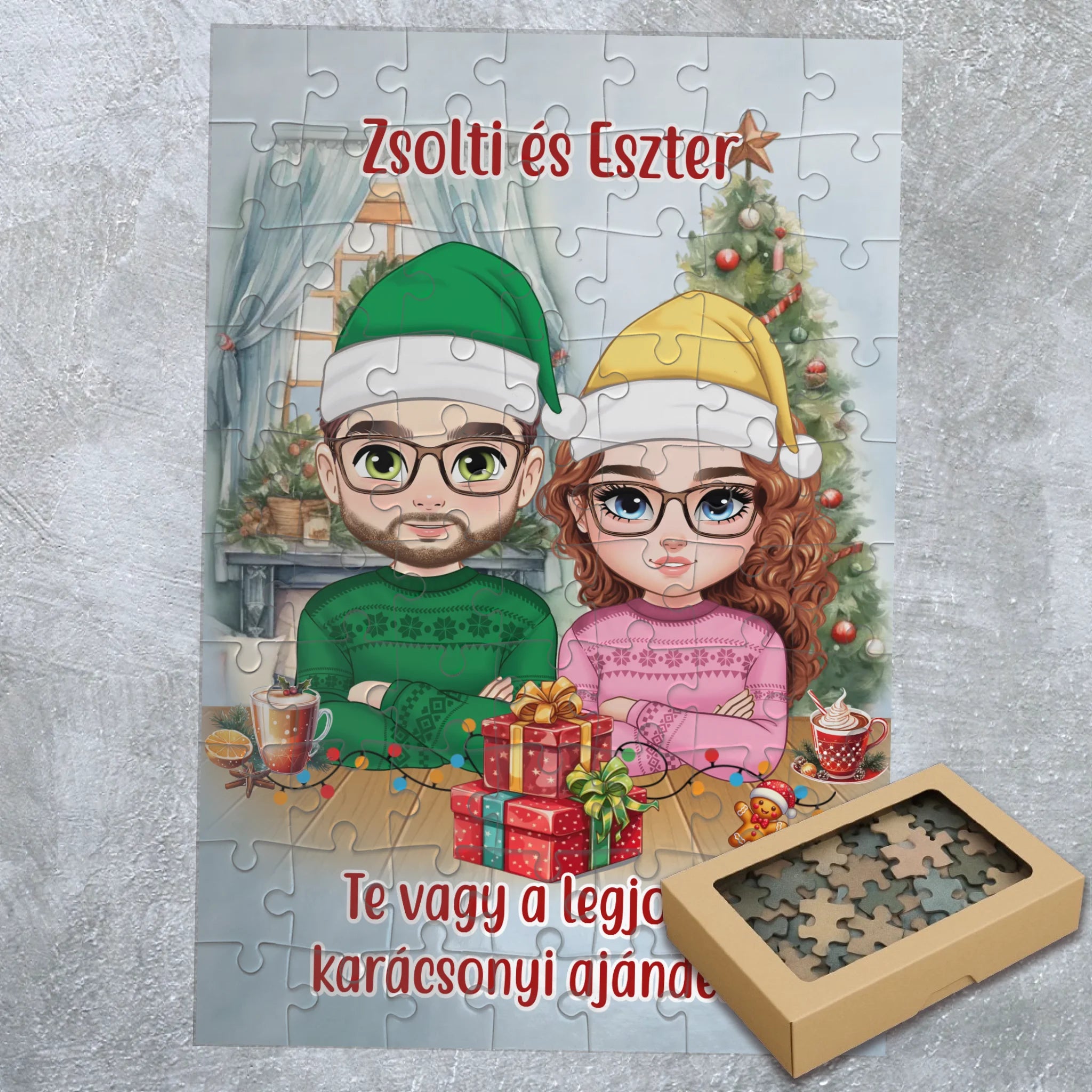 A pároknak szánt karácsonyi puzzle romantikus és személyre szabható meglepetés. A pár karakterei egyedileg beállíthatók, így a puzzle teljesen rátok hasonlíthat.