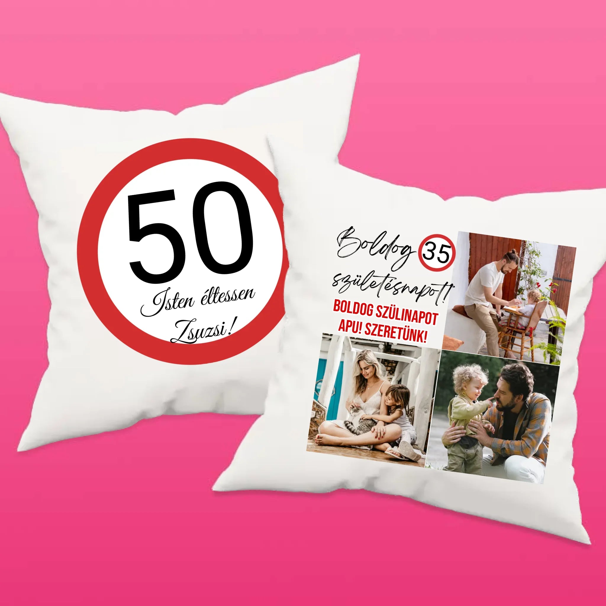 Az egyedi születésnapi párna saját felirattal és fotóval is személyre szabható.