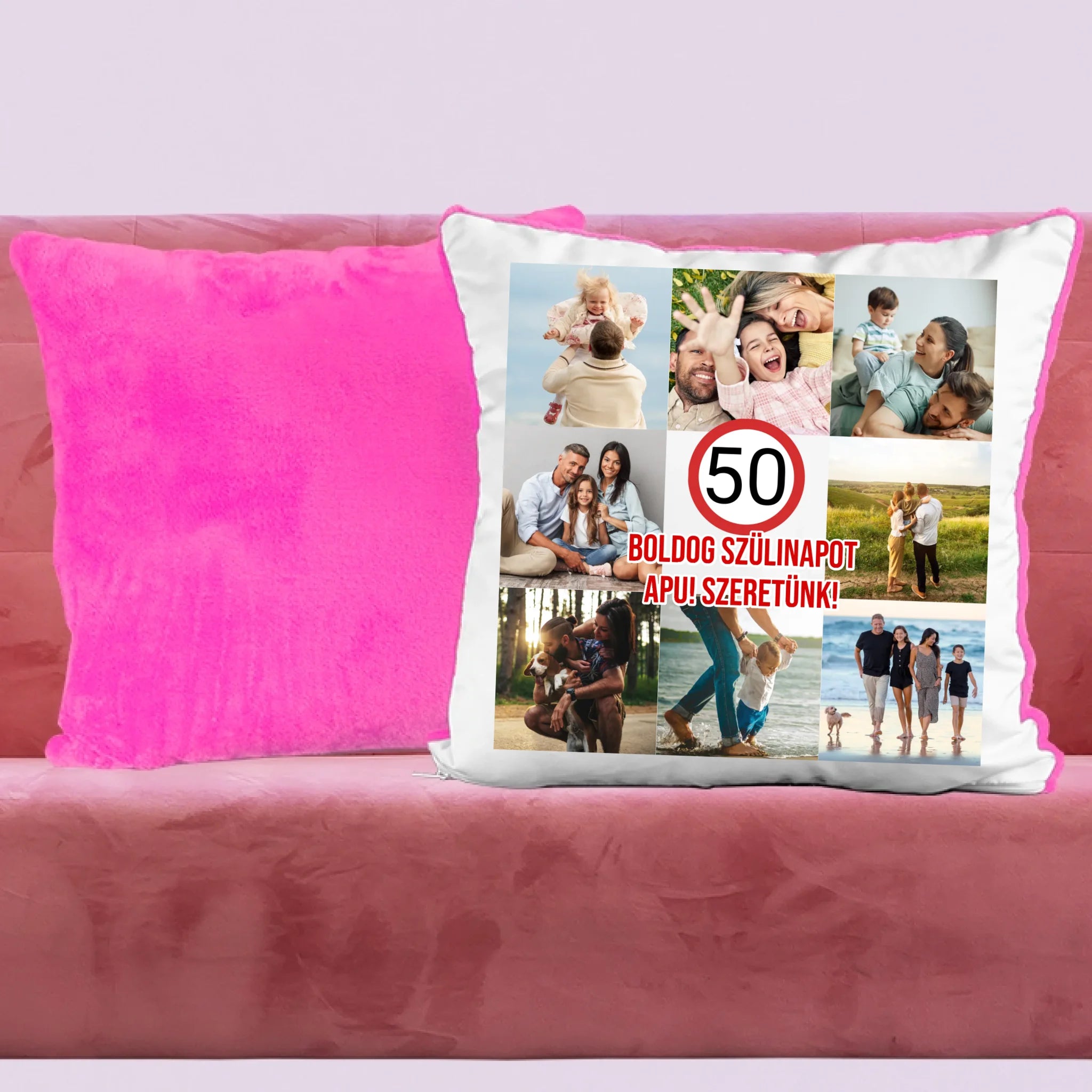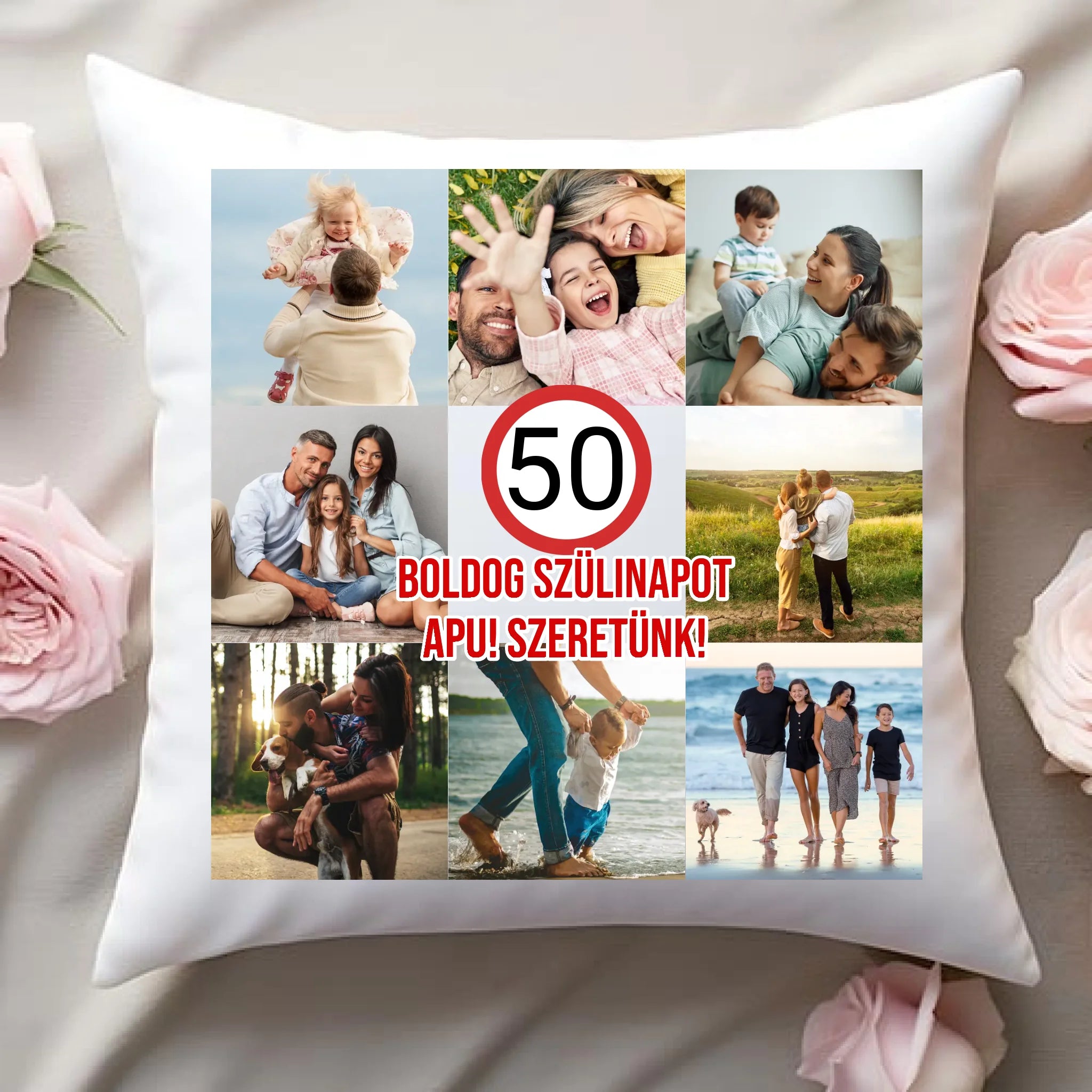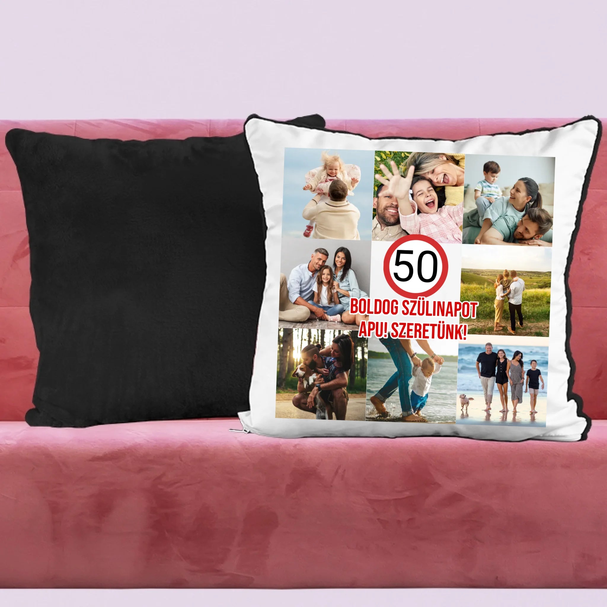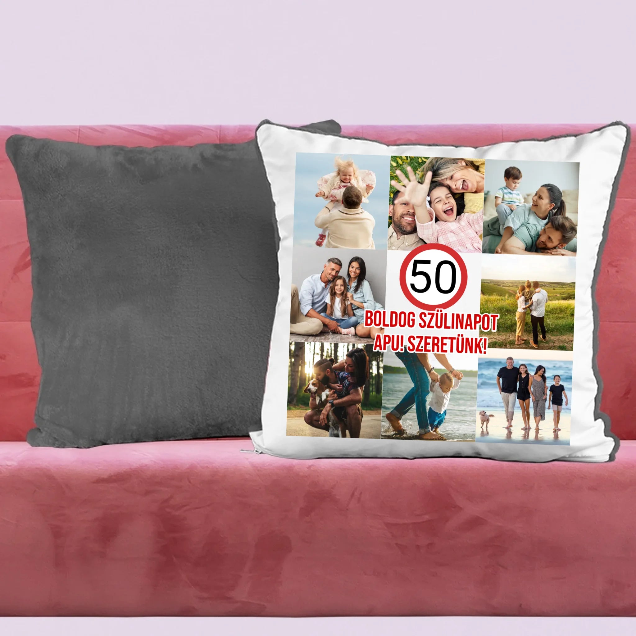 Az egyedi születésnapi párna saját felirattal és fotóval is személyre szabható.